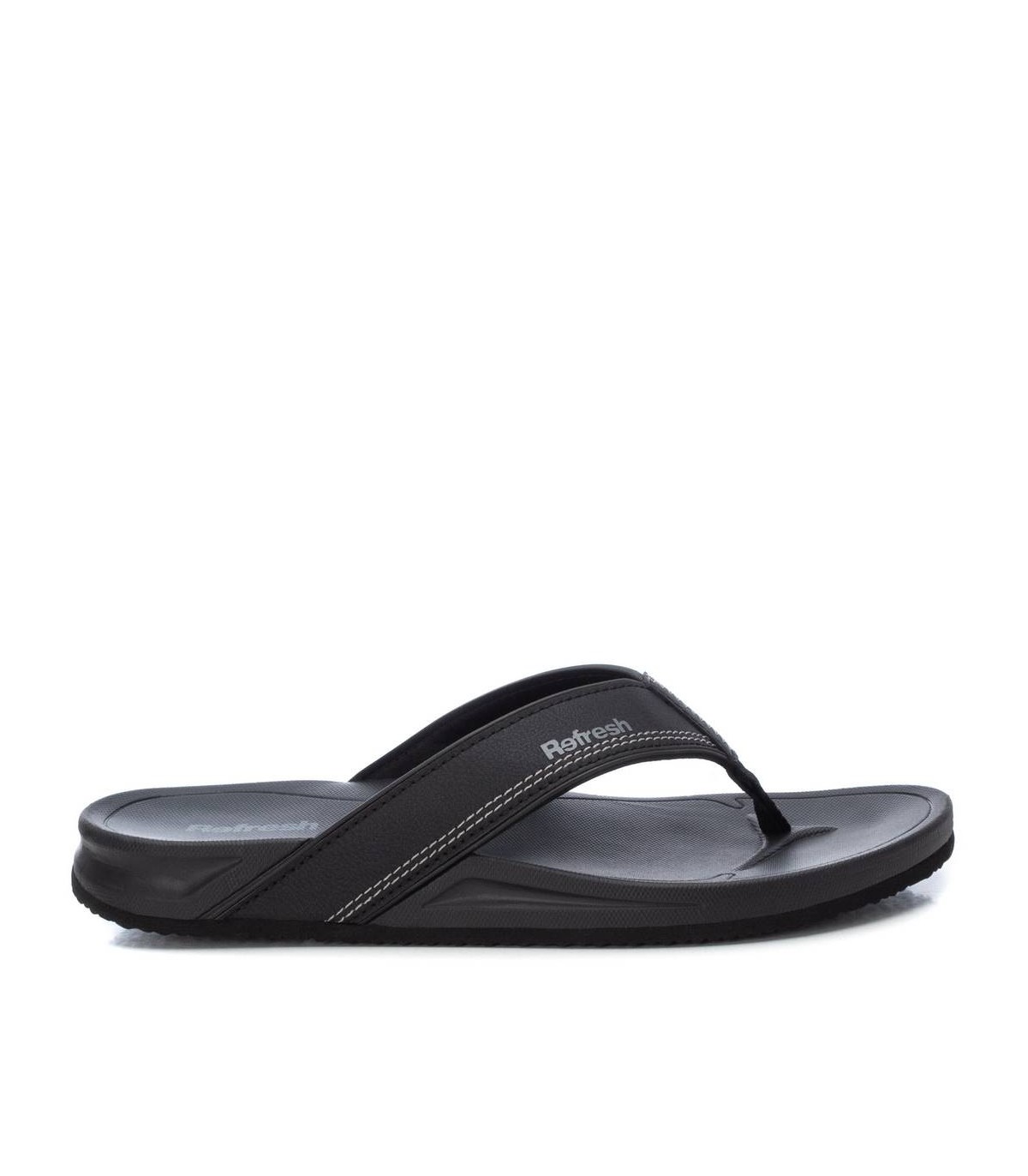 Sandalia de hombre, de la marca Refresh. Fabricada en caucho. Modelo tipo esclava con tiras anchas. Suela de goma antideslizante. Este modelo ha obtenido el certificado vegano por la organización mundial PETA (Organización de los derechos de los animales).