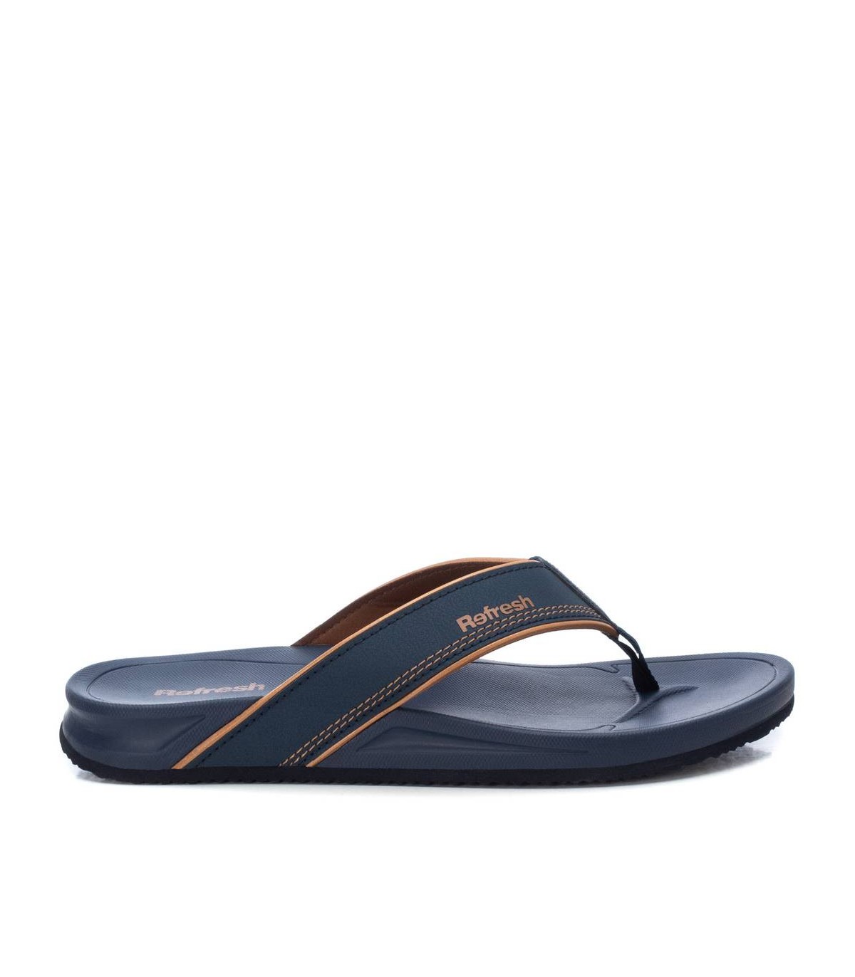 Sandalia de hombre, de la marca Refresh. Fabricada en caucho. Modelo tipo esclava con tiras anchas. Suela de goma antideslizante. Este modelo ha obtenido el certificado vegano por la organización mundial PETA (Organización de los derechos de los animales).