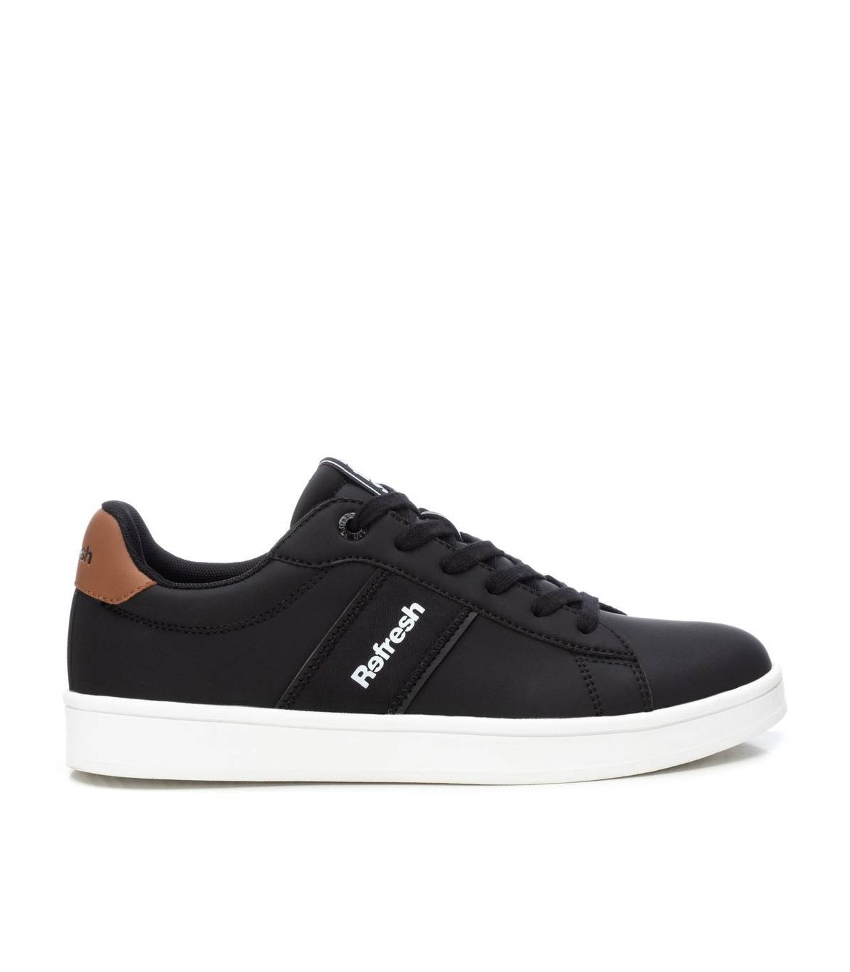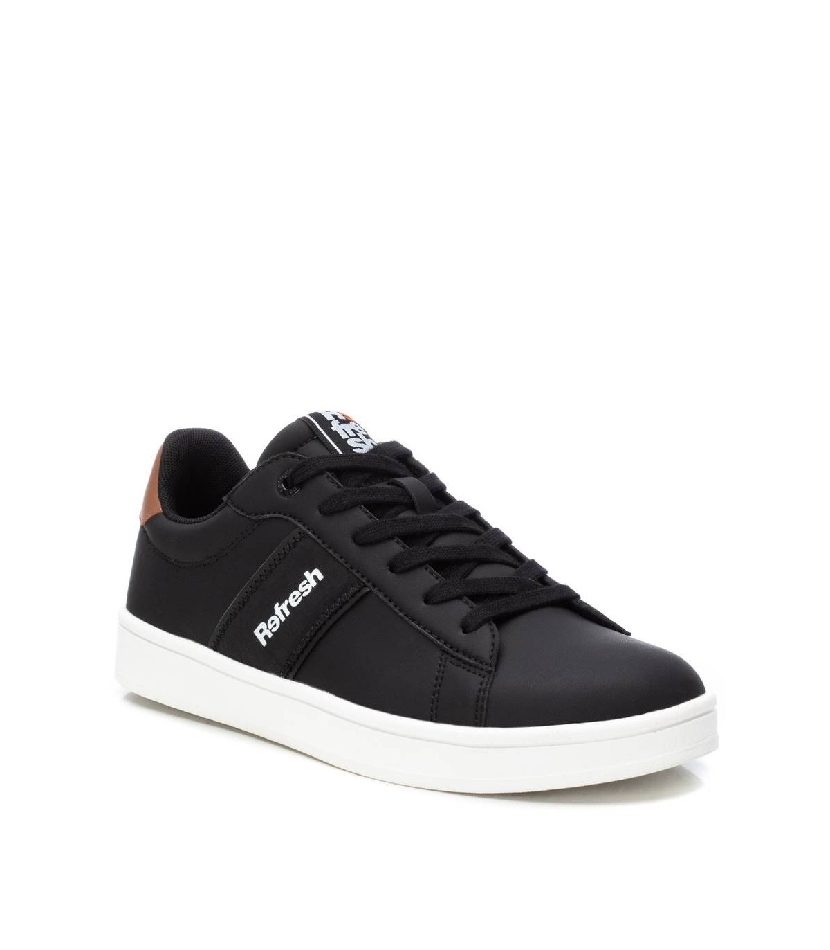 Zapatilla de hombre, de la marca Refresh. Fabricada en material que imita la piel. Cierre mediante cordones ajustables. Cómoda planta acolchada y suela de goma antideslizante. Este modelo ha obtenido el certificado vegano por la organización mundial PETA (Organización de los derechos de los animales).