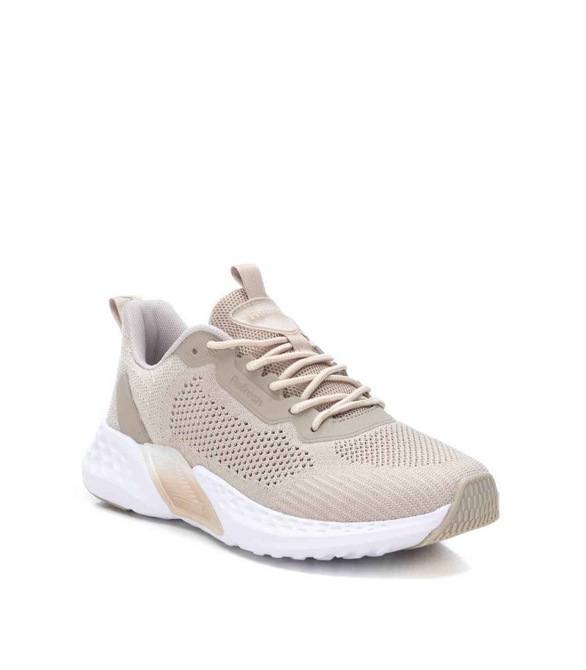 Zapatilla de mujer, de la marca Refresh. Fabricada en tejido técnico. Cierre mediante cordones ajustables. Tirador trasero y delantero para facilitar la puesta. Cómoda planta acolchada y suela flexible de goma antideslizante. Este modelo ha obtenido el certificado vegano por la organización mundial PETA (Organización de los derechos de los animales).
