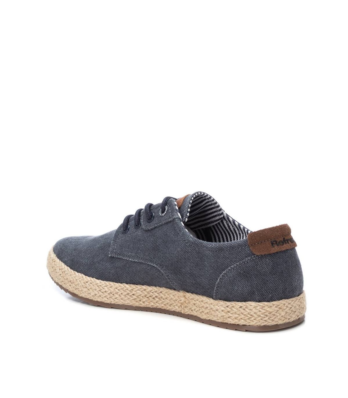 Zapatilla de hombre, de la marca Refresh. Fabricada en lona con acabado desgastado. Cierre mediante cordones ajustables. Forro con print decorativo. Piso forrado en yute trenzado con suela de goma antideslizante. Un modelo imprescindible este verano. Este modelo ha obtenido el certificado vegano por la organización mundial PETA (Organización de los derechos de los animales).