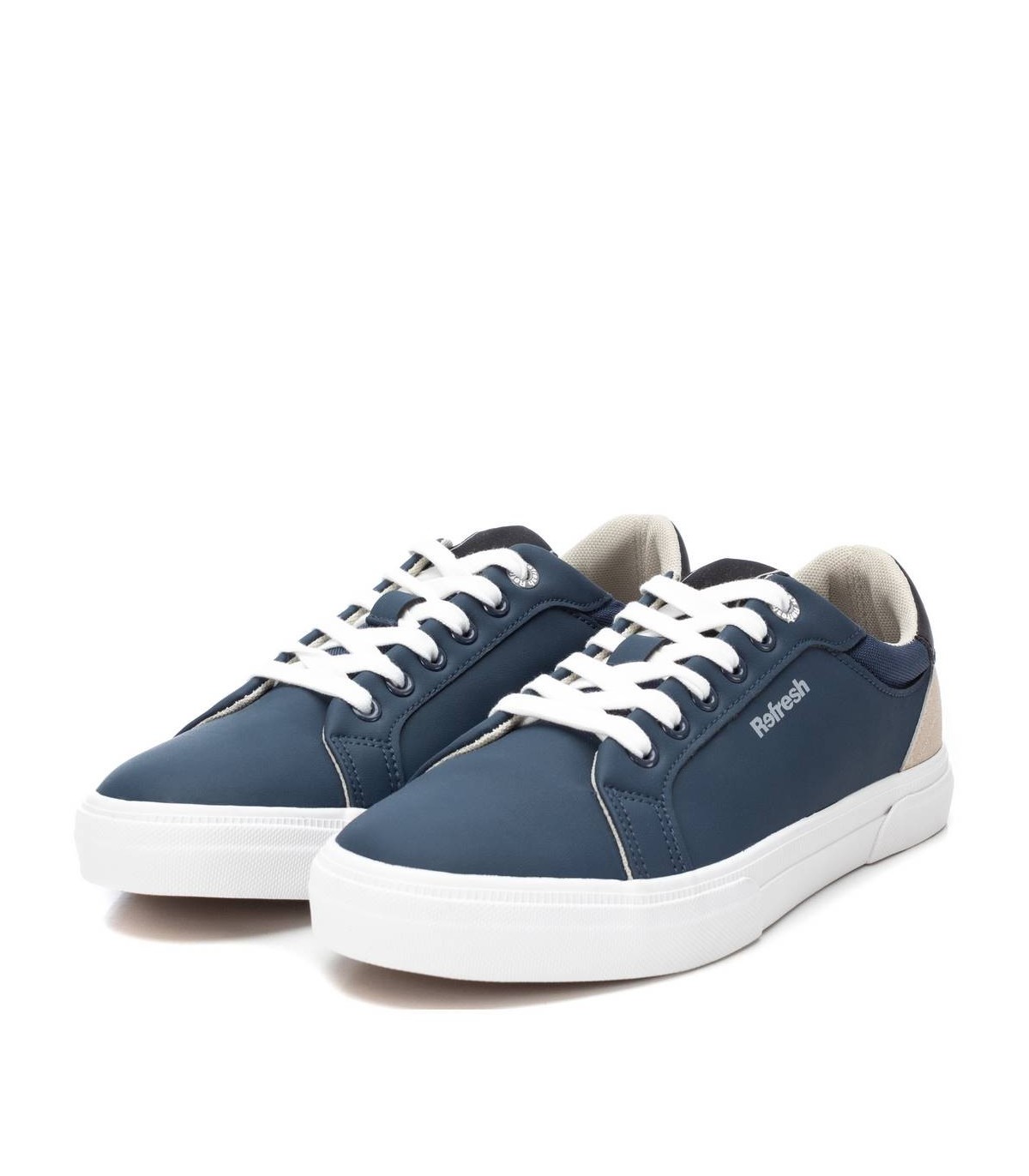 Zapatila de hombre, de la marca Refresh. Fabricada en material que imita la piel. Cierre mediante cordones ajustables. Cómoda planta acolchada y suela flexible de goma antideslizante. Este modelo ha obtenido el certificado vegano por la organización mundial PETA (Organización de los derechos de los animales).