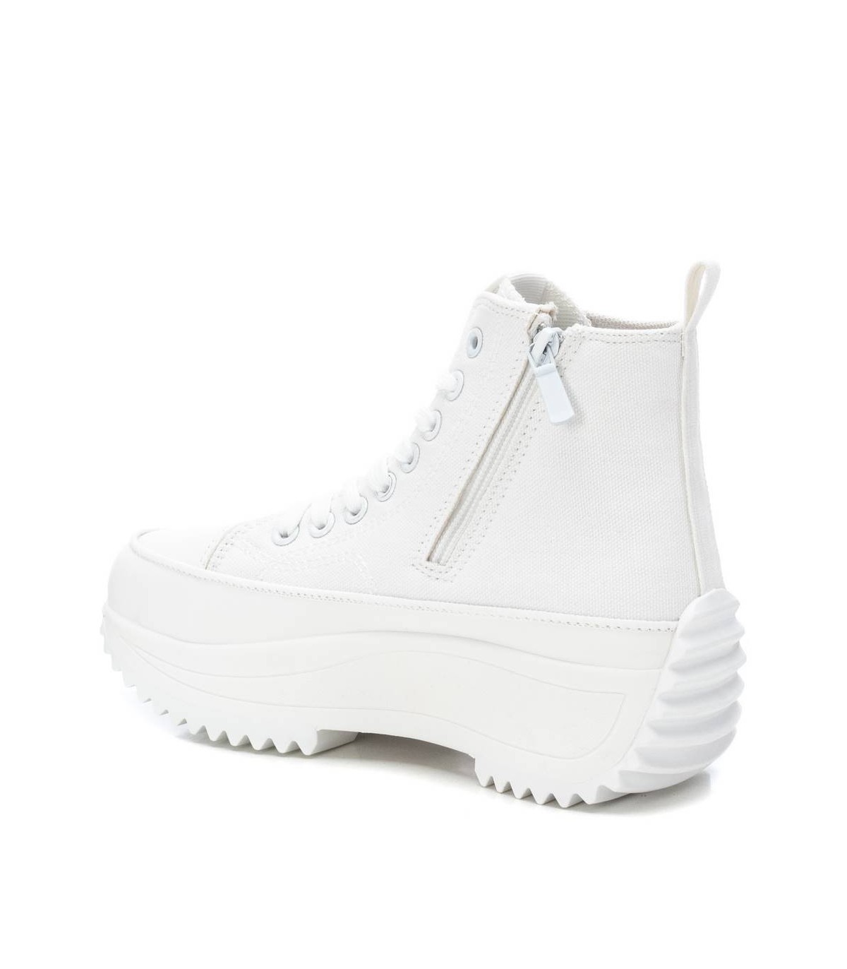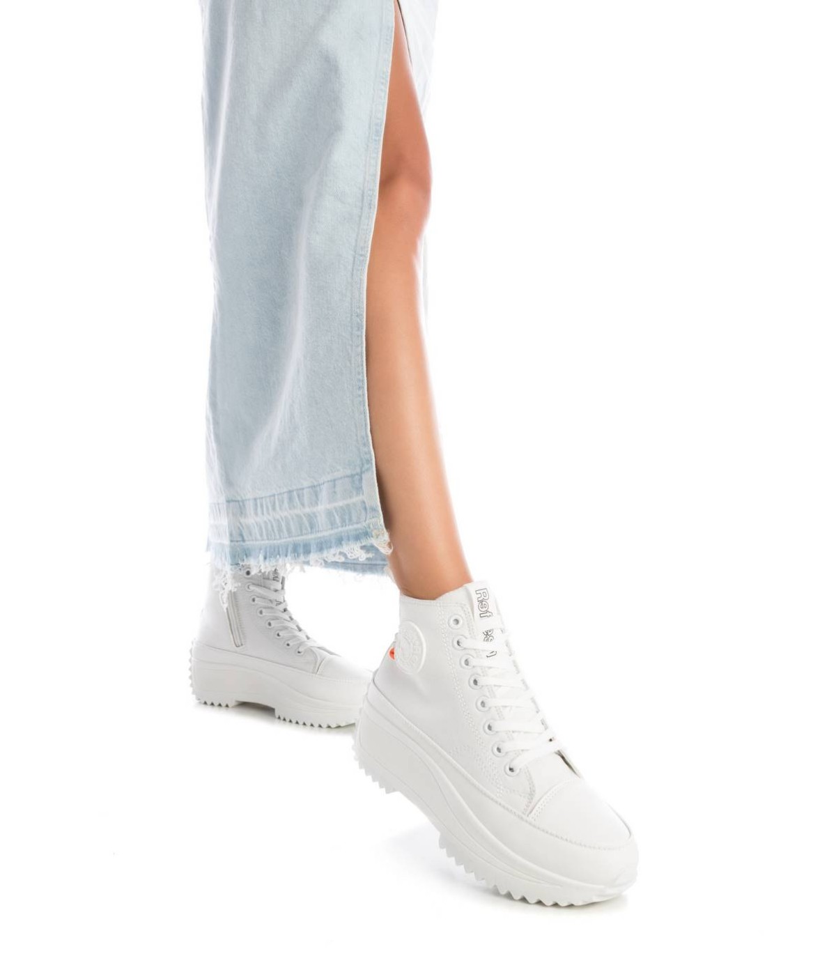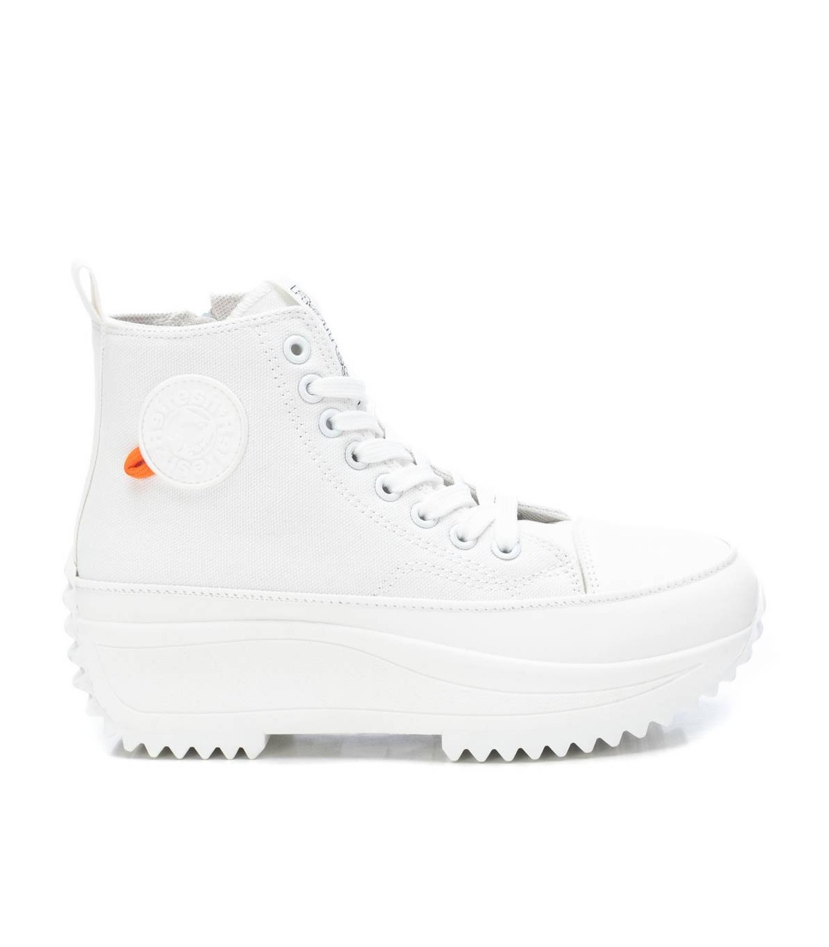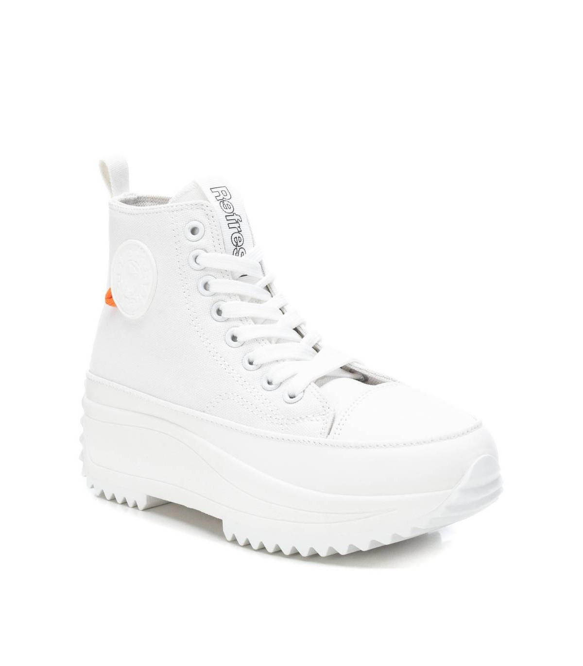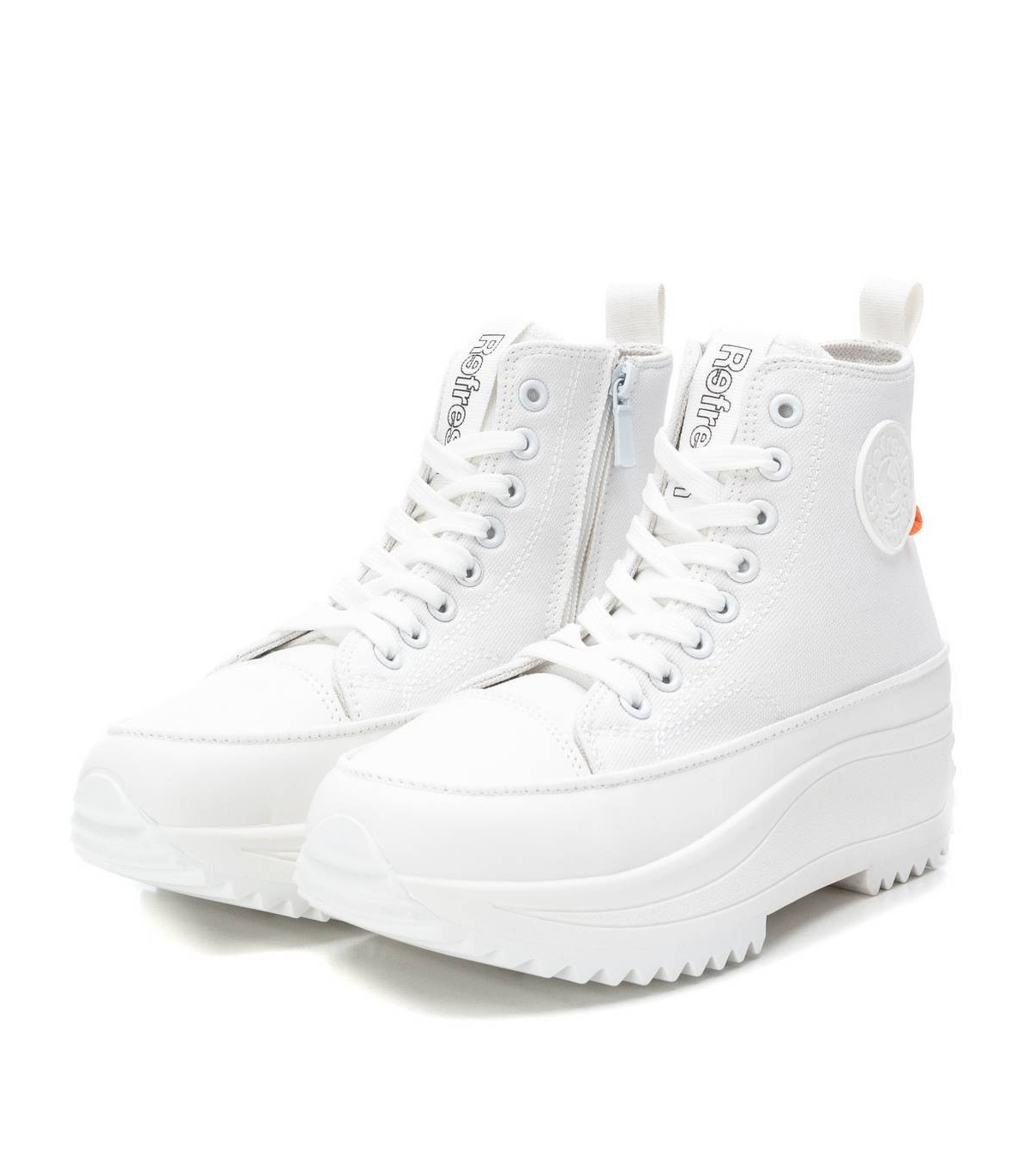 Zapatilla tipo botín de mujer, de la marca Refresh. Fabricada en lona. Cierre mediante cremallera lateral y cordones para un buen ajuste. Tirador trasero que facilita la puesta. Piso volumen y suela dentada de goma antideslizante. Este modelo ha obtenido el certificado vegano por la organización mundial PETA (Organización de los derechos de los animales).
