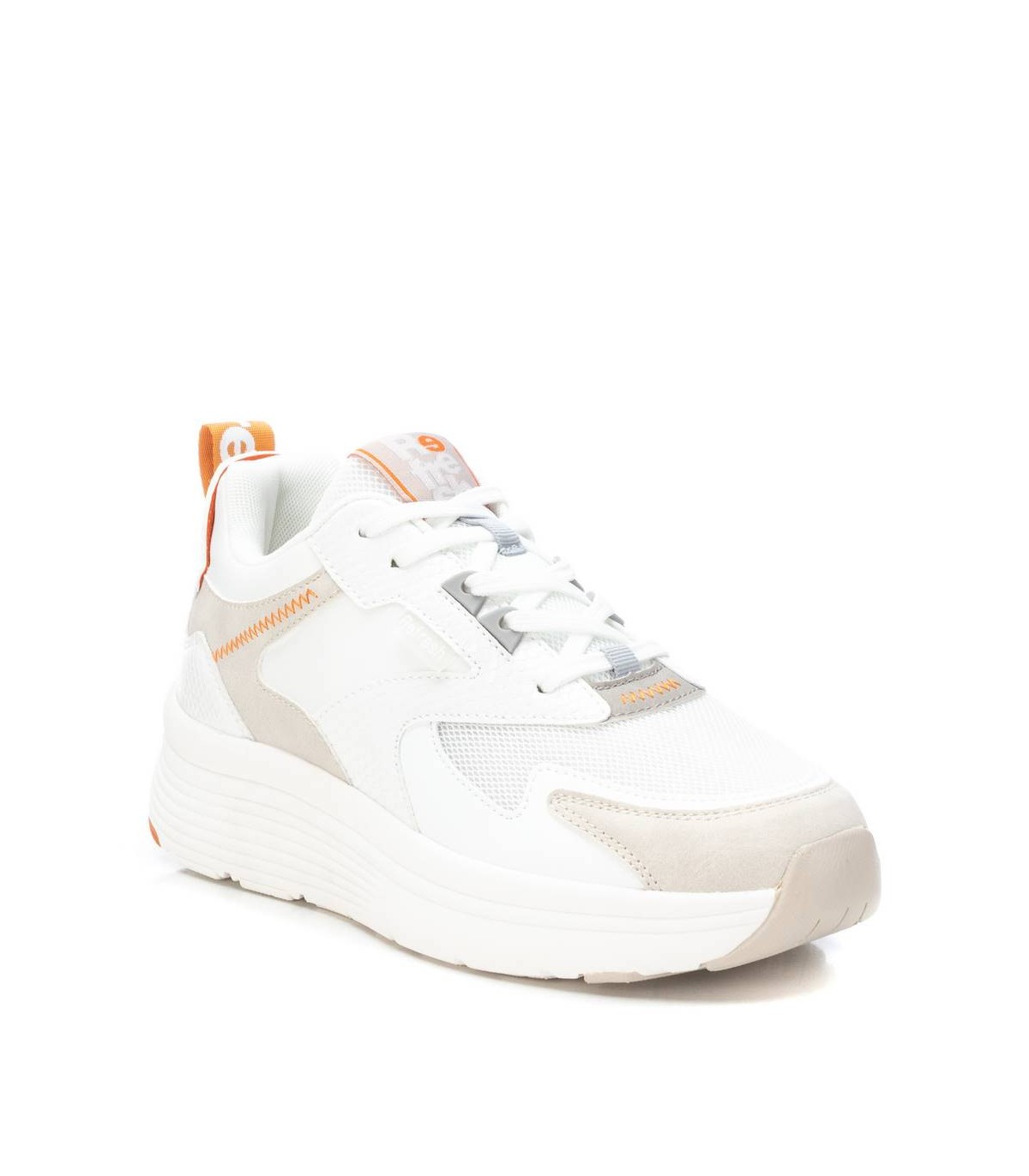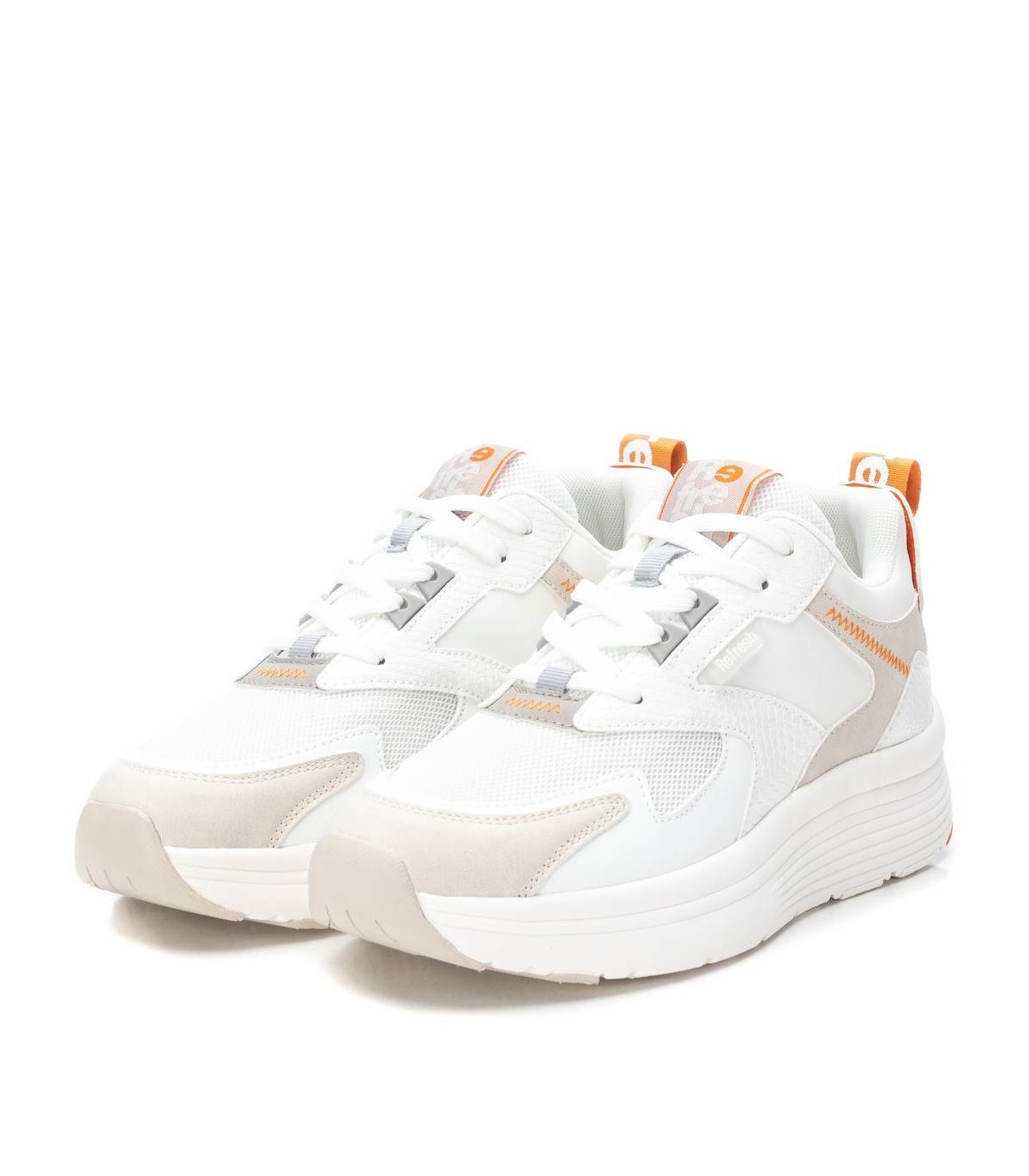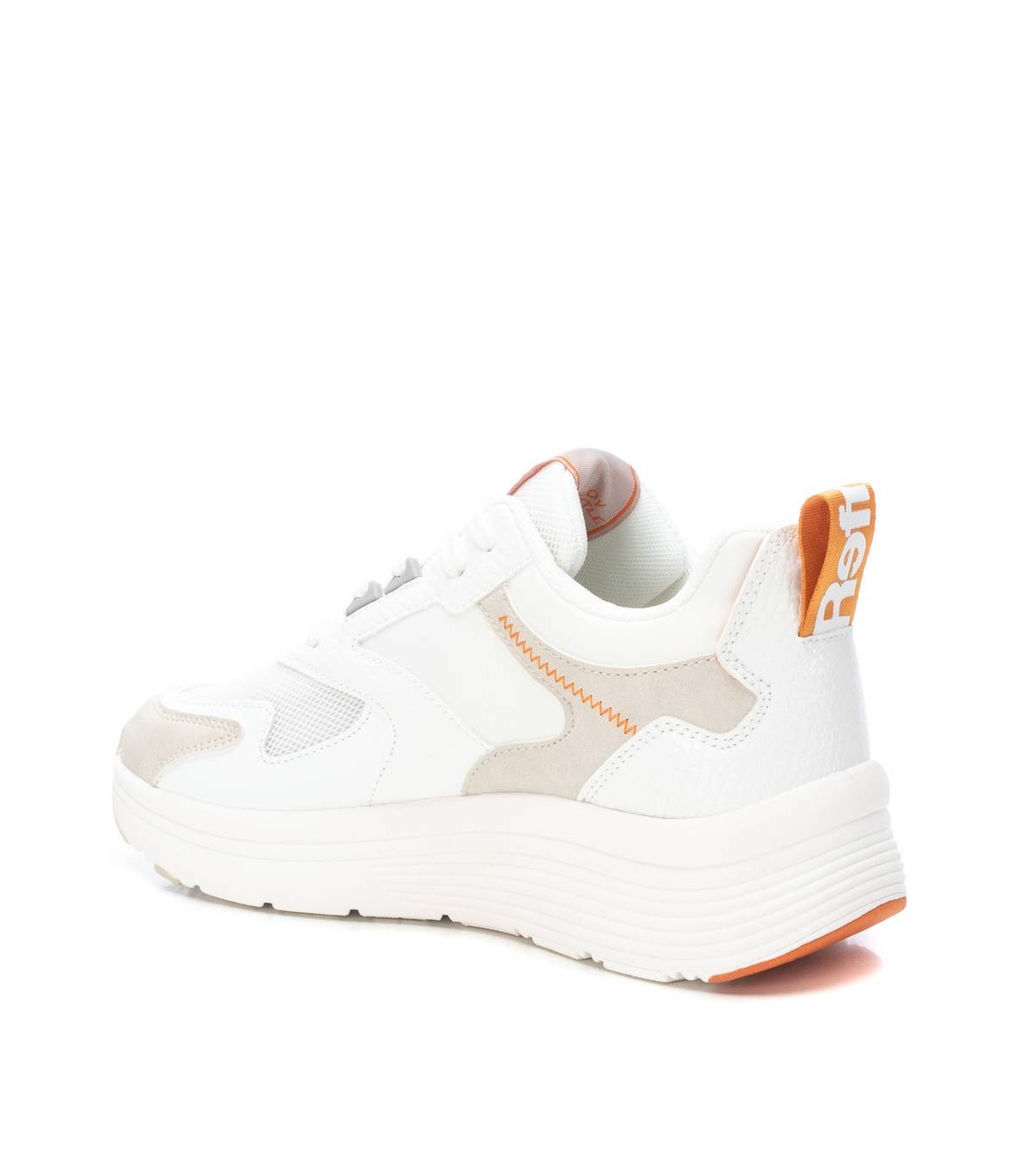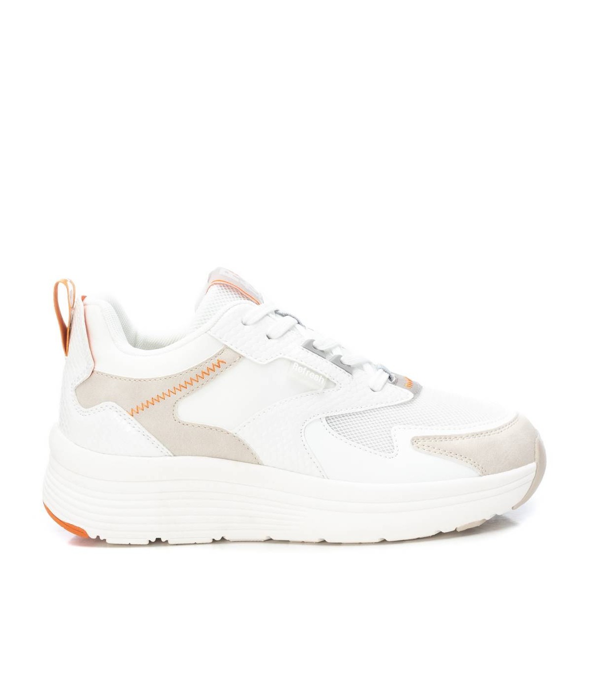 Zapatilla de mujer, de la marca Refresh. Fabricada en material que imita la piel combinado con textil. Cierre mediante cordones ajustables. Tirador trasero que facilita la puesta. Piso volumen con suela de goma antideslizante. Este modelo ha obtenido el certificado vegano por la organización mundial PETA (Organización de los derechos de los animales).