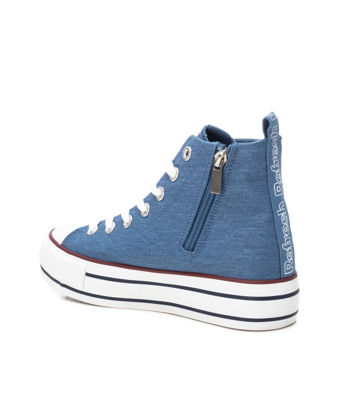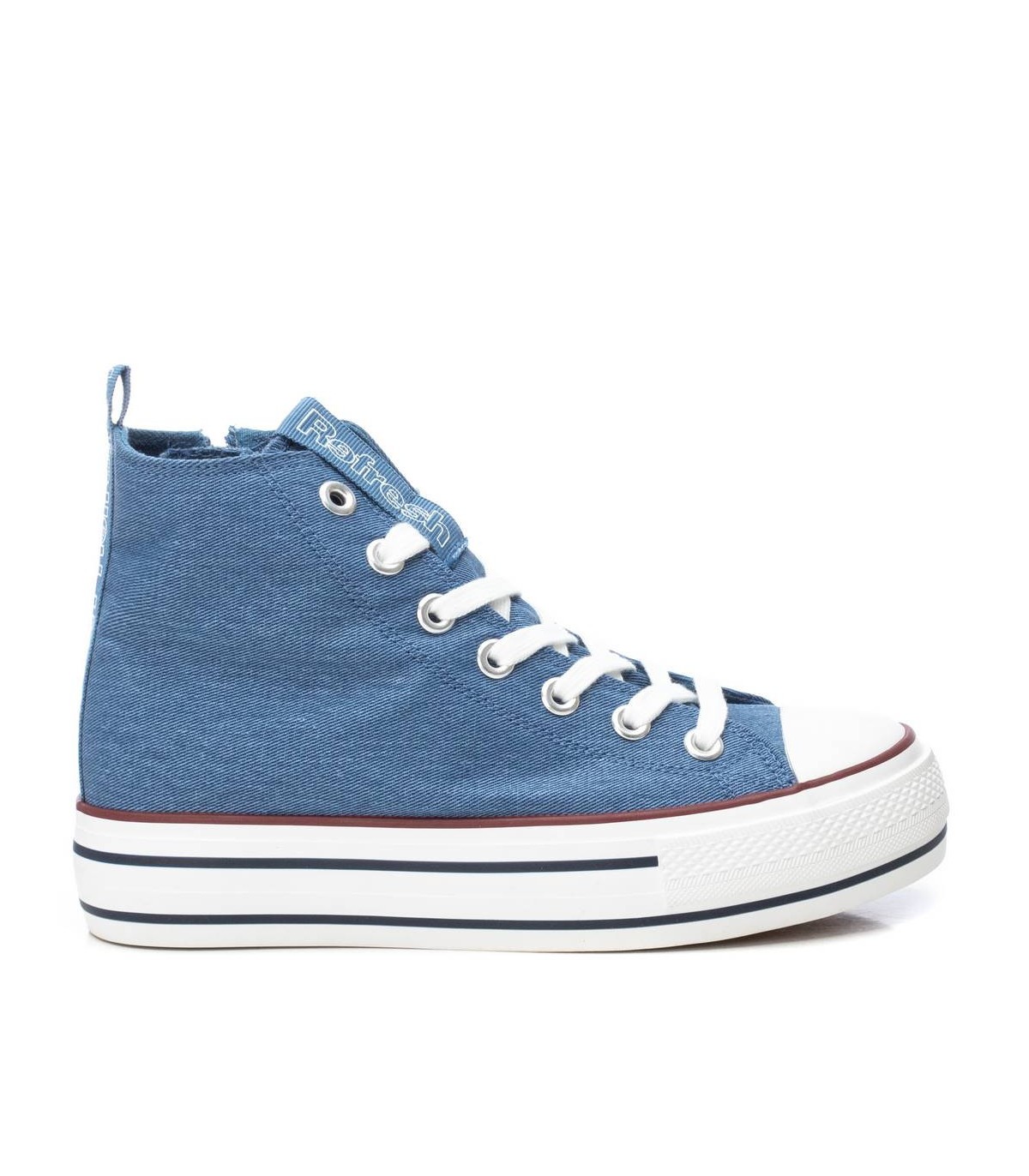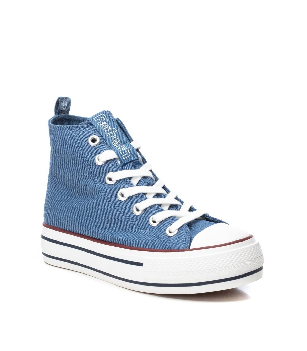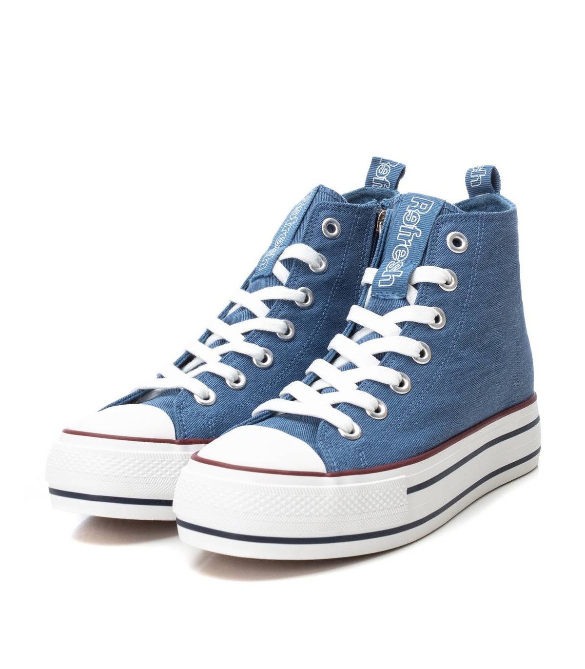 Zapatilla tipo botín de mujer, de la marca Refresh. Fabricada en lona. Cierre mediante cordones ajustables. Doble piso con suela de goma antideslizante. Este modelo ha obtenido el certificado vegano por la organización mundial PETA (Organización de los derechos de los animales).