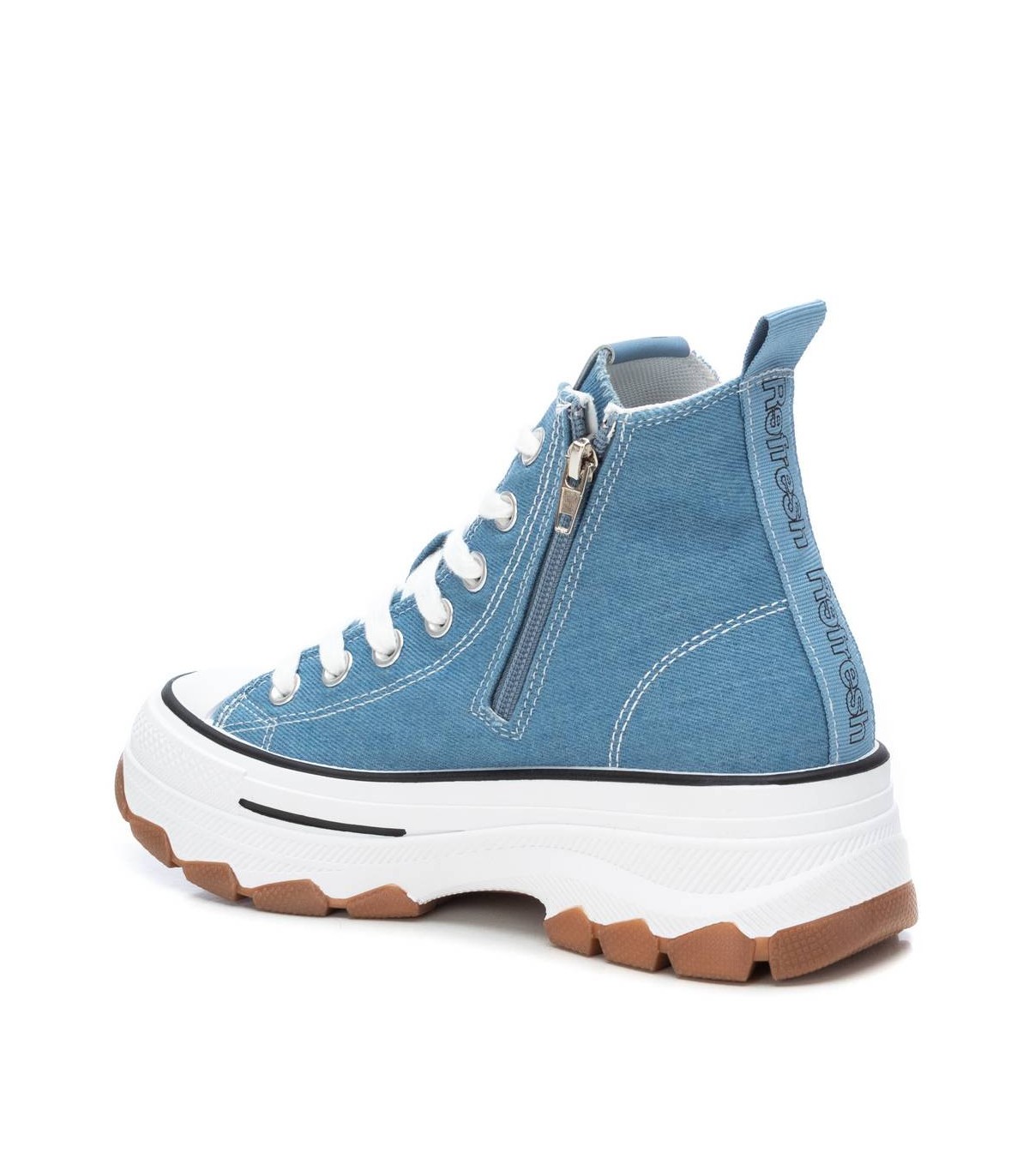 Zapatilla tipo botín de mujer, de la marca Refresh. Fabricada en lona. Cierre mediante cremallera lateral y cordones ajustables. Tirador trasero para facilitar la puesta. Piso volumen con suela dentada de goma antideslizante. Este modelo ha obtenido el certificado vegano por la organización mundial PETA (Organización de los derechos de los animales).