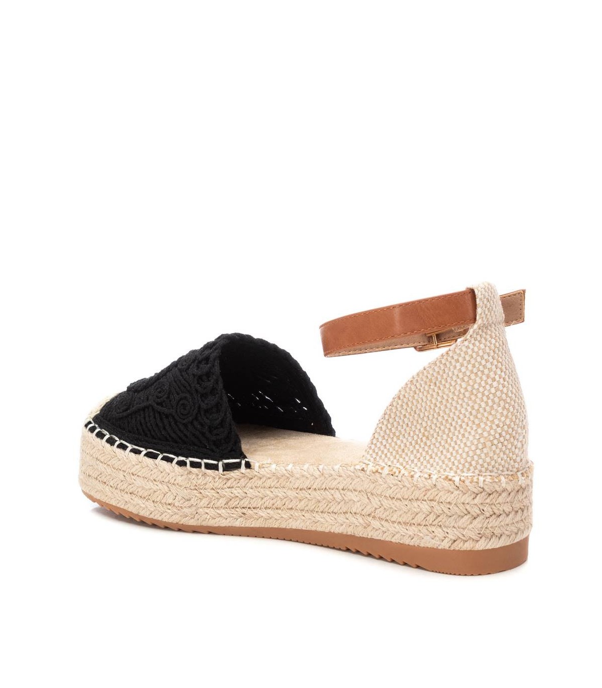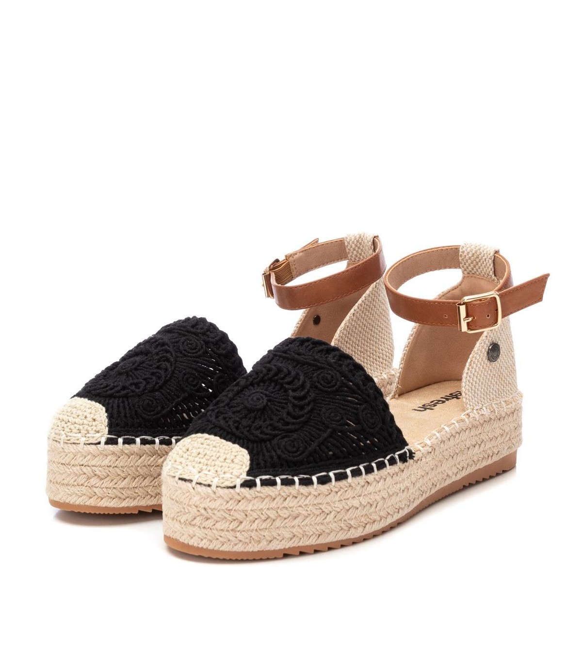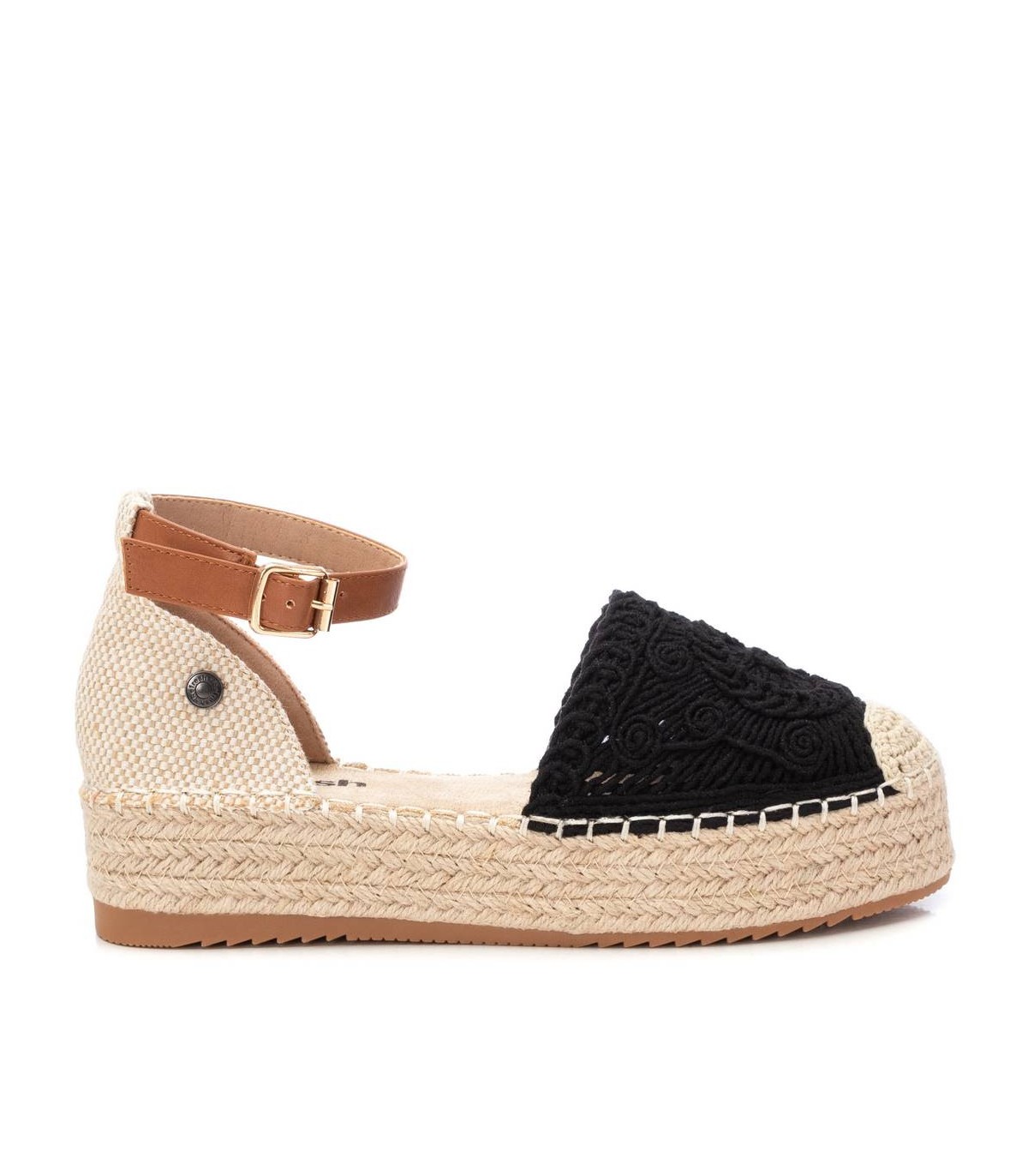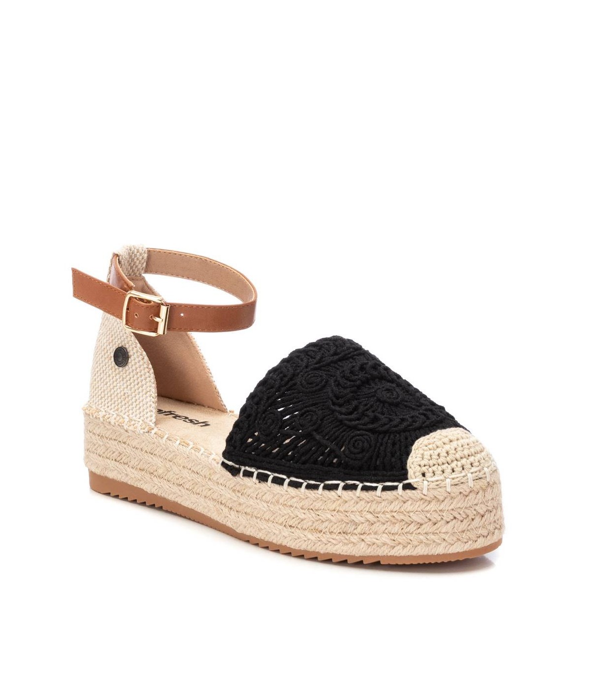 Zapato de mujer, de la marca Refresh. Fabricado en material textil. Cierre mediante pulsera al tobillo con hebilla. Modelo estilo alapargata con talón cerrado y bonito diseño veraniego en el frente. Piso volumen forrado en yute trenzado. Suela antideslizante. Este modelo ha obtenido el certificado vegano por la organización mundial PETA (Organización de los derechos de los animales).