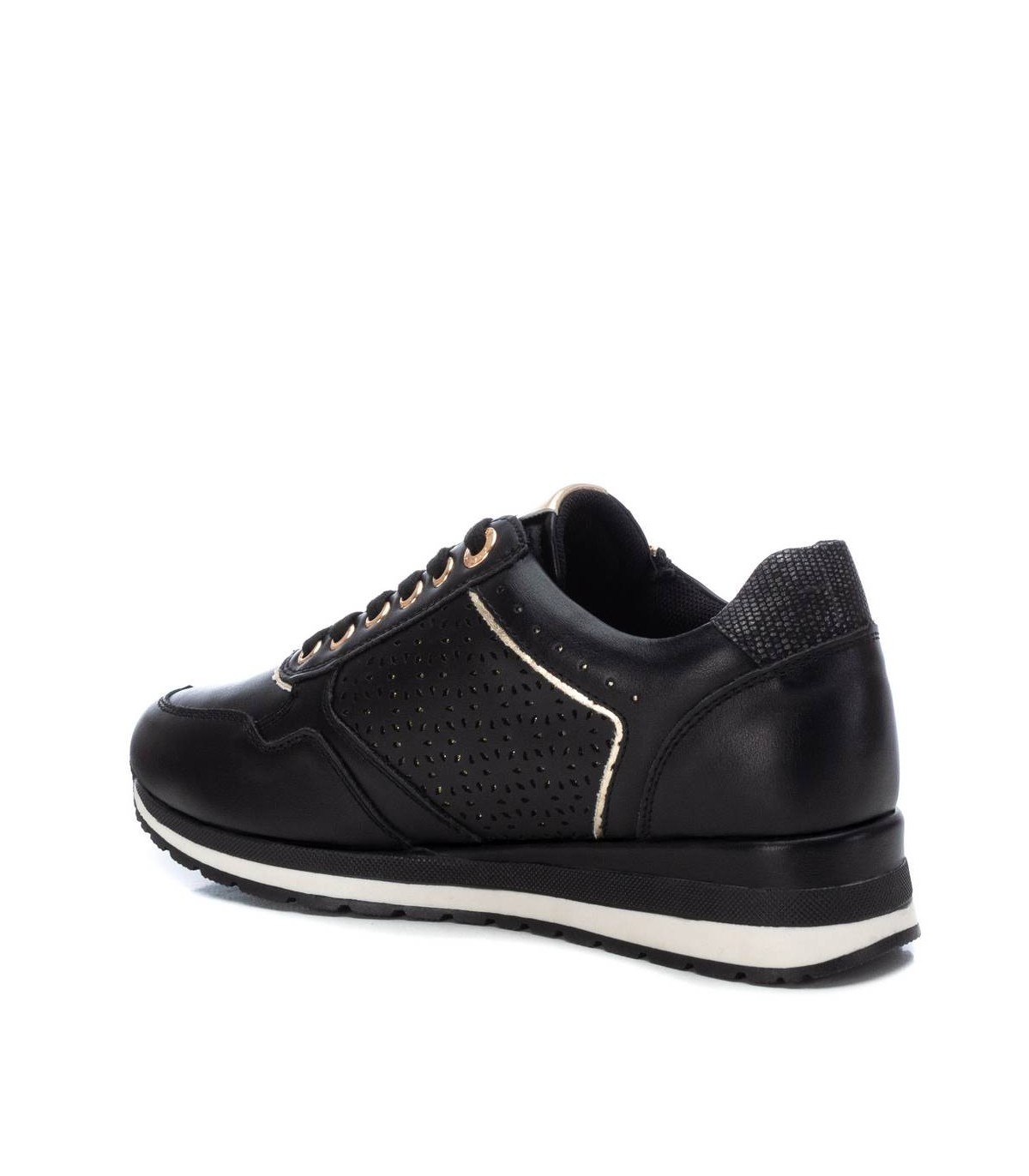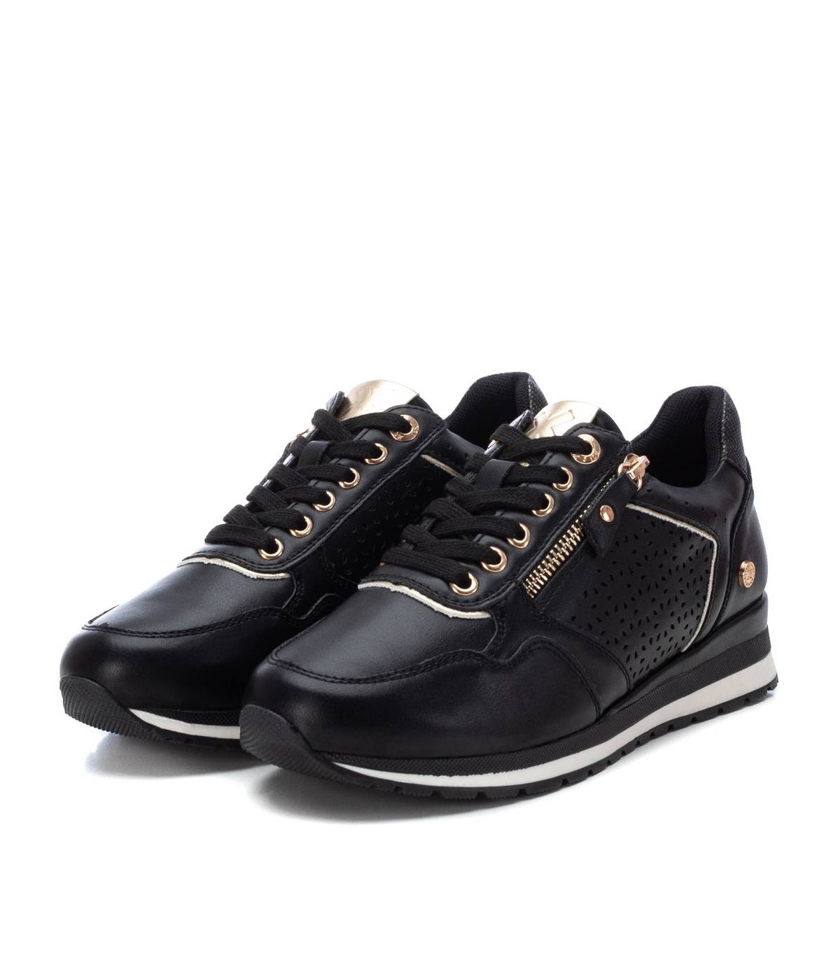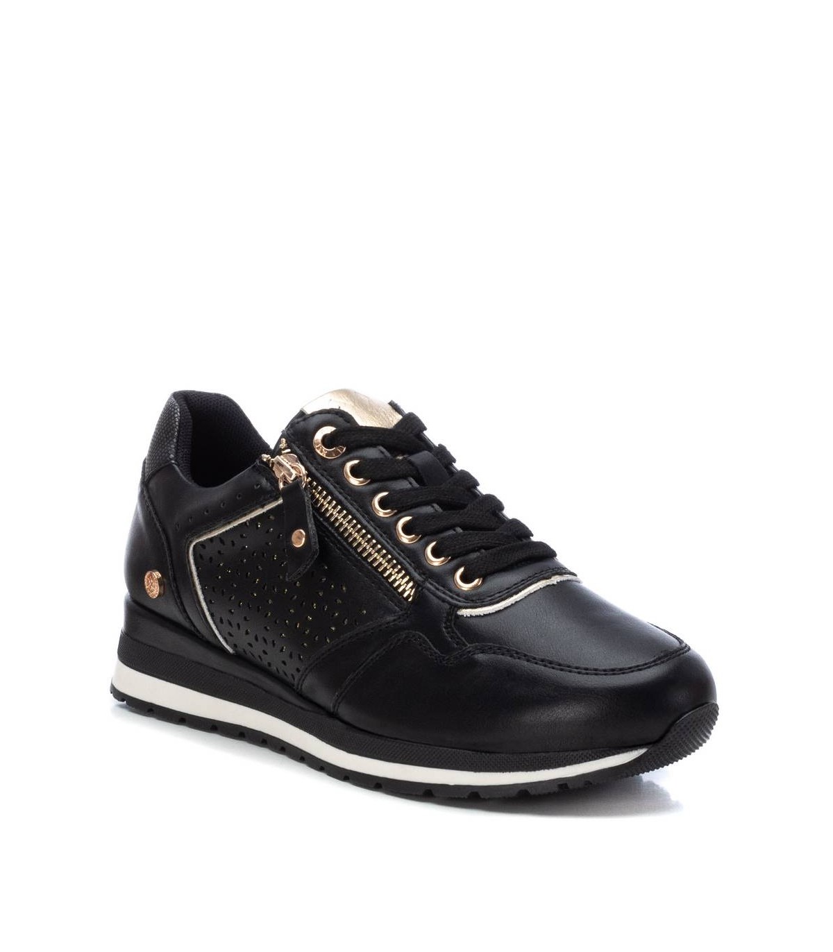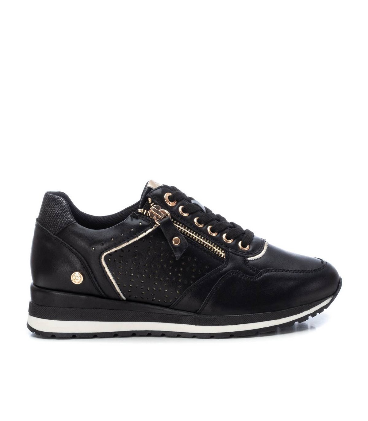 Zapatilla casual de mujer, de la marca Xti. Está fabricada en material que imita a la piel. Bonito troquelado en el lateral. Cordones al tono y cremallera con función en el lateral. Cuña bicolor con suela de goma antideslizante. Este modelo ha obtenido el certificado vegano por la organización mundial PETA (Organización de los derechos de los animales).