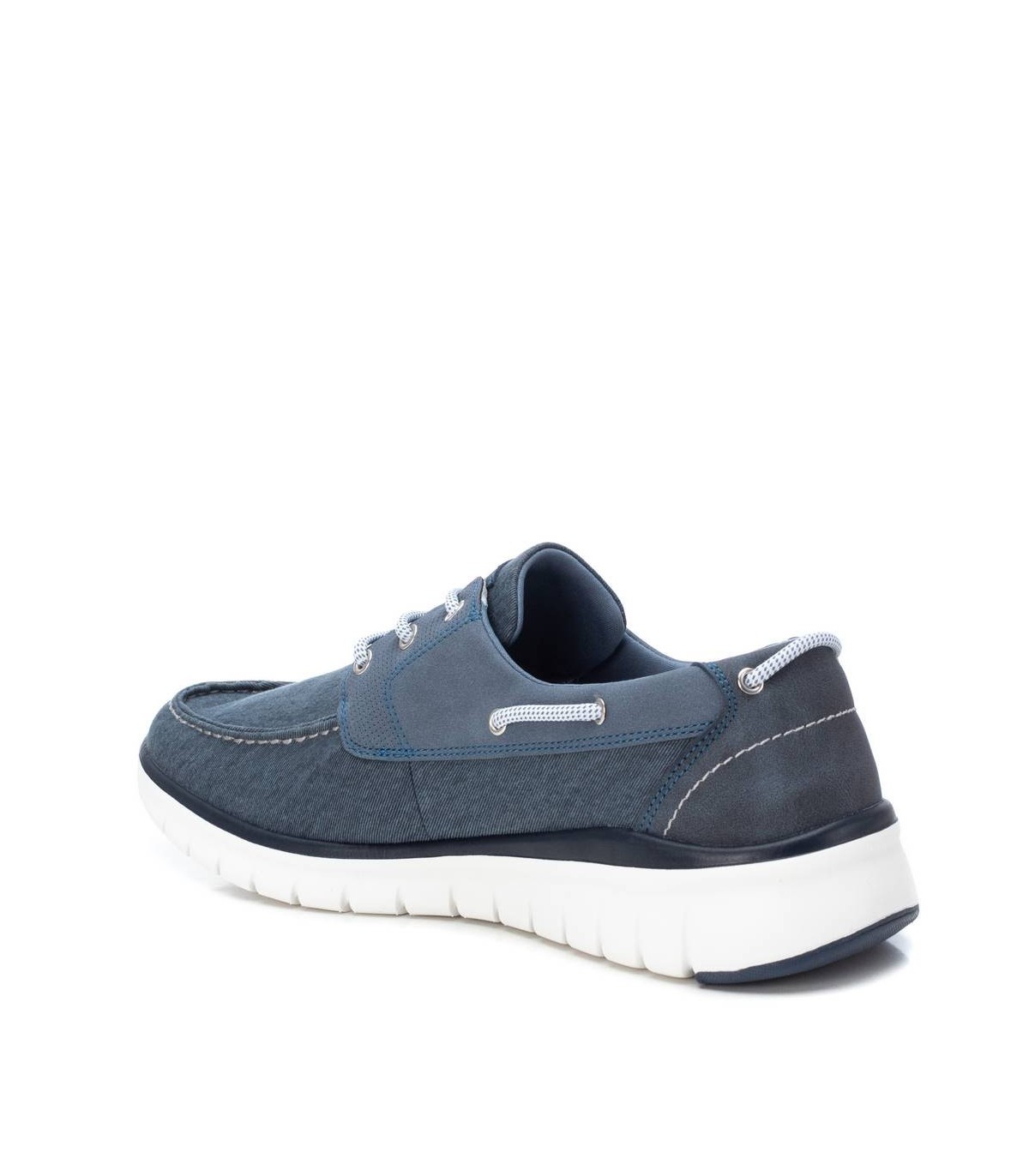 Zapato de hombre tipo náutico, de la marca Xti. Fabricado en material textil, con cordones. Suela de goma antideslizante. Este modelo ha obtenido el certificado vegano por la organización mundial PETA (Organización de los derechos de los animales).