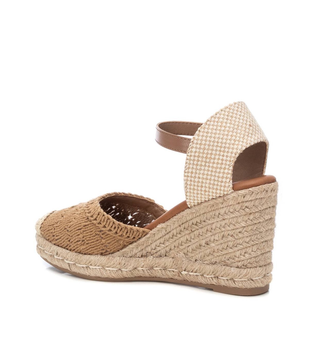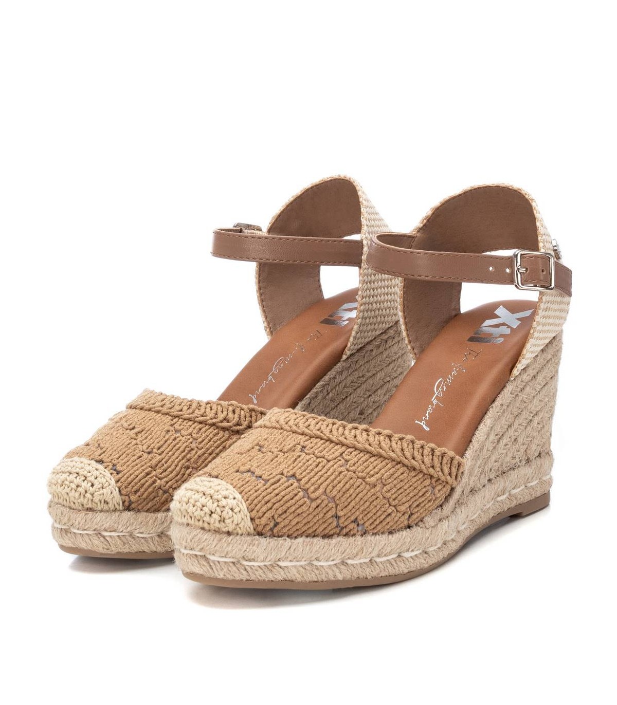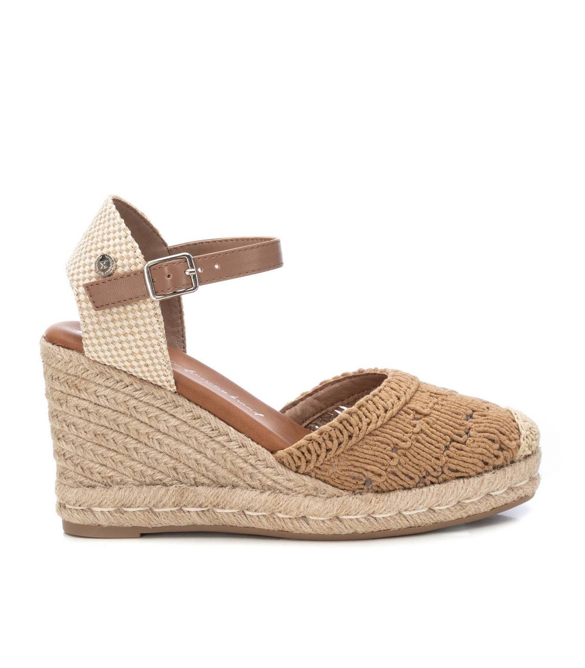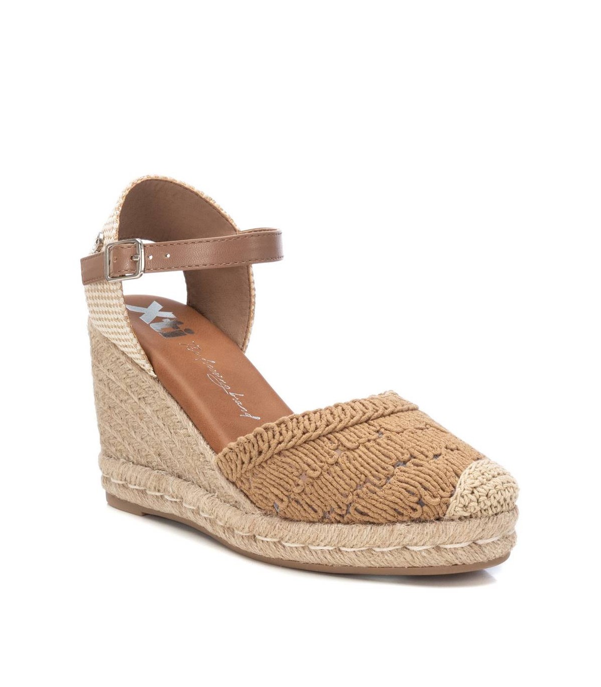Alpargata de mujer tipo valenciana, de la marca Xti. Fabricado en un precioso motivo de crochet calado, combinado con una trasera de textil para mayor comodidad, será el protagonista de todos tus looks. Cuña de 8 cm de yute con suela de goma antideslizante. Cinta que sujeta al tobillo con hebilla metálica. Este modelo ha obtenido el certificado vegano por la organización mundial PETA (Organización de los derechos de los animales).