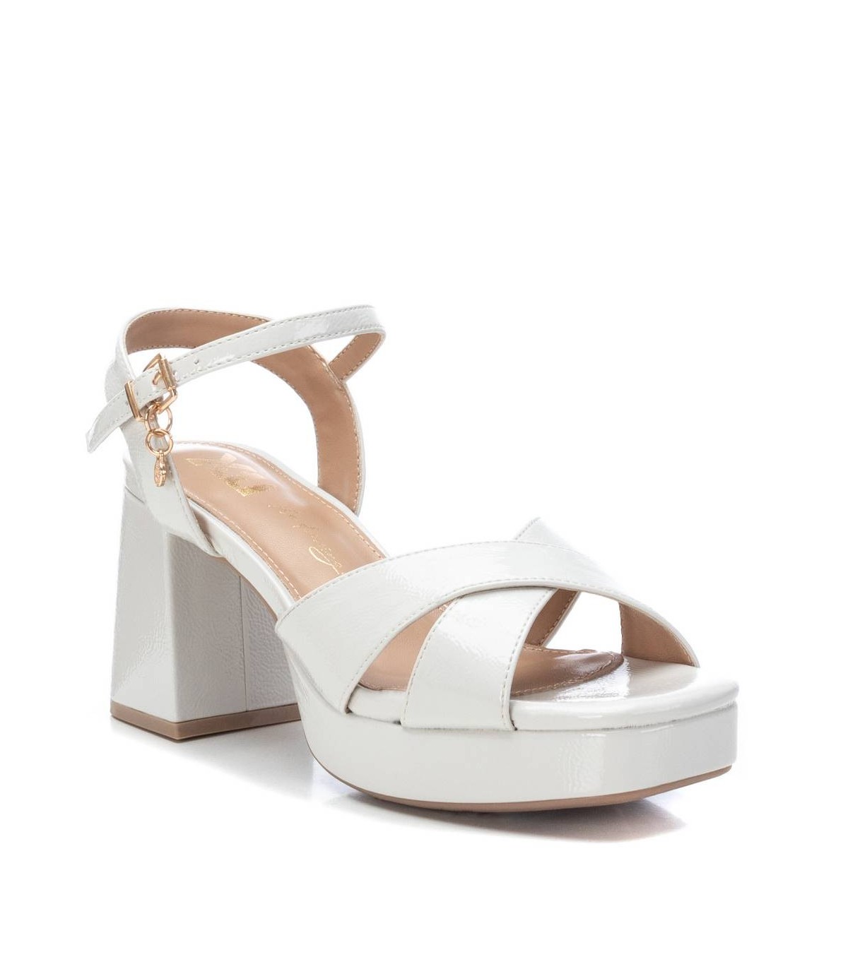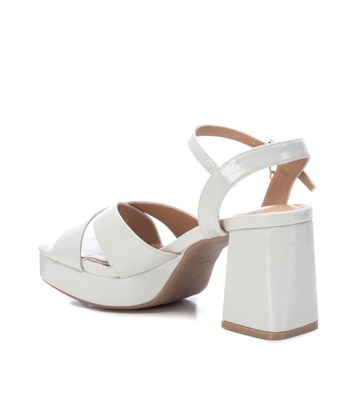 Sandalia de mujer, de la marca Xti. Fabricada en material imitación a piel, tipo charol. Modelo de pala cruzada. Pulsera con hebilla metalizada para ajustar el tobillo. Cómoda planta acolchada. Tacón de 9 cm de altura y plataforma delantera para más comodidad. Este modelo ha obtenido el certificado vegano por la organización mundial PETA (Organización de los derechos de los animales).
