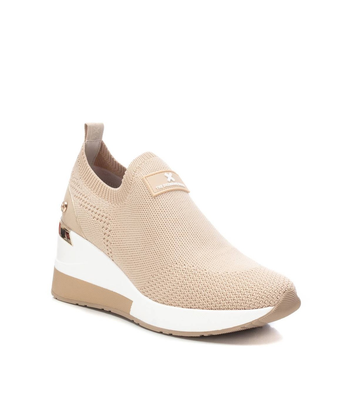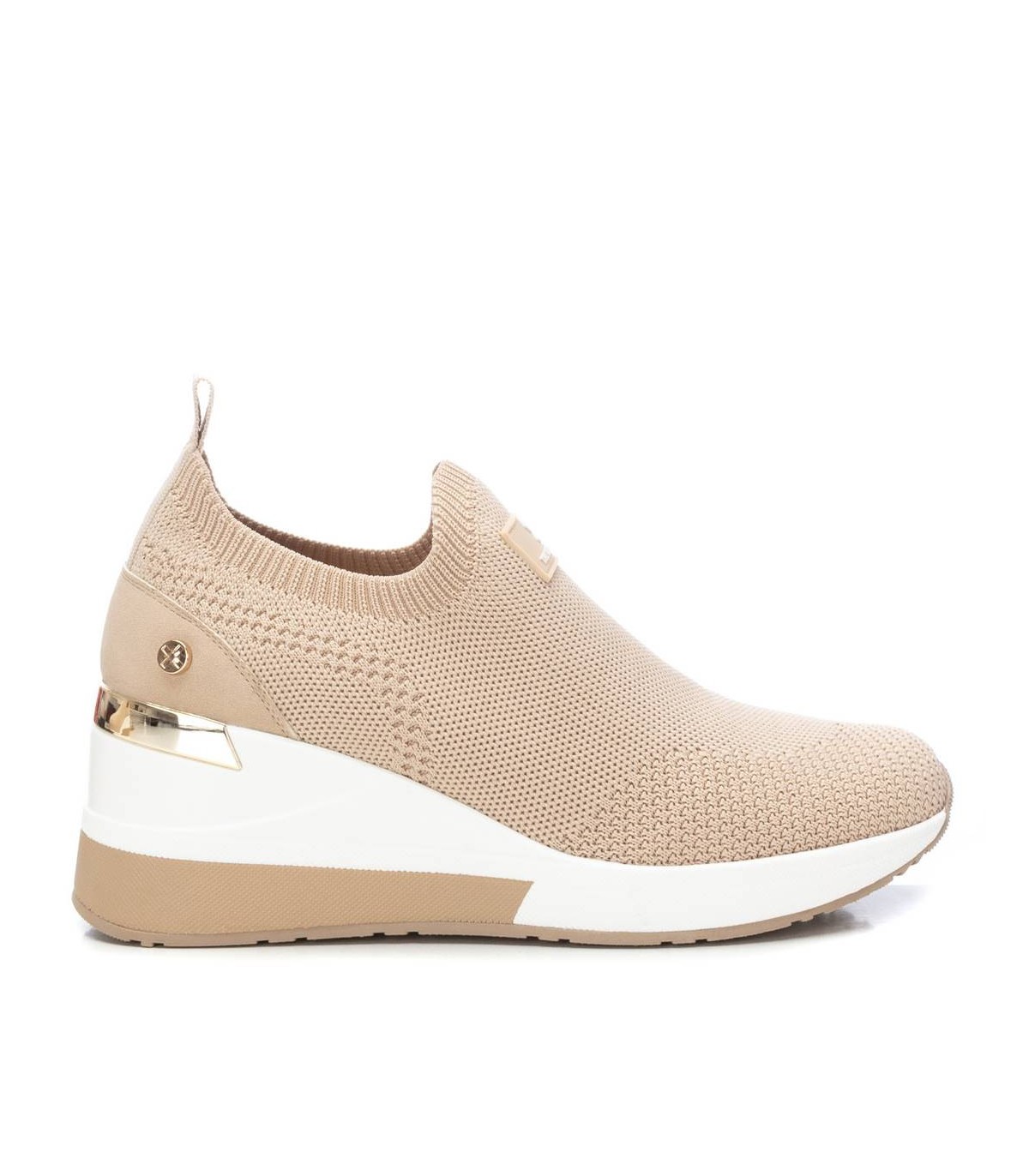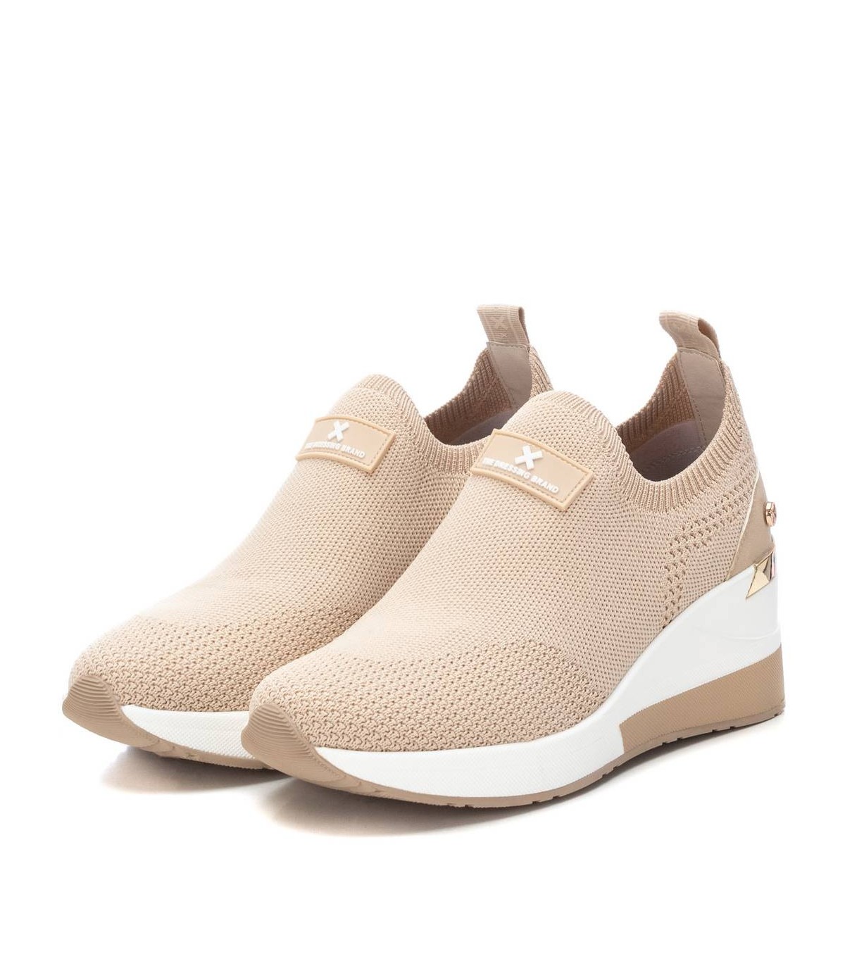 Zapatilla de mujer, de la marca Xti. Fabricado en un cómodo textil elástico. Cuña bicolor de 5 cm de altura, con suela de goma antideslizante. Este modelo ha obtenido el certificado vegano por la organización mundial PETA (Organización de los derechos de los animales).