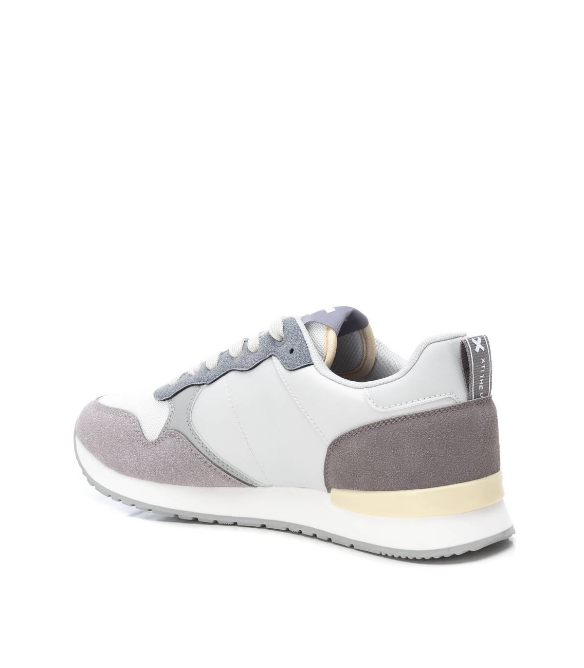 Zapatilla de hombre, de la marca Xti. Fabricada en textil combinado con material que imita la piel. Cierre mediante cordones y tira trasera para facilitar el calce. Suela de goma antideslizante. Este modelo ha obtenido el certificado vegano por la organización mundial PETA (Organización de los derechos de los animales).