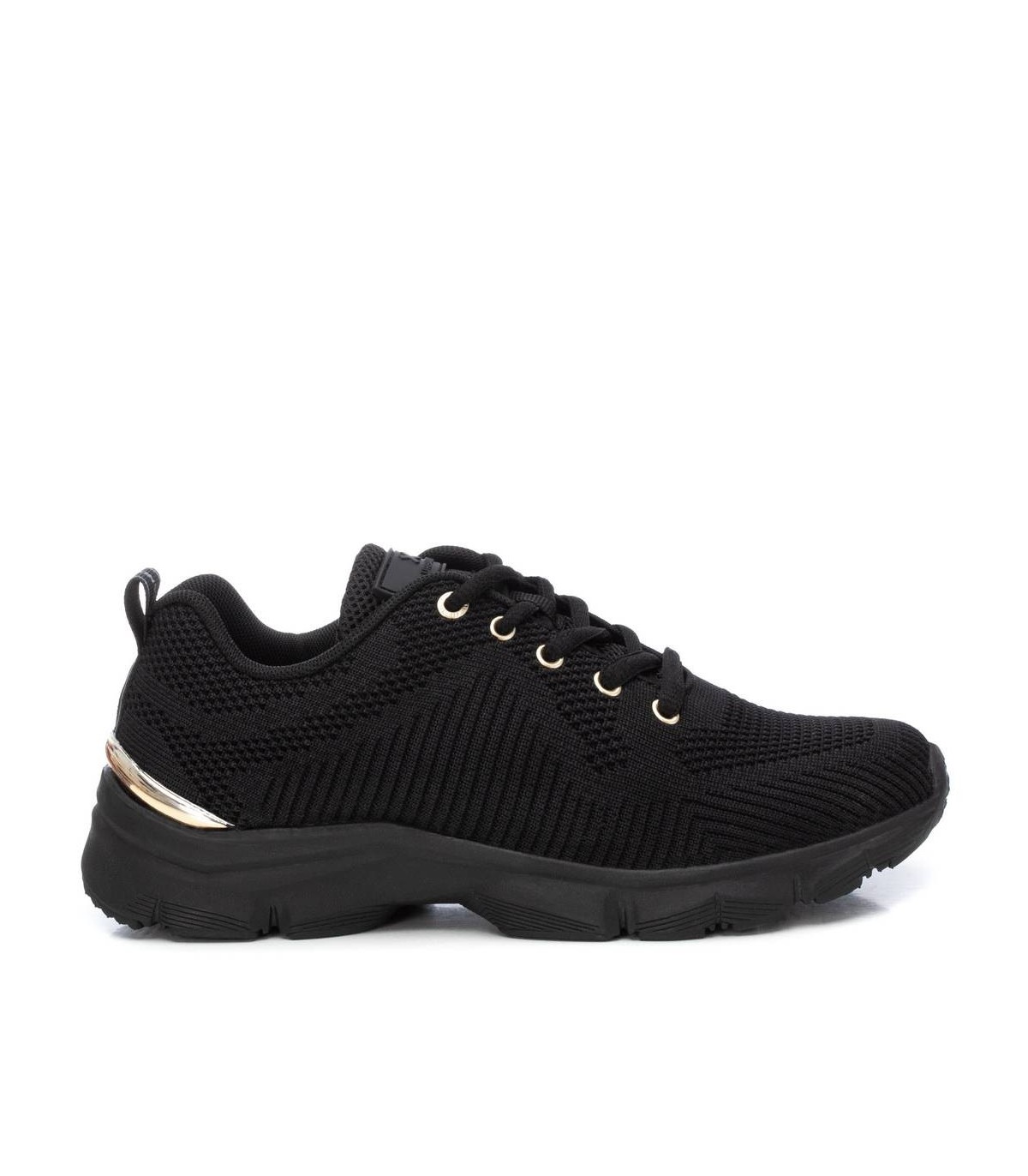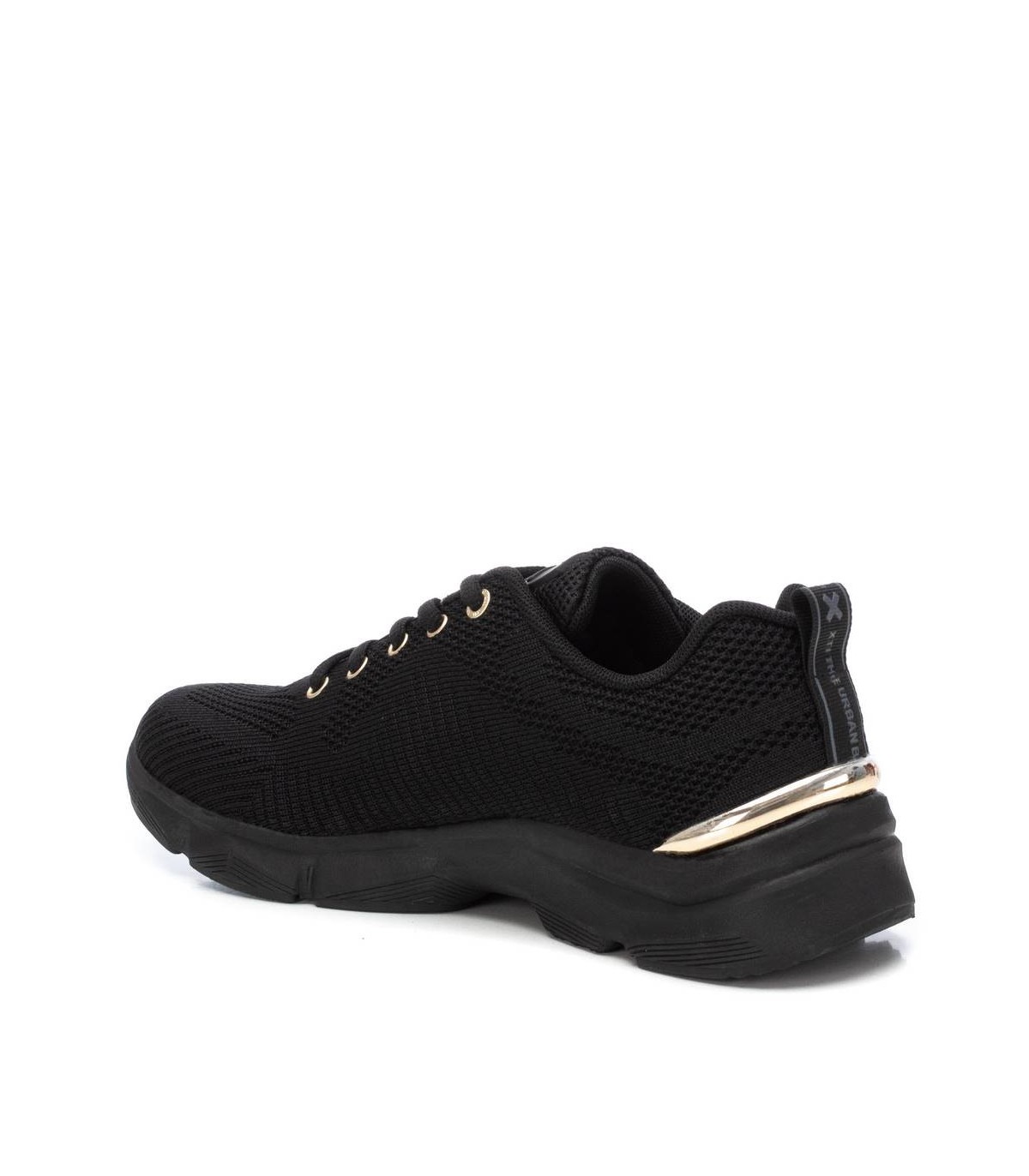 Zapatilla de mujer de la marca Xti. Fabricada en textil. Cierre mediante cordones y tirador trasero que facilitan la puesta. Suela de goma antideslizante. Este modelo ha obtenido el certificado vegano por la organización mundial PETA (Organización de los derechos de los animales).