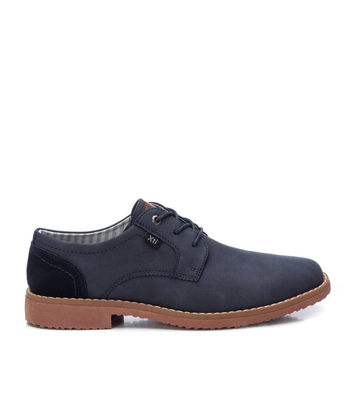 Zapato de hombre, de la marca Xti. Fabricado en material que imita la piel, de alta calidad. Cierre por medio de cordones. Suela de goma antideslizante. Zapato ergonómico y diseñado para brindar comodidad todo el dia.