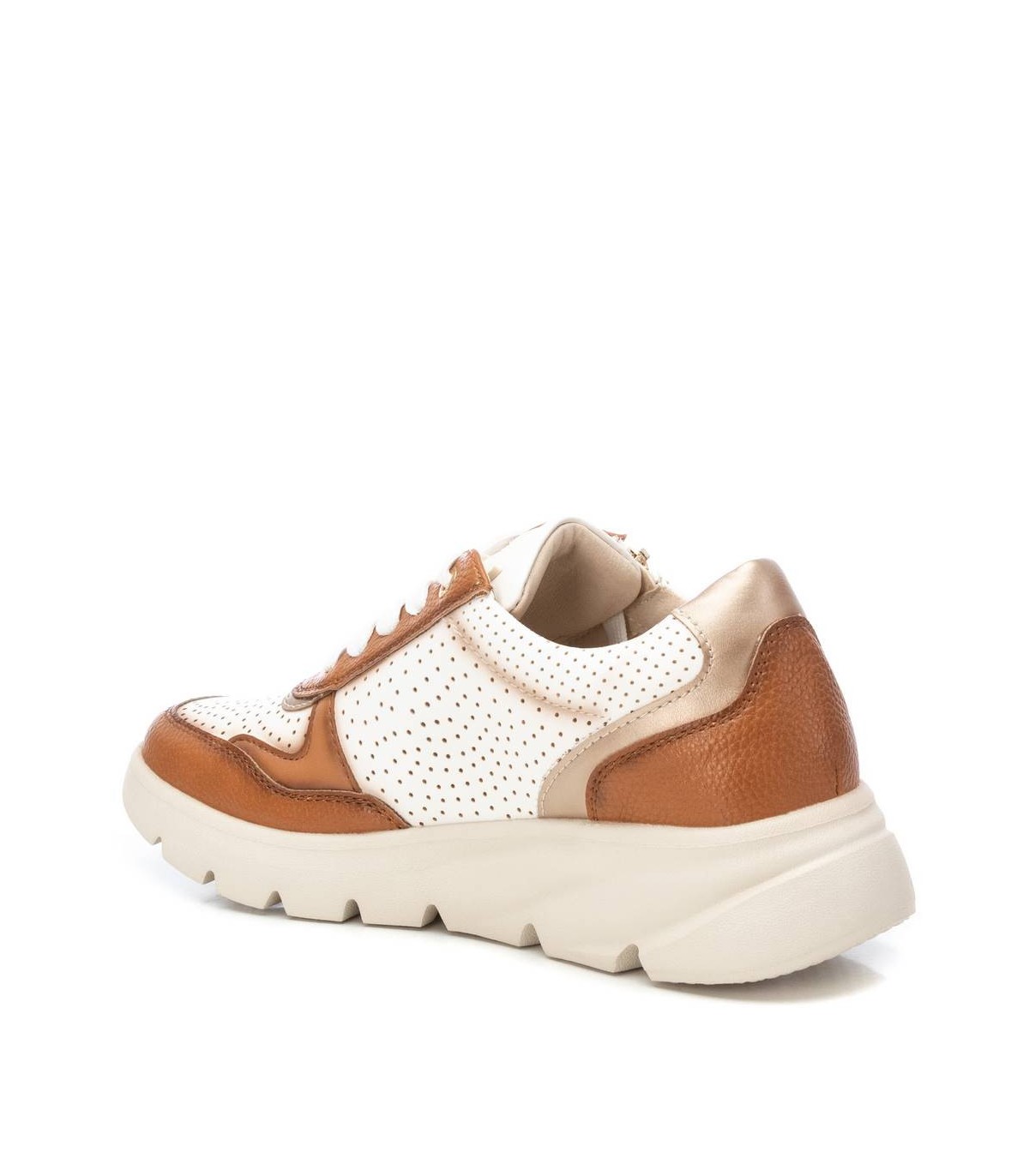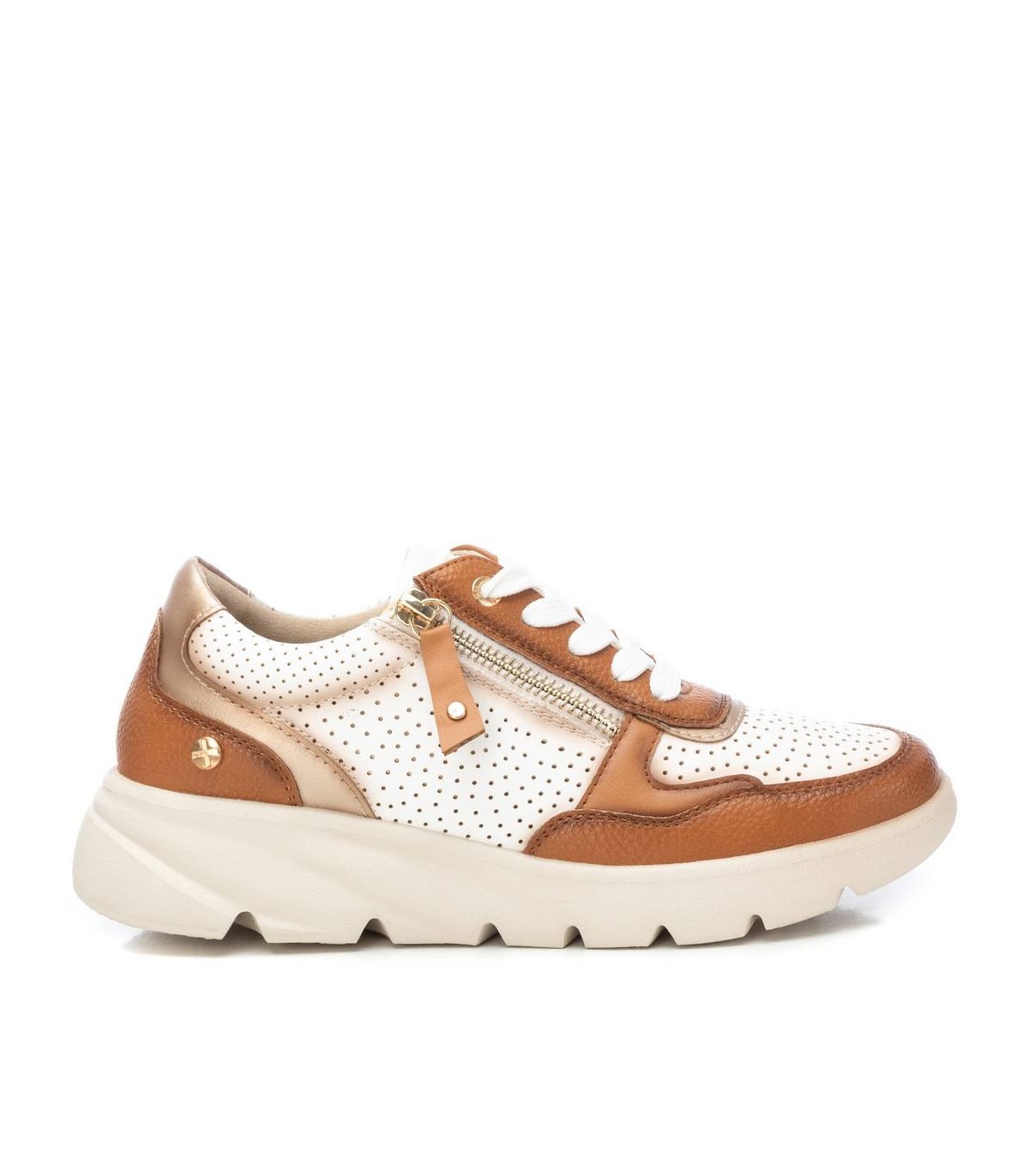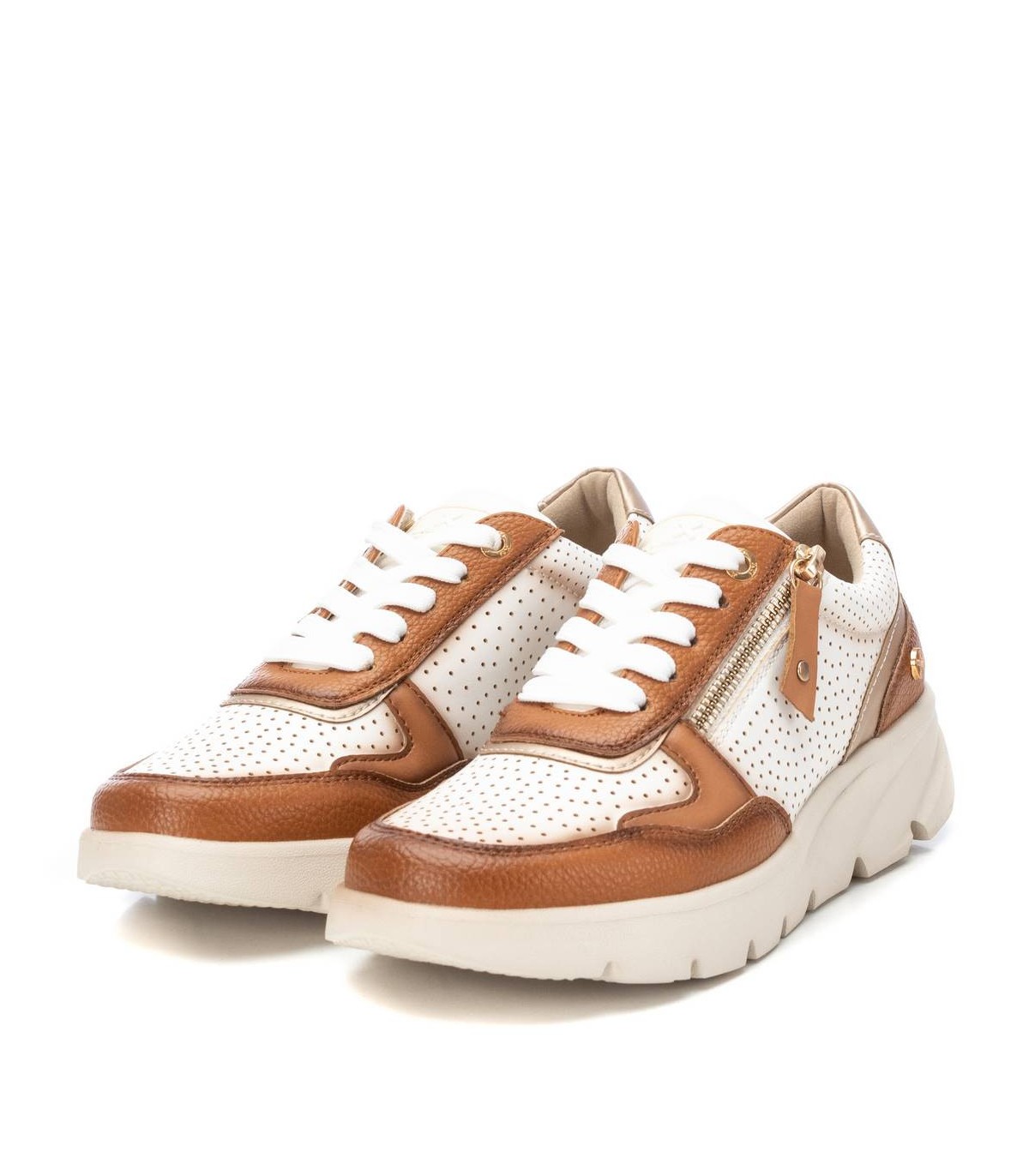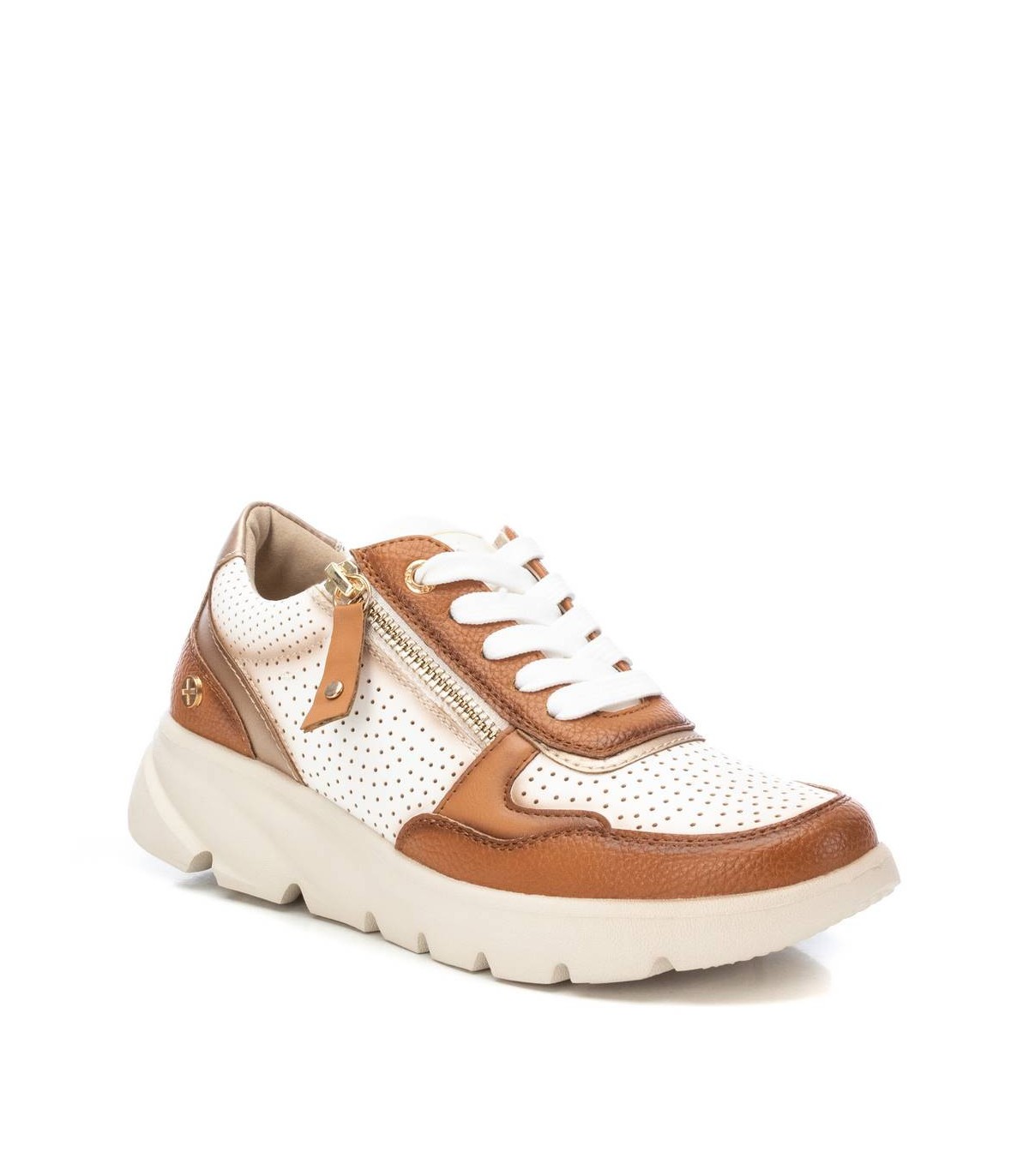 Zapatilla de mujer, de la marca Xti. Fabricada en material que imita la piel con detalle de troquelado decorativo. Cierre mediante cordones ajustables y cremallera lateral para aportar falicidad en el calce. Suela de goma antideslizante. Ideal para aportar unos cm con total confort. Este modelo ha obtenido el certificado vegano por la organización mundial PETA (Organización de los derechos de los animales).