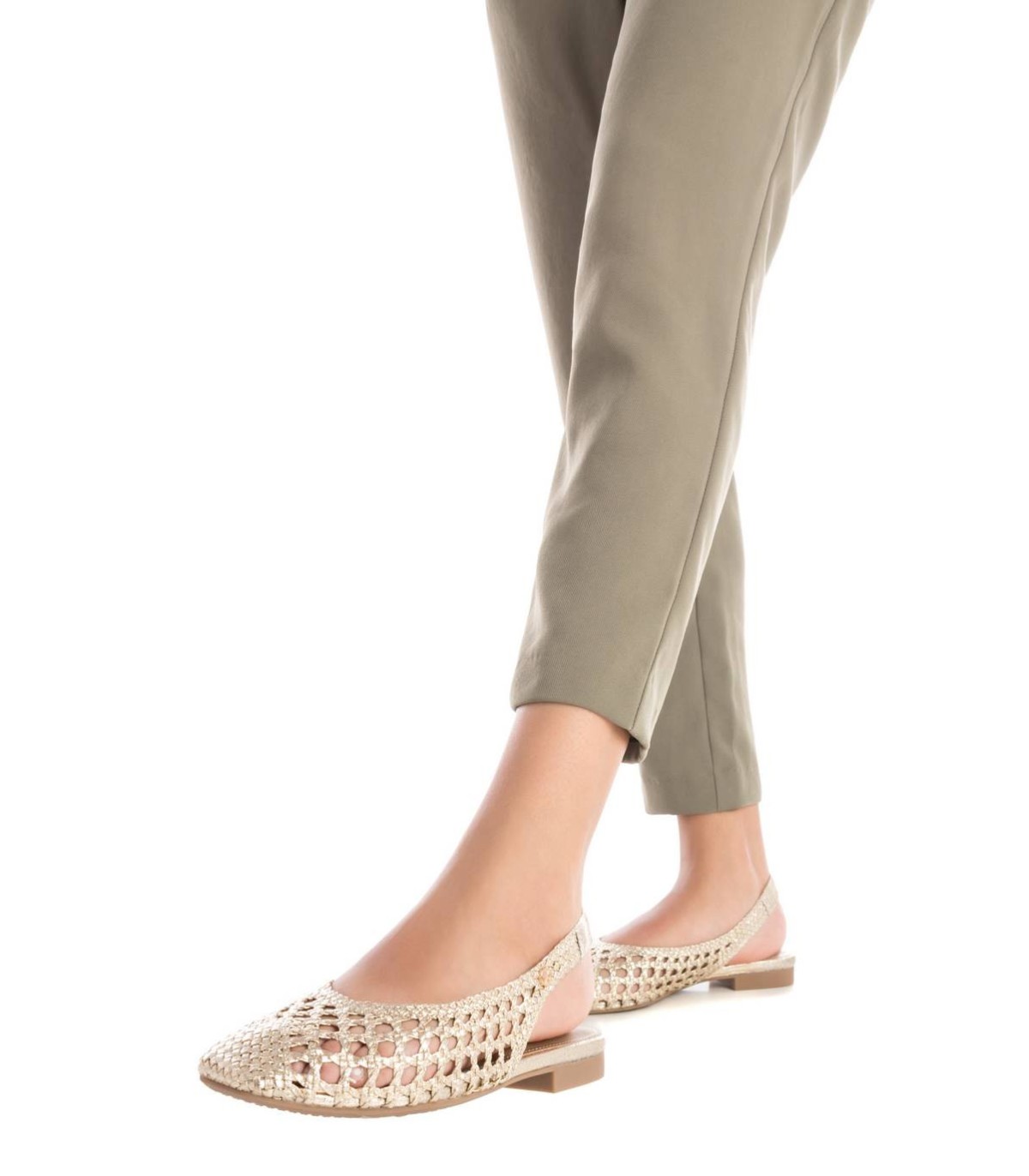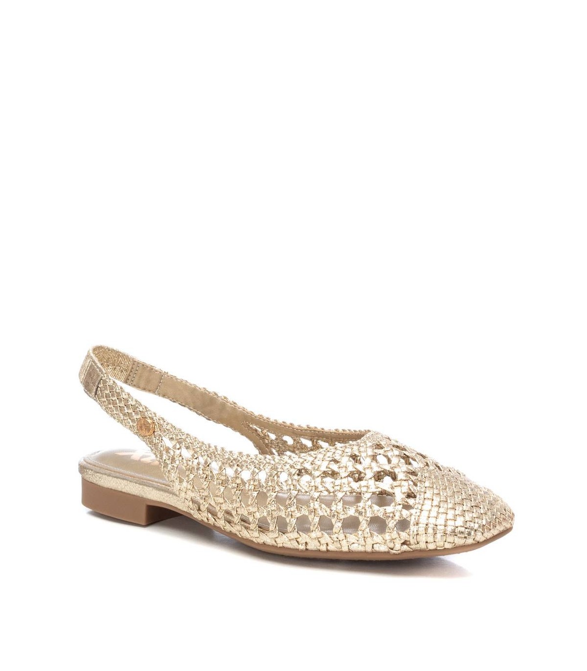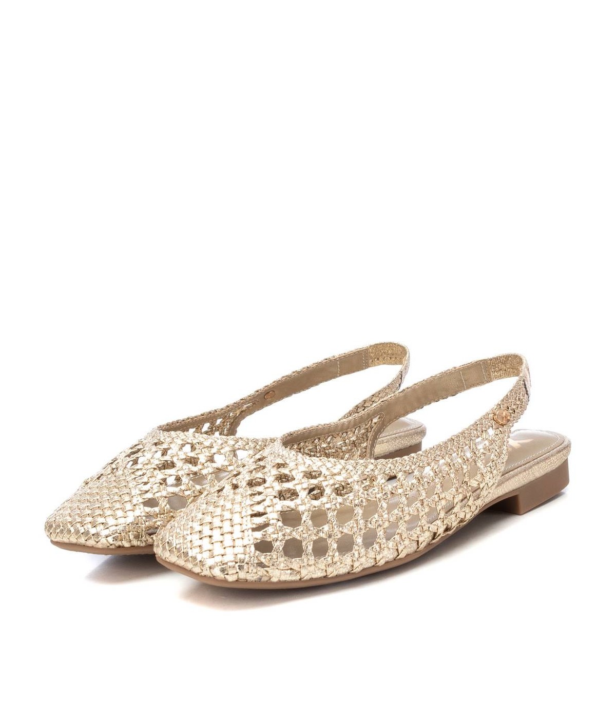 Zapato destalonado de mujer de la marca Xti. Fabricada en material trenzado que imita la piel con acabado metalizado. Pulsera con elástico para facilitar su puesta. Suela de goma antideslizante. Estos zapatos serán el centro de tus mejores looks. Este modelo ha obtenido el certificado vegano por la organización mundial PETA (Organización de los derechos de los animales).