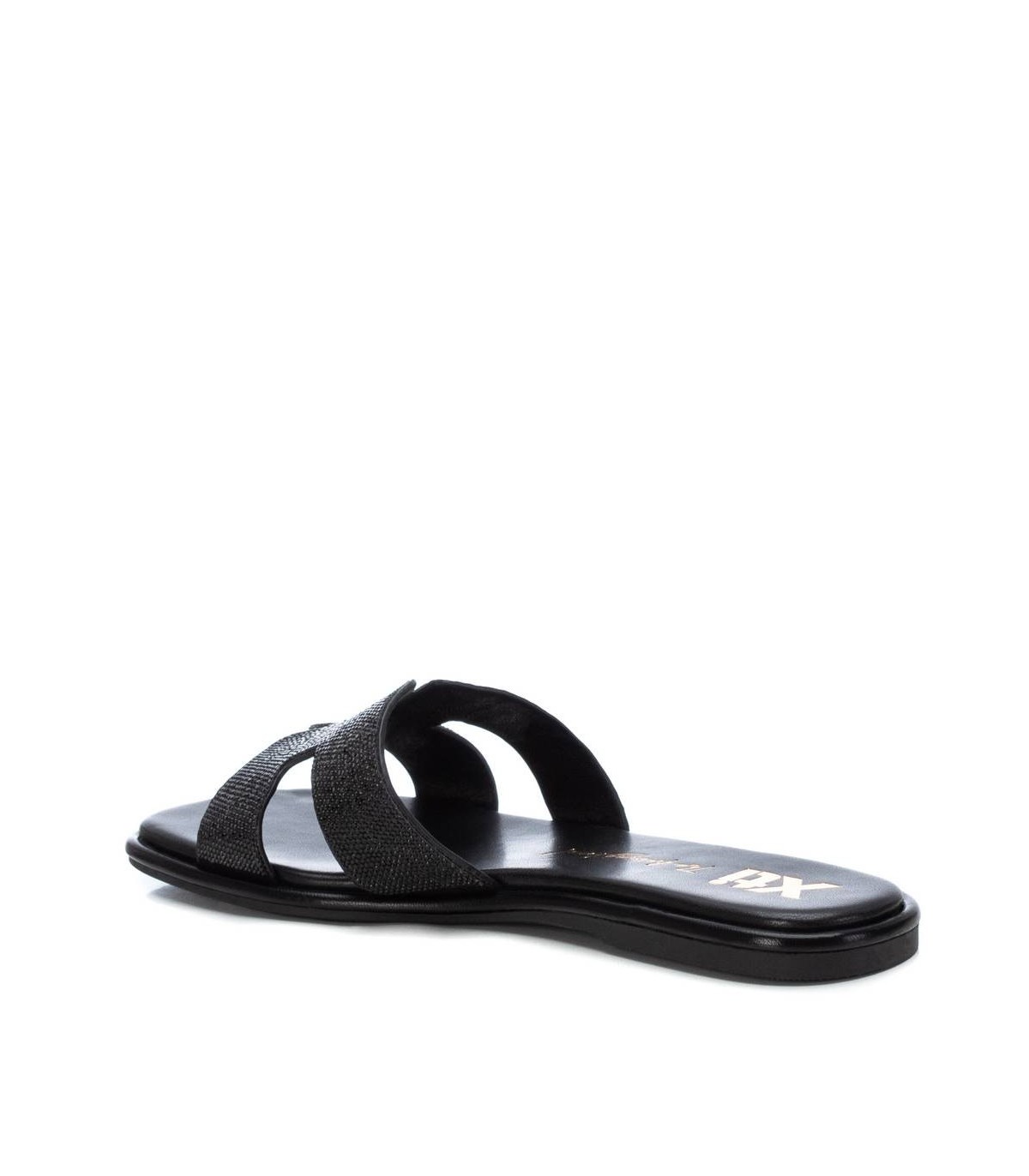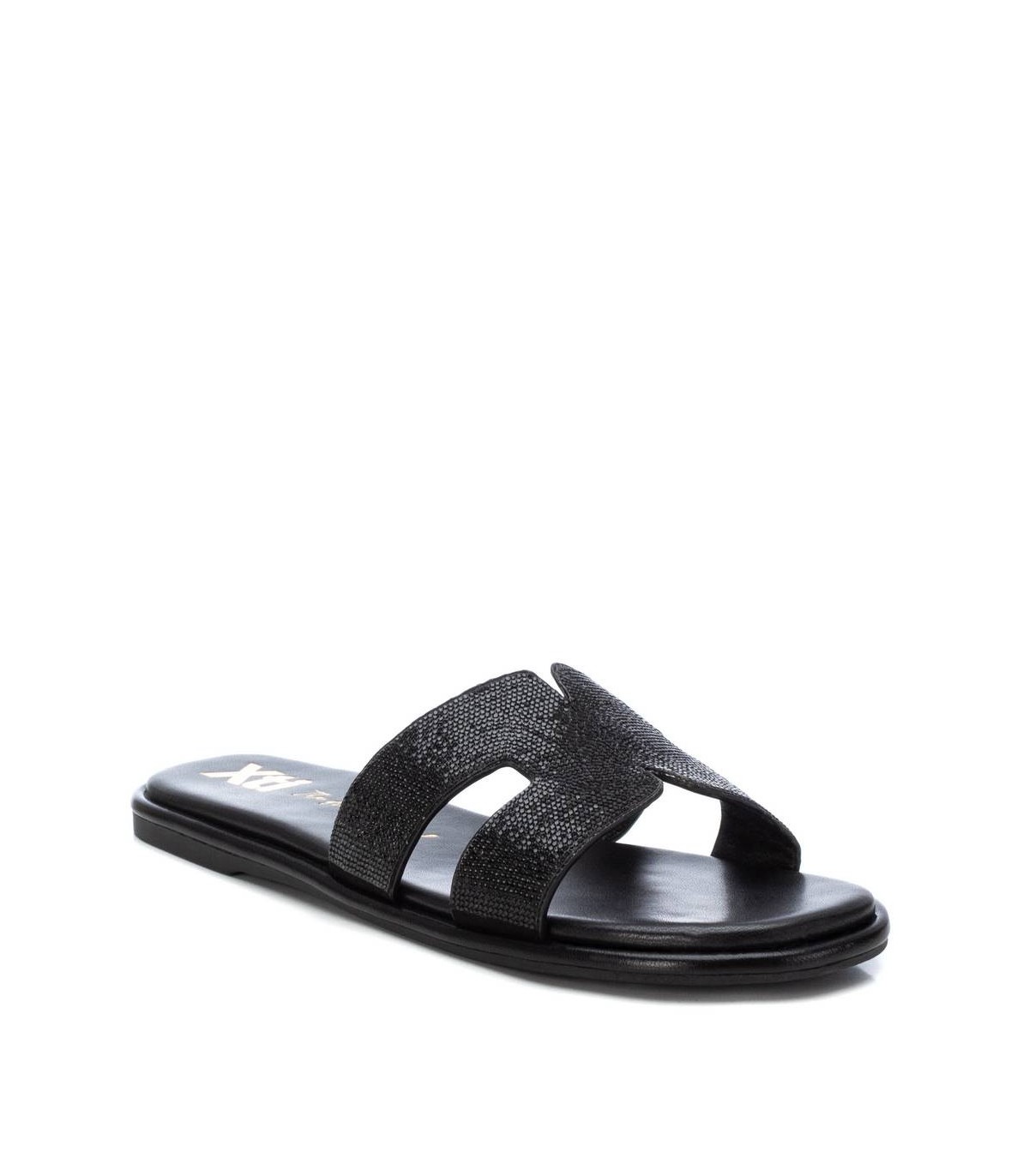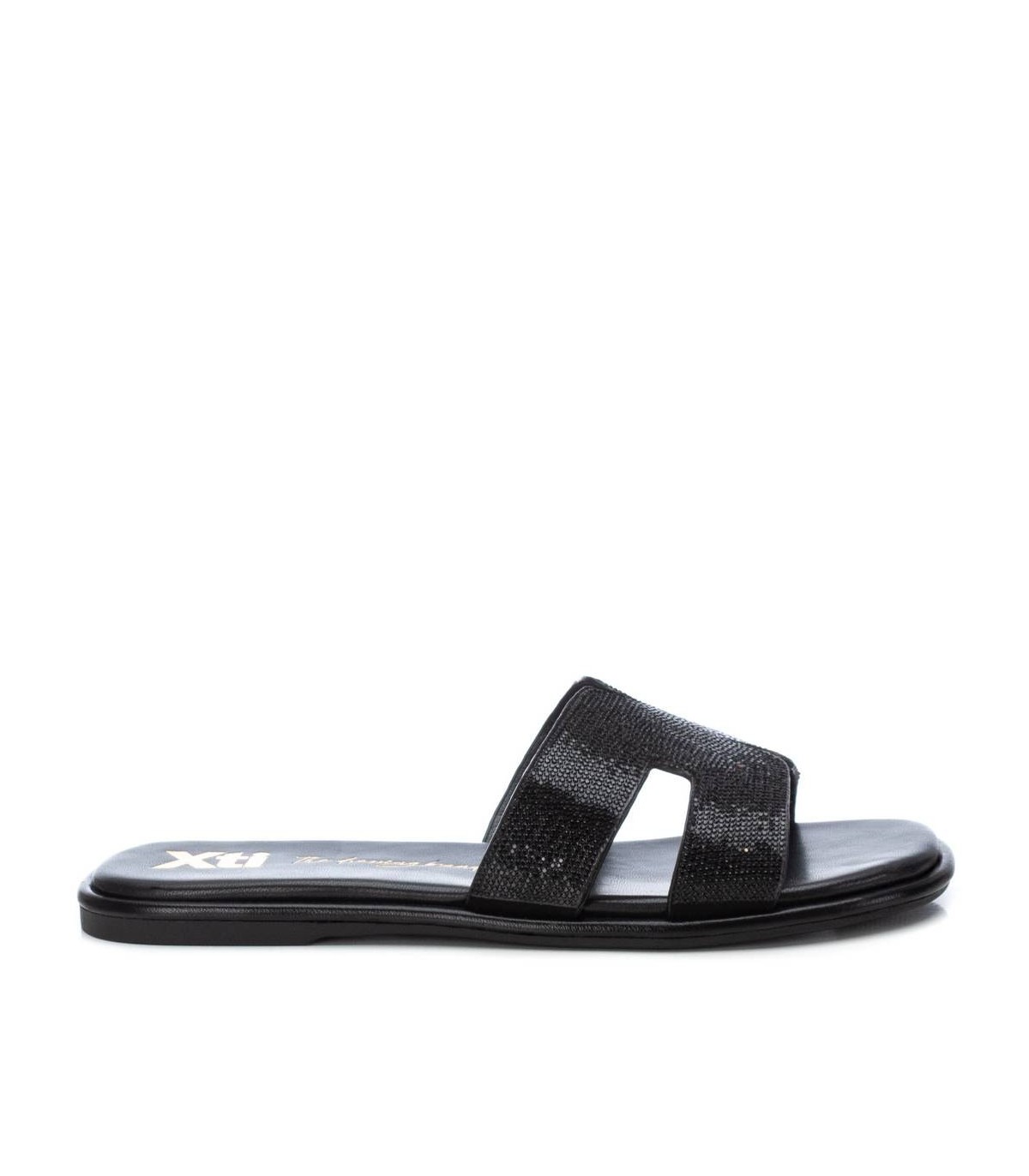 Sandalia de mujer, de la marca Xti. Fabricada en antelina con detalles de piedras de fantasía. Suela de goma antideslizante. Este modelo ha obtenido el certificado vegano por la organización mundial PETA (Organización de los derechos de los animales).