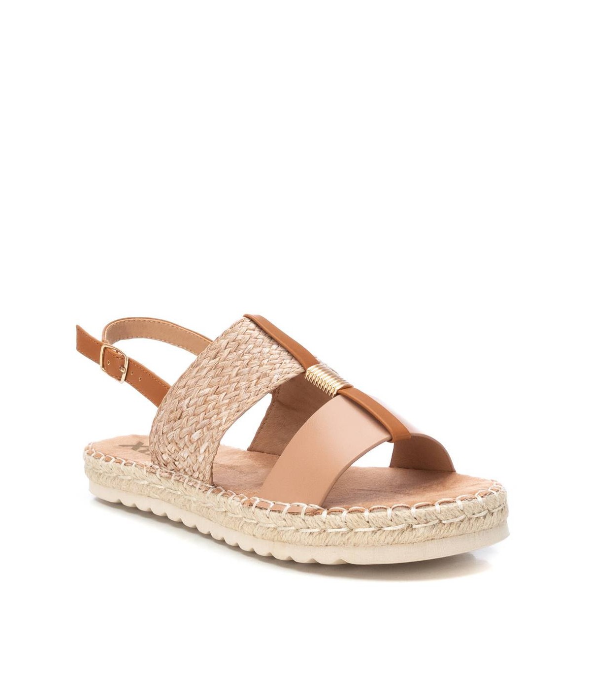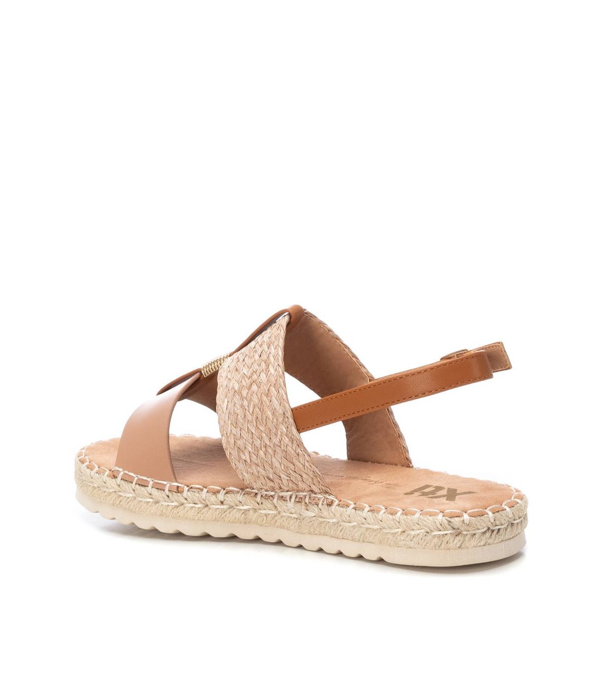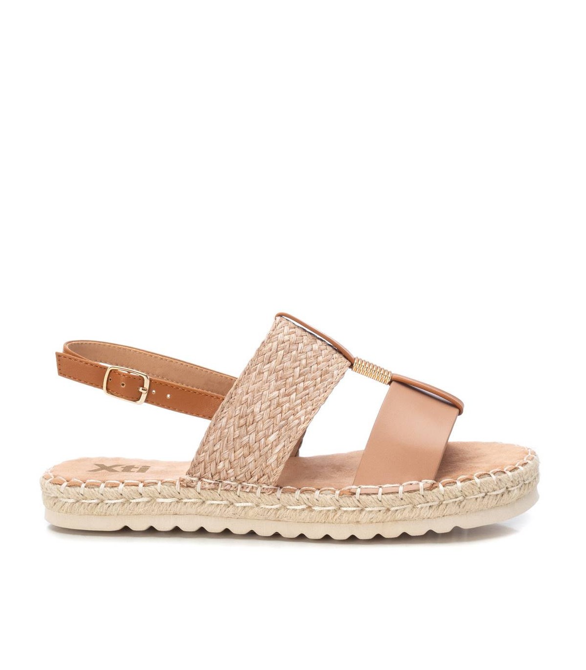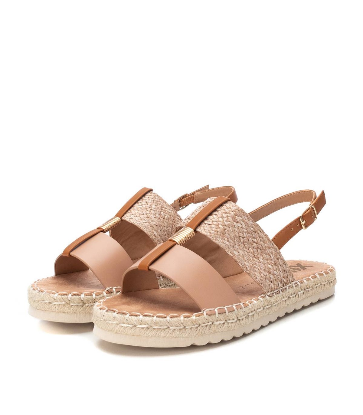 Sandalia de mujer, de la marca Xti. Fabricada en material que imita a la piel combinada con rafia. Suela de yute con goma antideslizante. Correa que sujeta al tobillo con hebilla metálica para una buena sujeción. Un imprescindible para esta temporada. Este modelo ha obtenido el certificado vegano por la organización mundial PETA (Organización de los derechos de los animales).