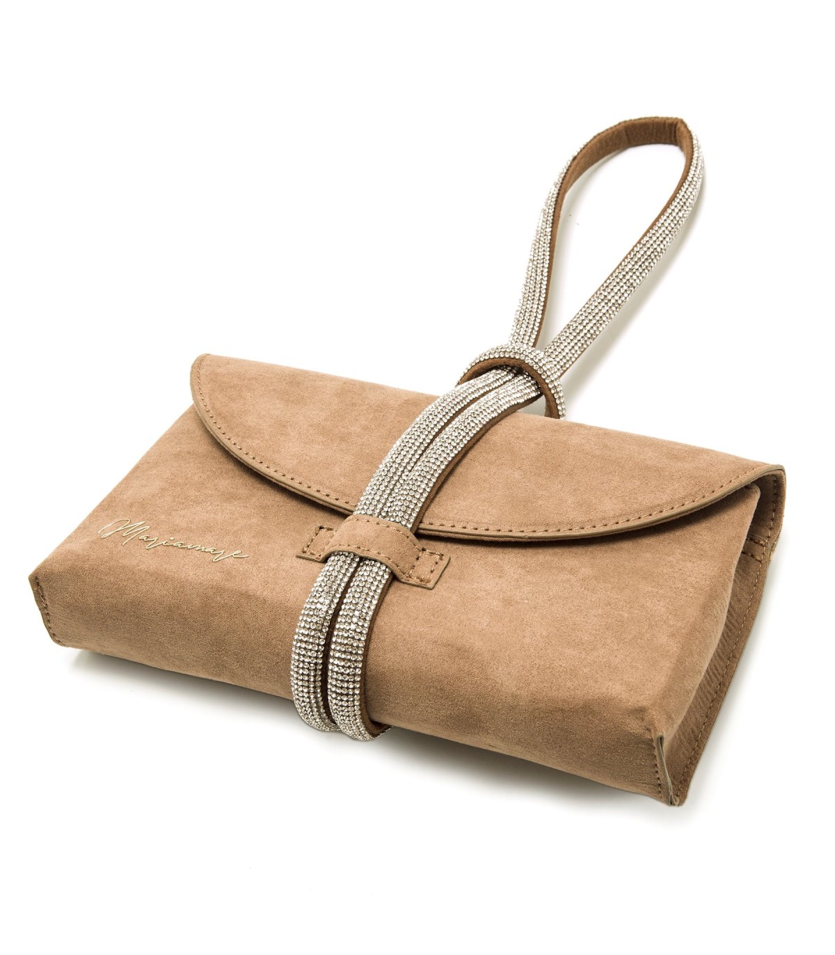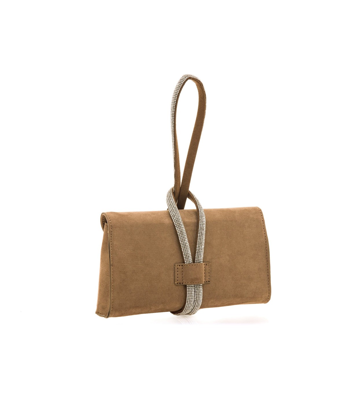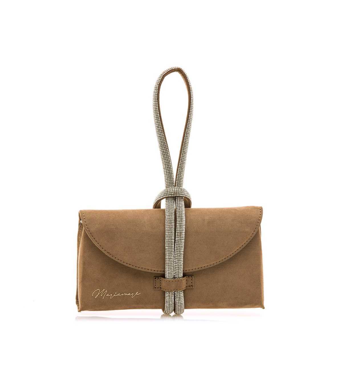 Bolso Roun color taupe para mujer, de Mariamare. Hecho con un material afelpado y un estilo moderno y versátil. Tiene cierre doble, magnético, y un brazalete de cristales que, además de hacerlo seguro, proporciona elegancia junto a su cadena plateada desmontable. Ideal para ocasiones especiales. Este bolso de noche puede llevarse a modo bandolera o cartera. ¡Conoce Roun de Mariamare!