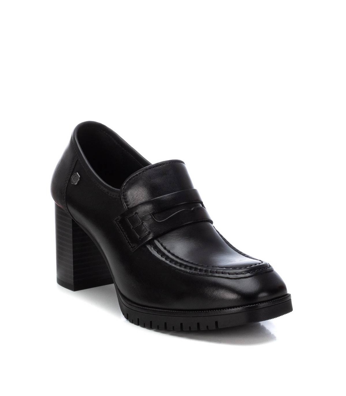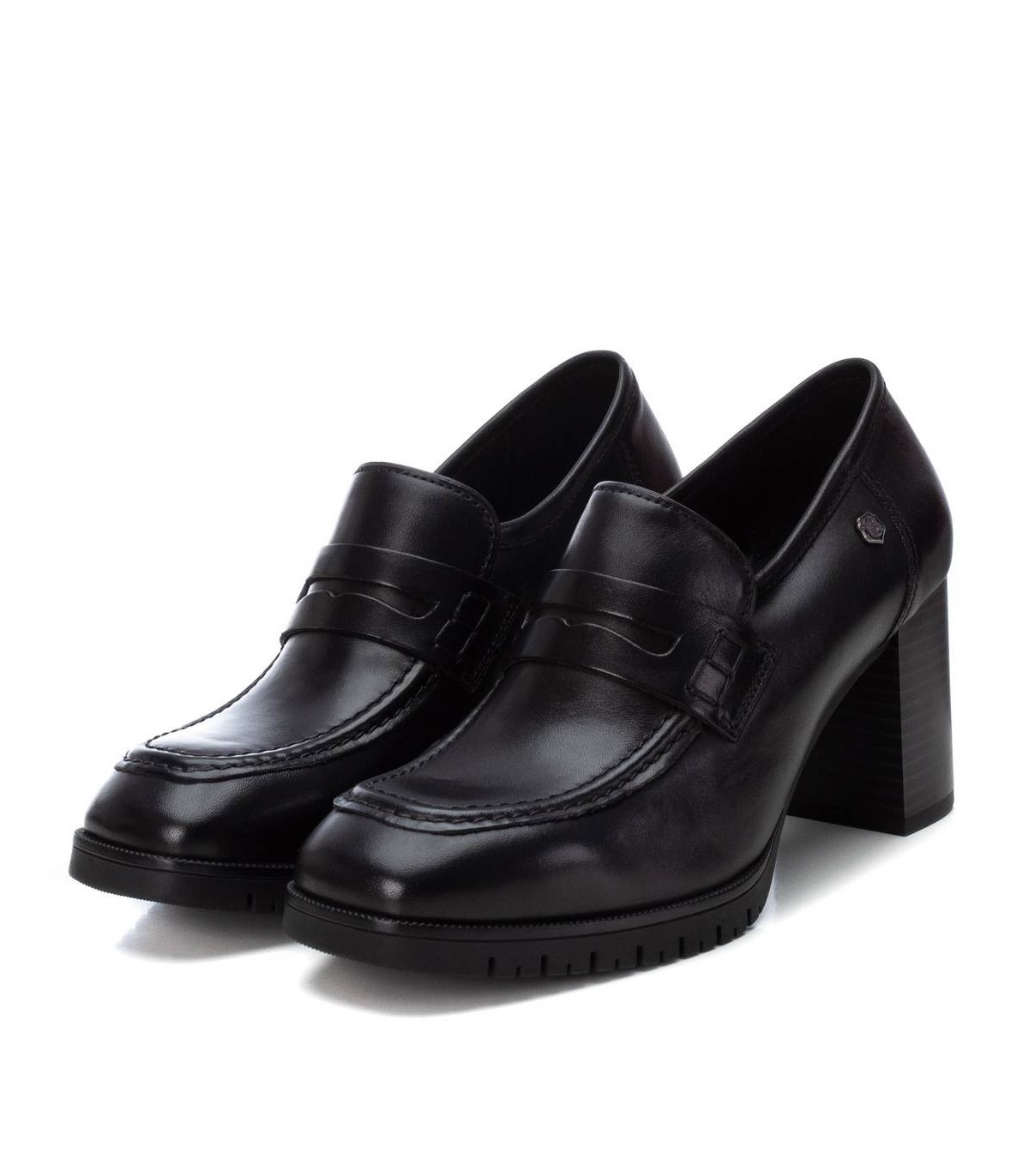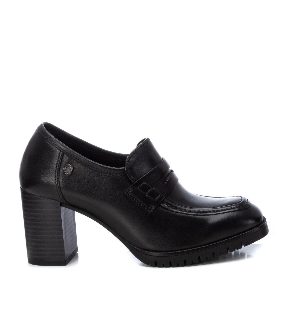 Mocasín de mujer, de la marca Carmela. Fabricado en piel de alta calidad. Diseño clásico con antifaz decorativo en el frente. Tacón de 8 cm y plataforma para mayor comodidad. Suela antideslizante.