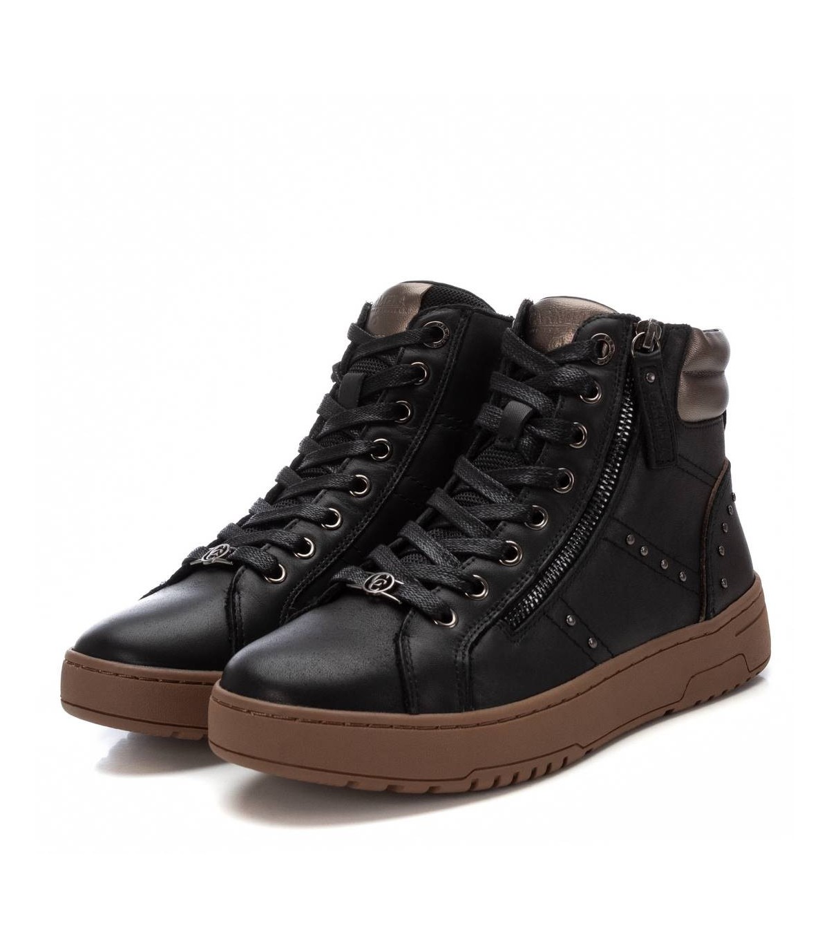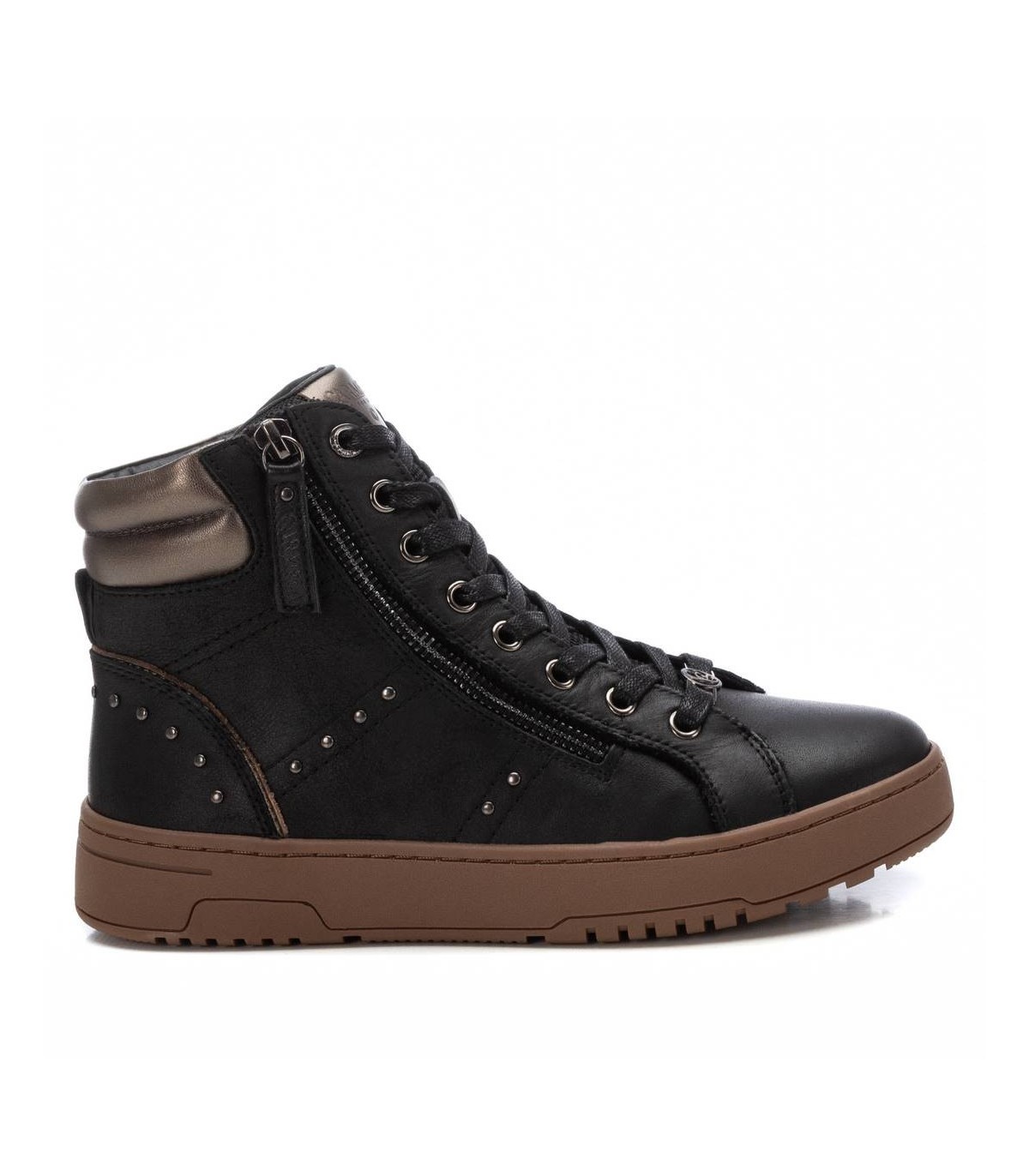 Botín deportivo de mujer, de la marca Carmela. Fabricado en piel de alta calidad. Cierre mediante cremallera lateral y cordones ajustables para mayor comodidad. Suela de goma antideslizante. Con plantilla extraíble.