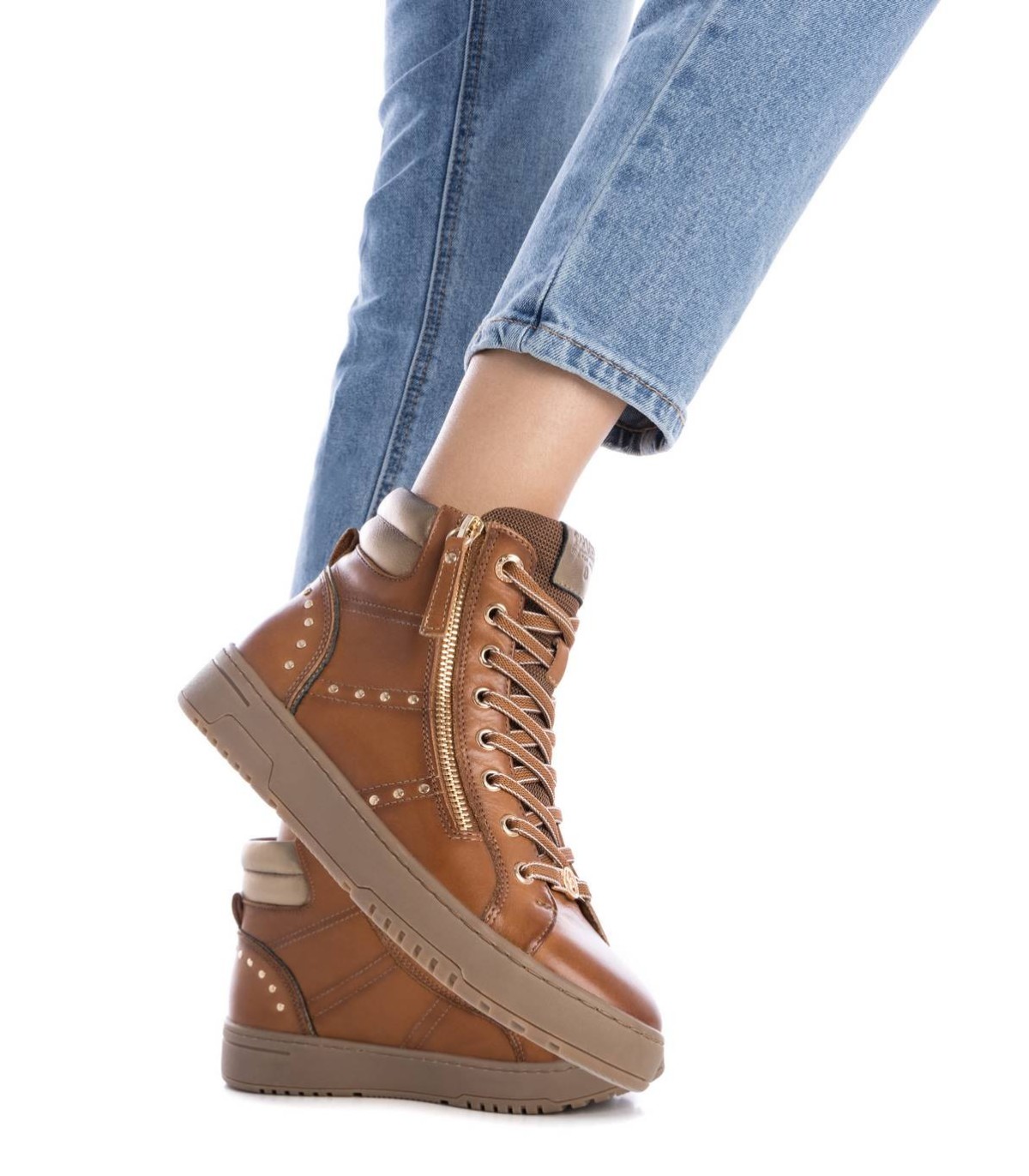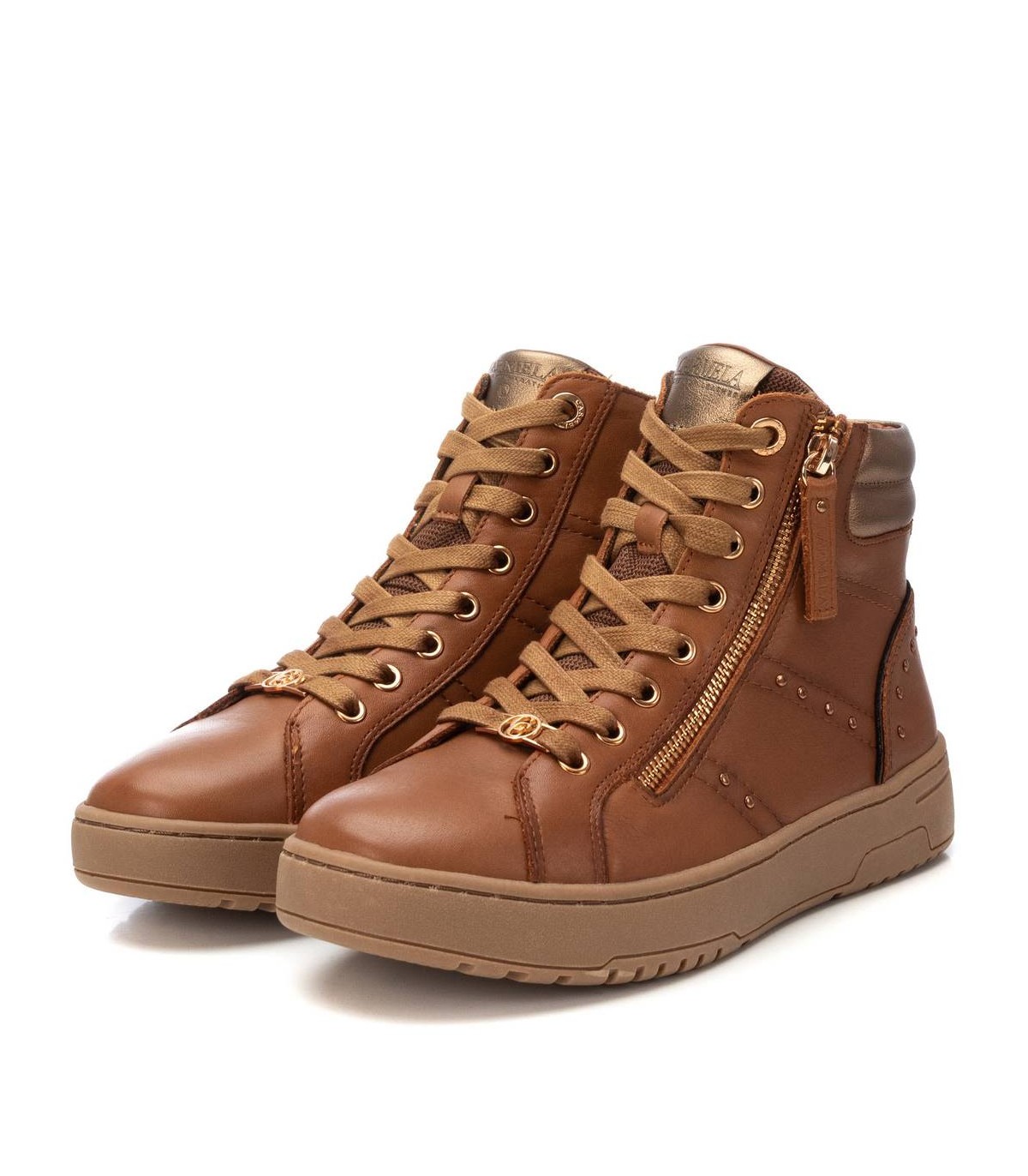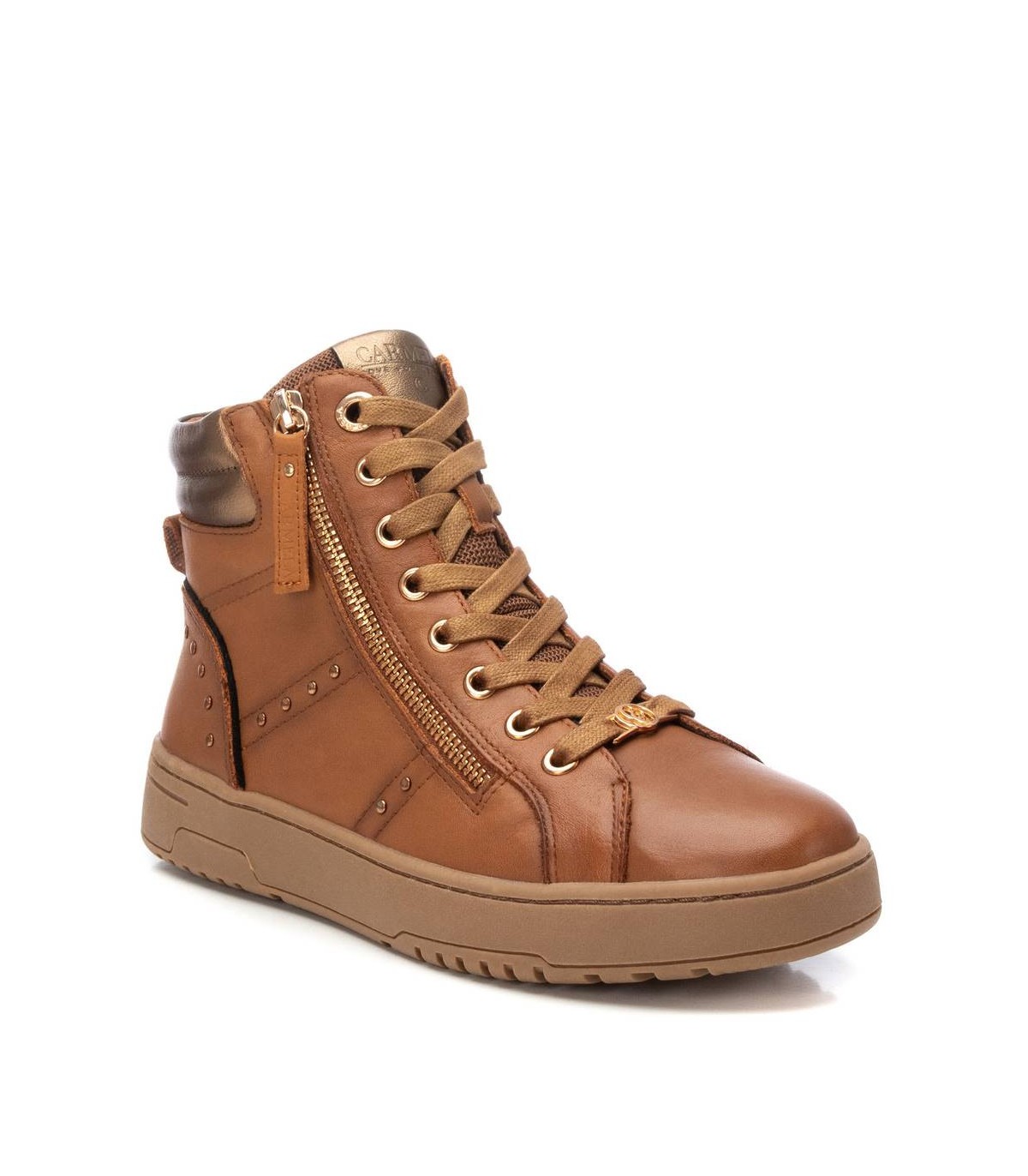 Botín deportivo de mujer, de la marca Carmela. Fabricado en piel de alta calidad. Cierre mediante cremallera lateral y cordones ajustables para mayor comodidad. Suela de goma antideslizante. Con plantilla extraíble.