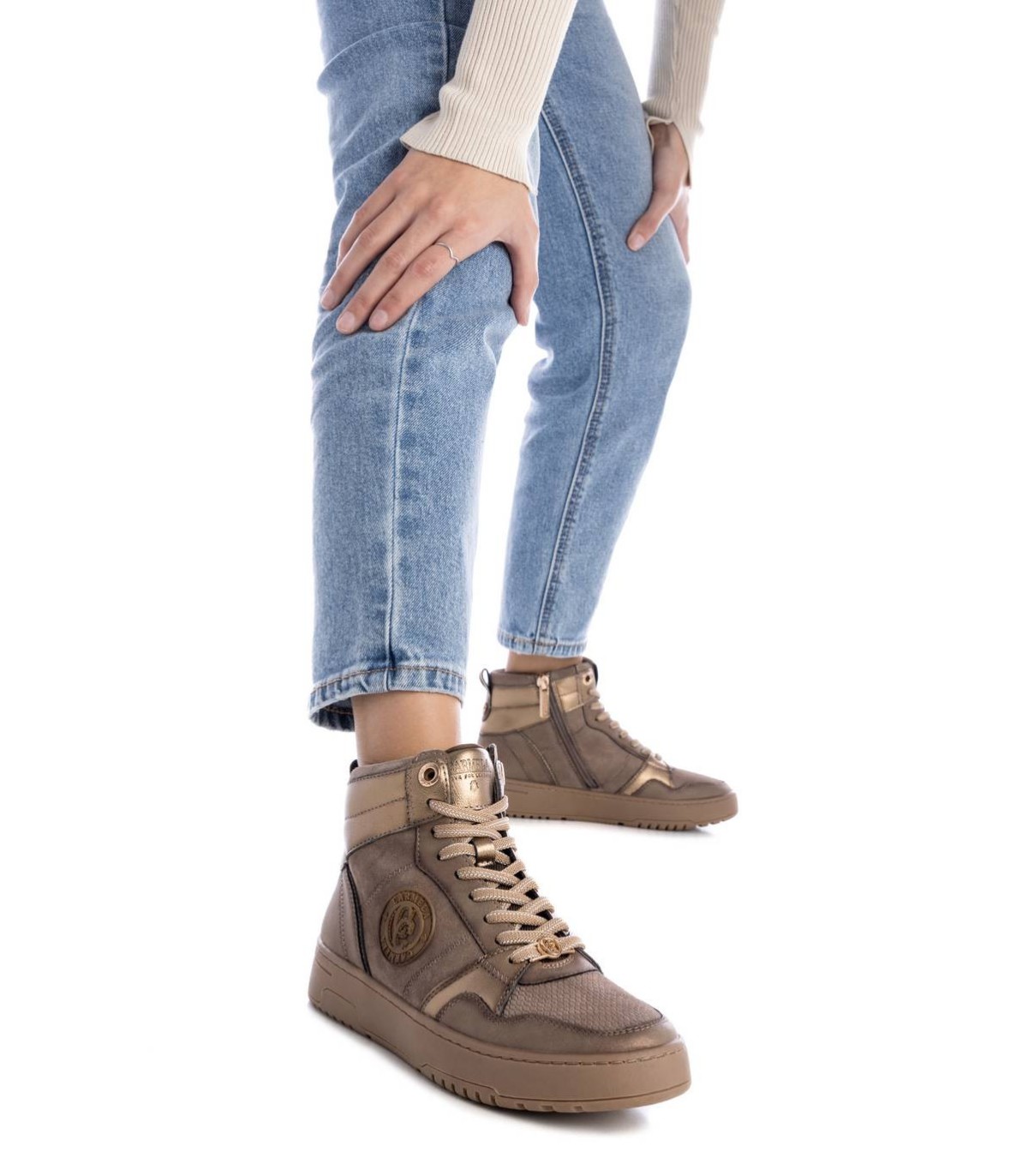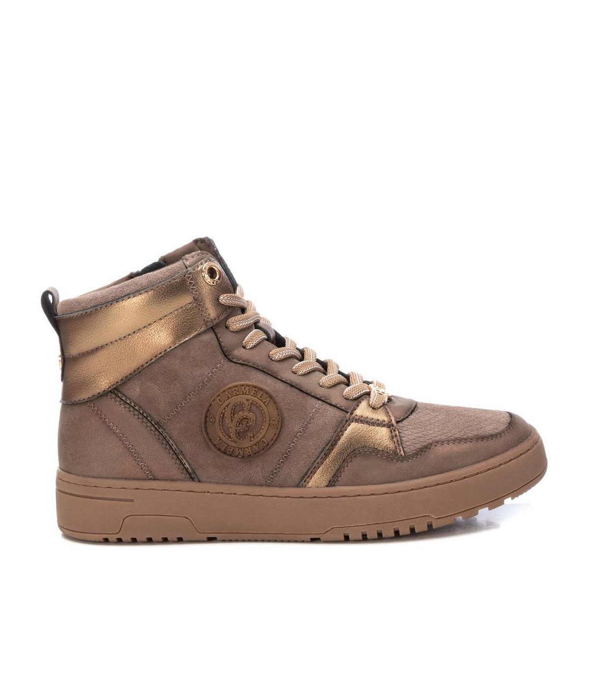 Botín deportivo de mujer, de la marca Carmela. Fabricado en piel de alta calidad. Cierre mediante cremallera lateral y cordones ajustables. Suela de goma antideslizante, para elevar tus looks de invierno. Con plantilla extraíble.
