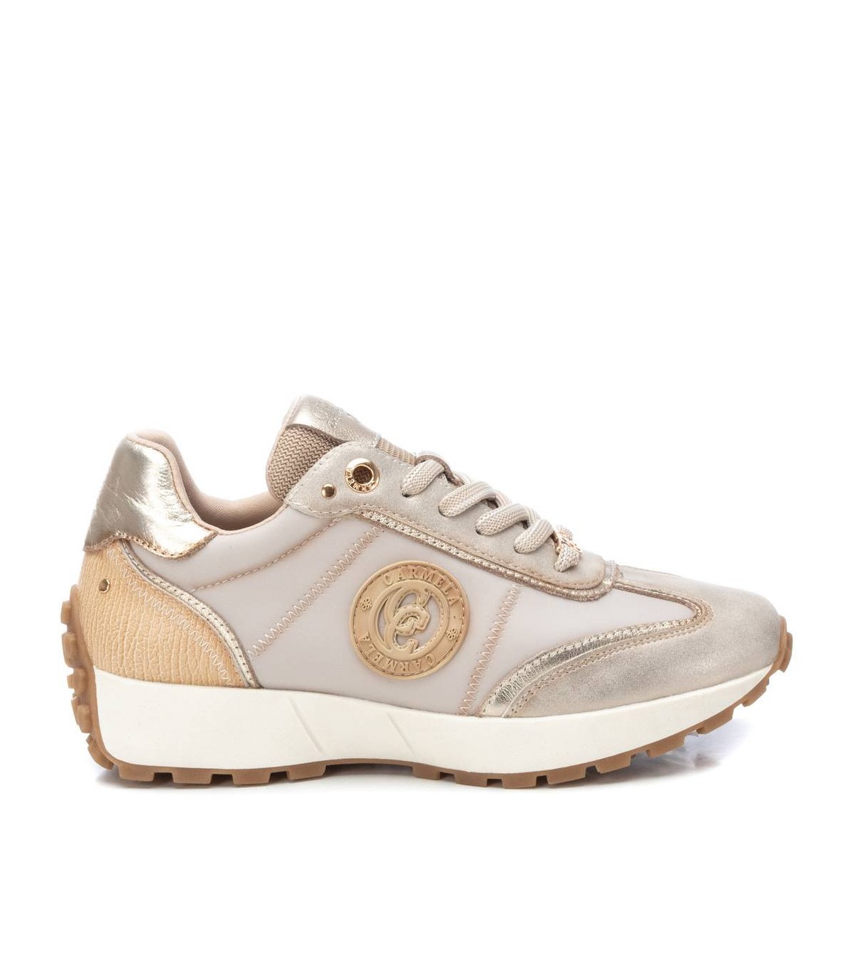 Zapatilla de mujer, de la marca Carmela. Fabricada en piel de alta calidad. Cierre mediante cordones ajustables. Suela en tendencia de goma antideslizante. Con plantilla extraíble.