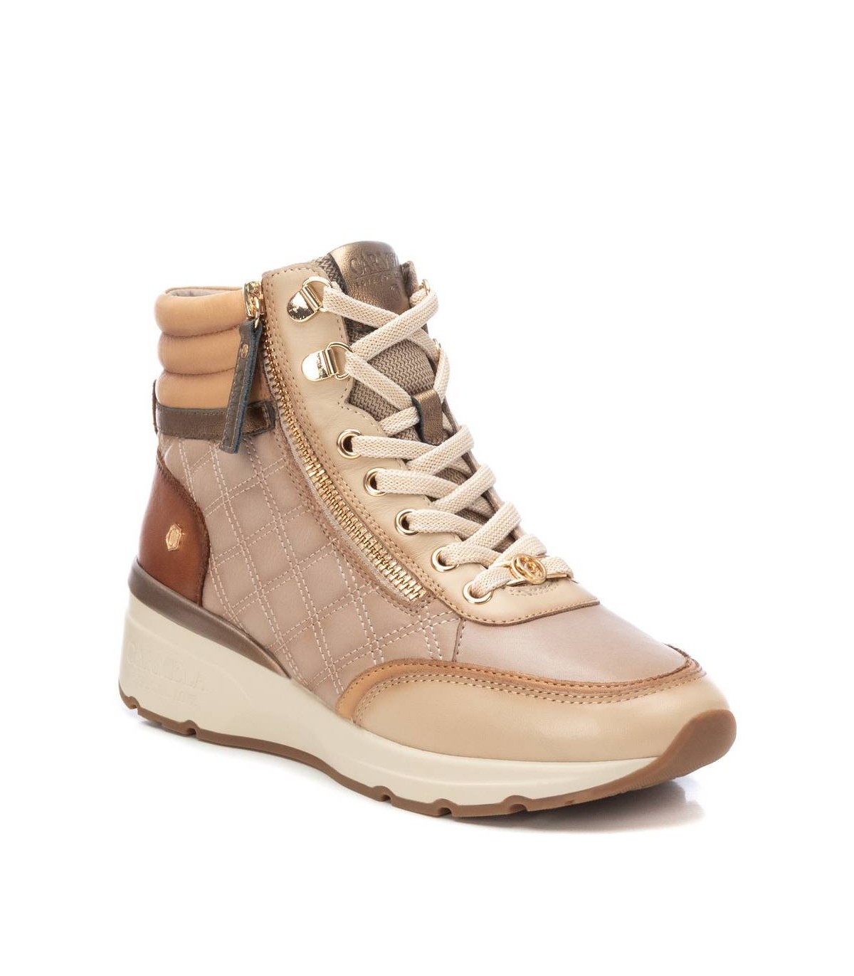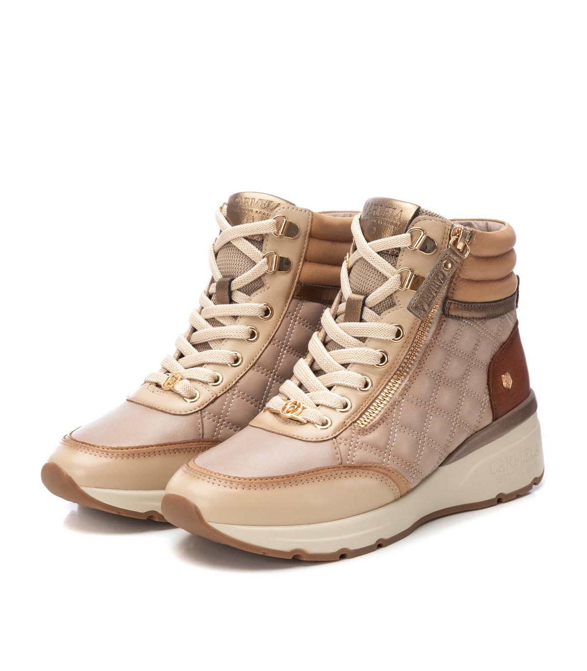 Botín deportivo de mujer, de la marca Carmela. Fabricada en piel de alta calidad. Cierre mediante cremallera lateral y cordones ajustables. Cómoda cuña de 4 cm con suela de goma antideslizante. Con plantilla extraíble.