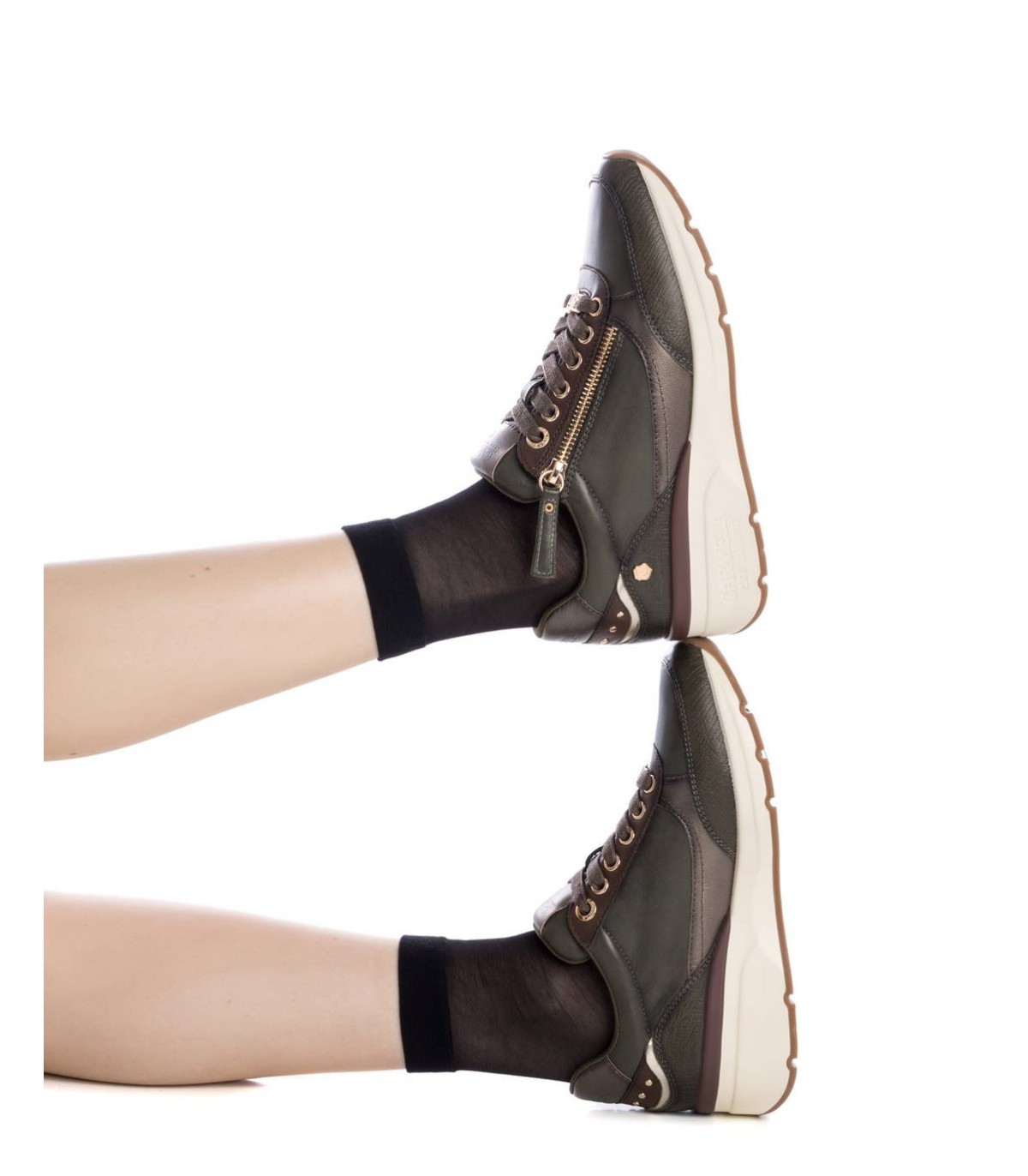 Zapatilla de mujer, de la marca Carmela. Fabricada en piel de alta calidad. Cierre mediante cremallera lateral y cordones ajustables. Sencilla y elegante, un básico para tu armario. Suela de goma con volumen antideslizante. Con plantilla extraíble.