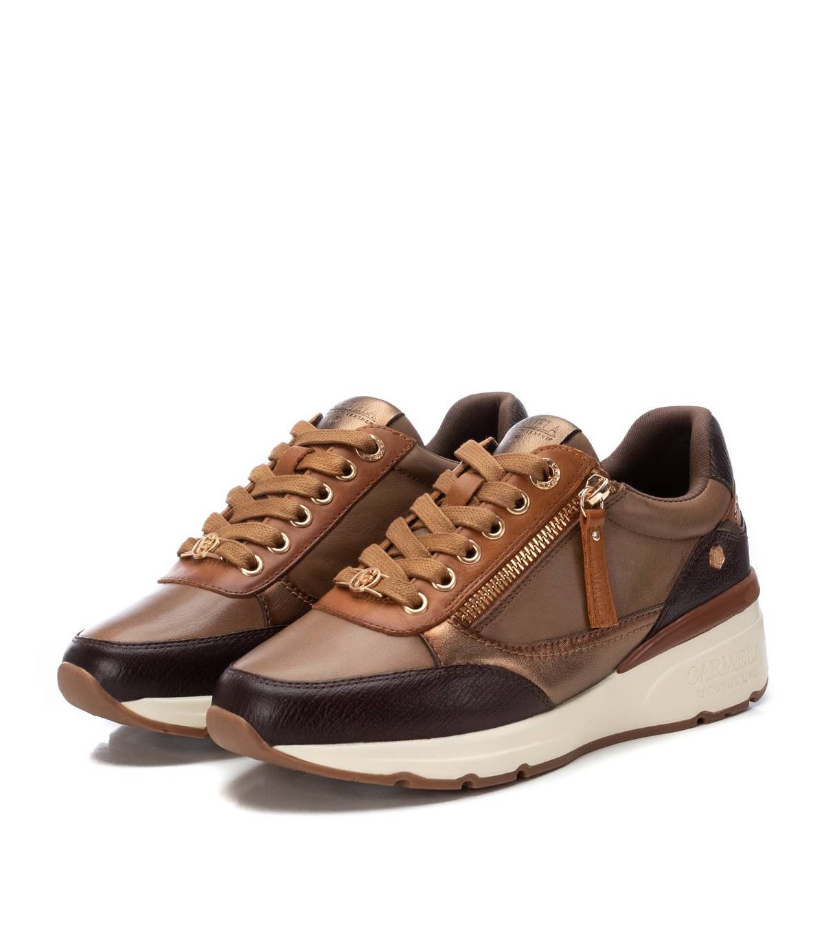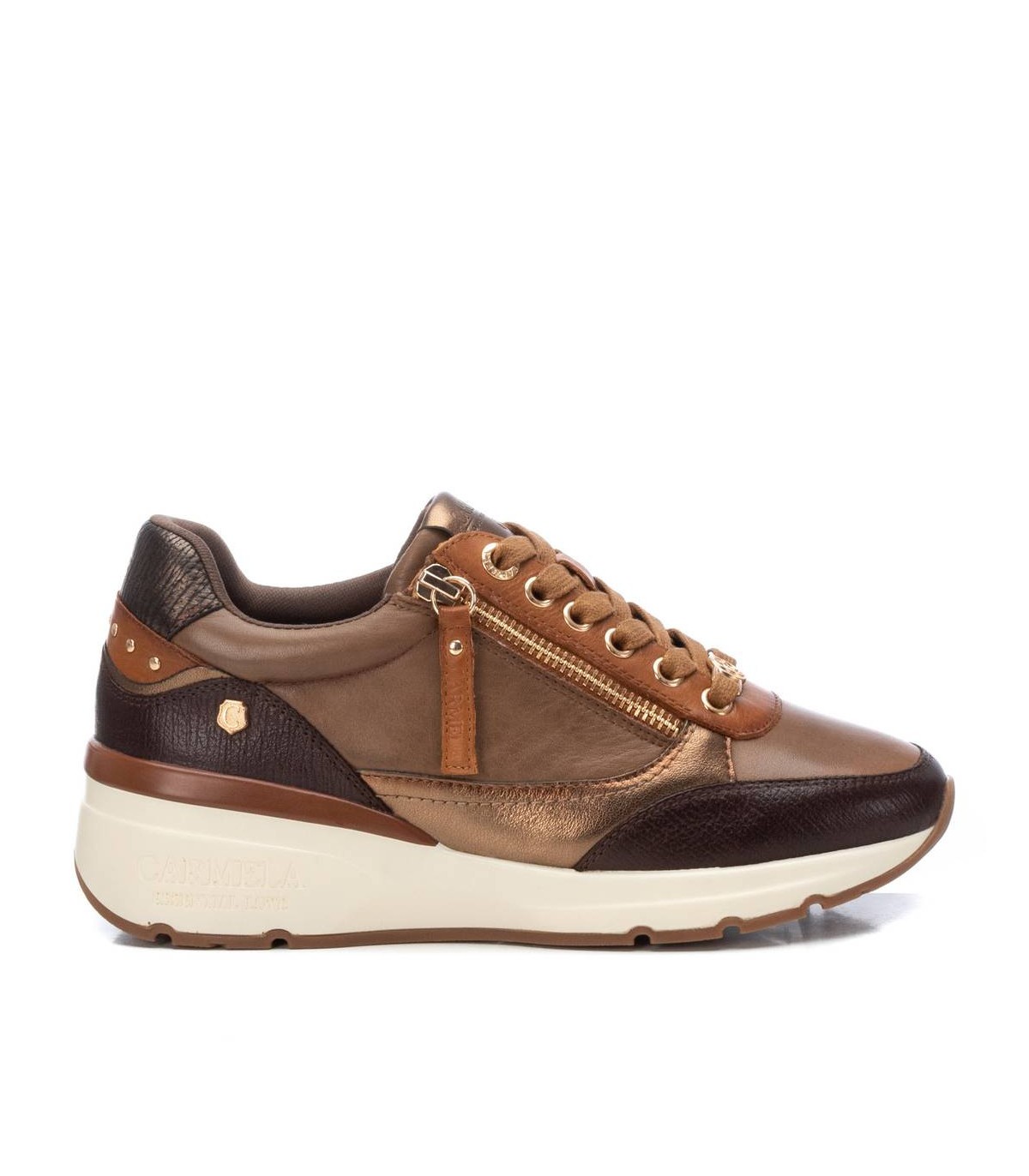 Zapatilla de mujer, de la marca Carmela. Fabricada en piel de alta calidad. Cierre mediante cremallera lateral y cordones ajustables. Sencilla y elegante, un básico para tu armario. Suela de goma con volumen antideslizante. Con plantilla extraíble.