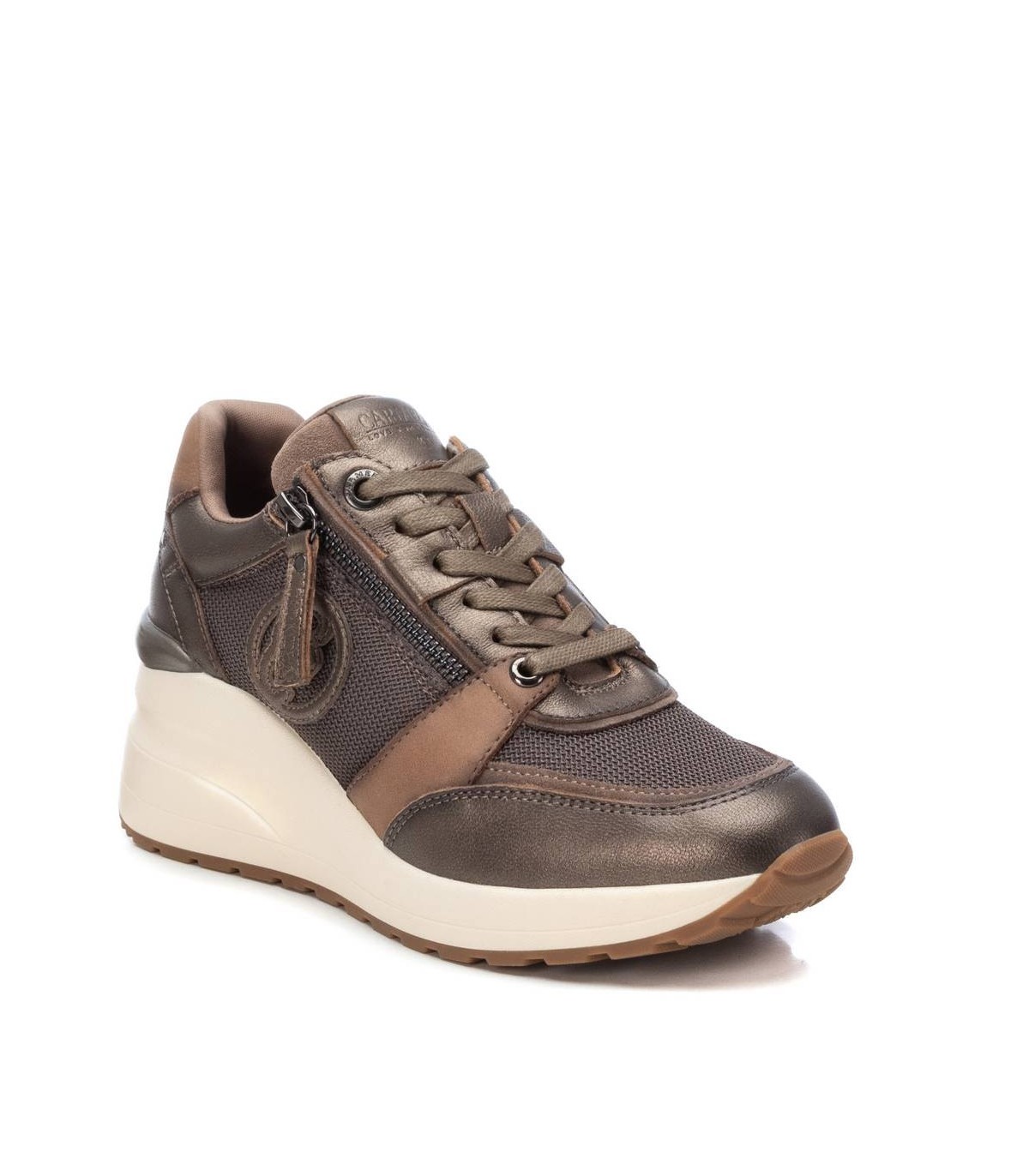 Zapatilla de mujer, de la marca de Carmela. Fabricado en piel de alta calidad. Cierre mediante cremallera lateral y cordones ajustables. Detalles metalizados. Cuña de 6 cm. Suela de goma antideslizante. Con plantilla extraíble.