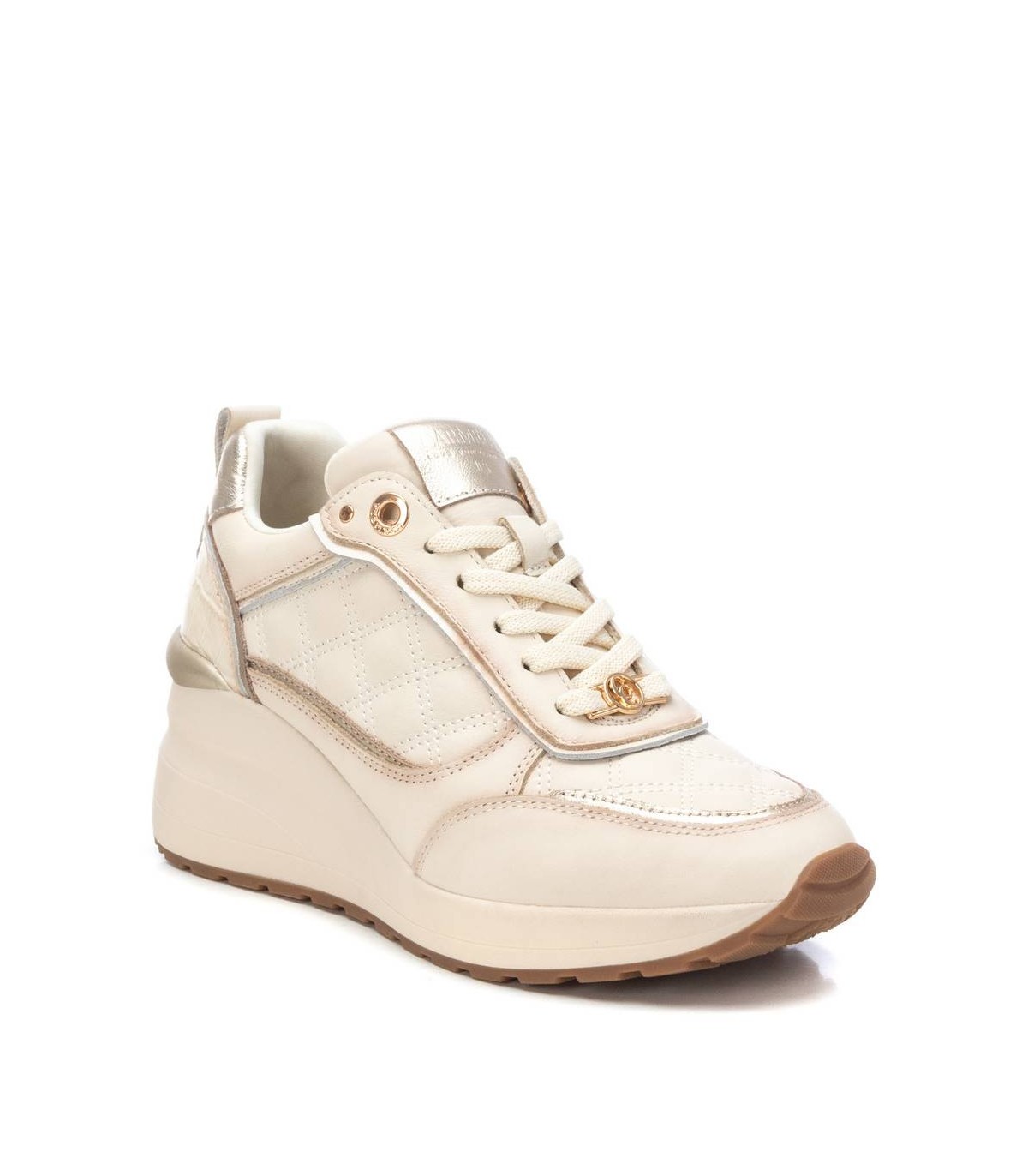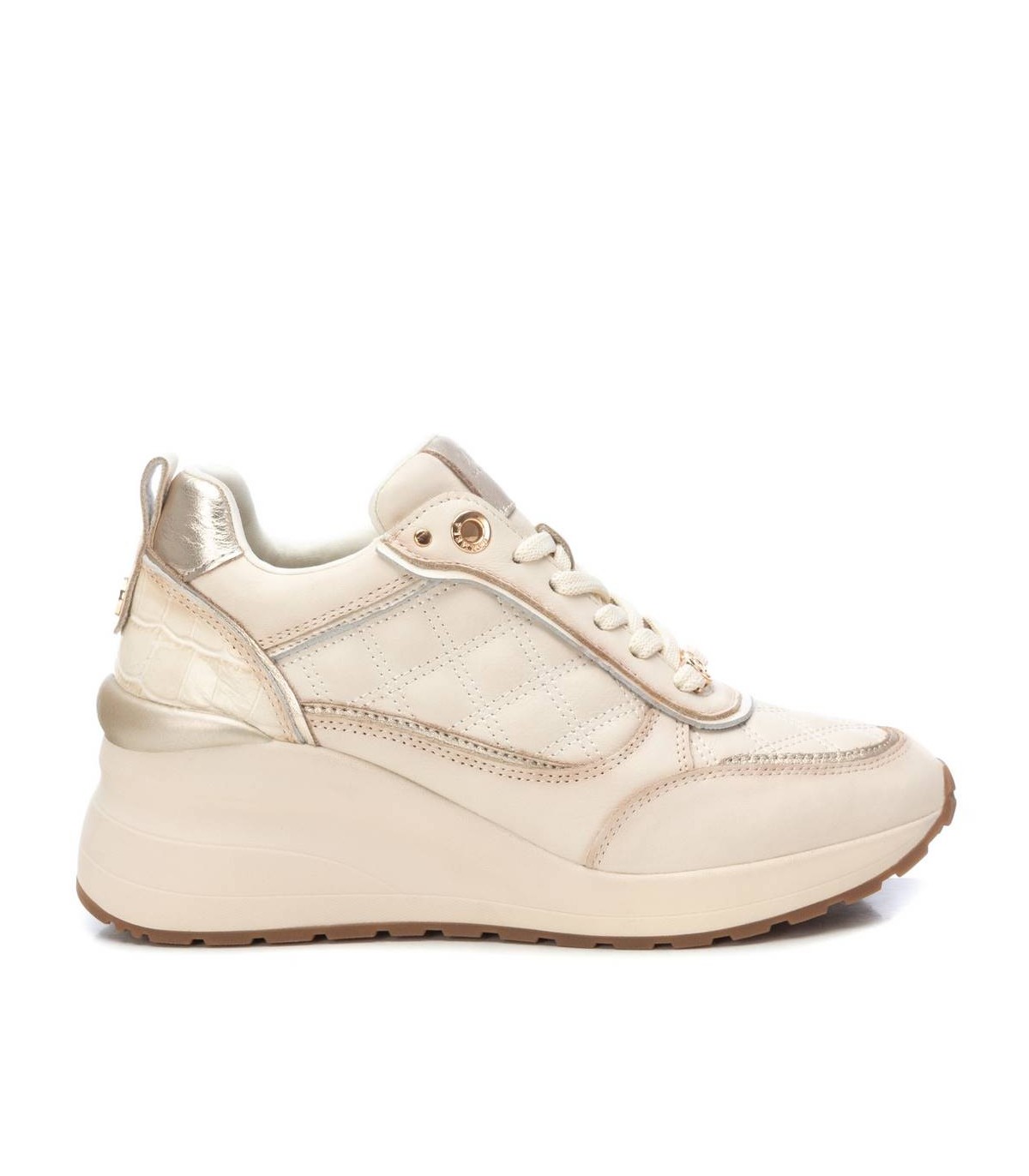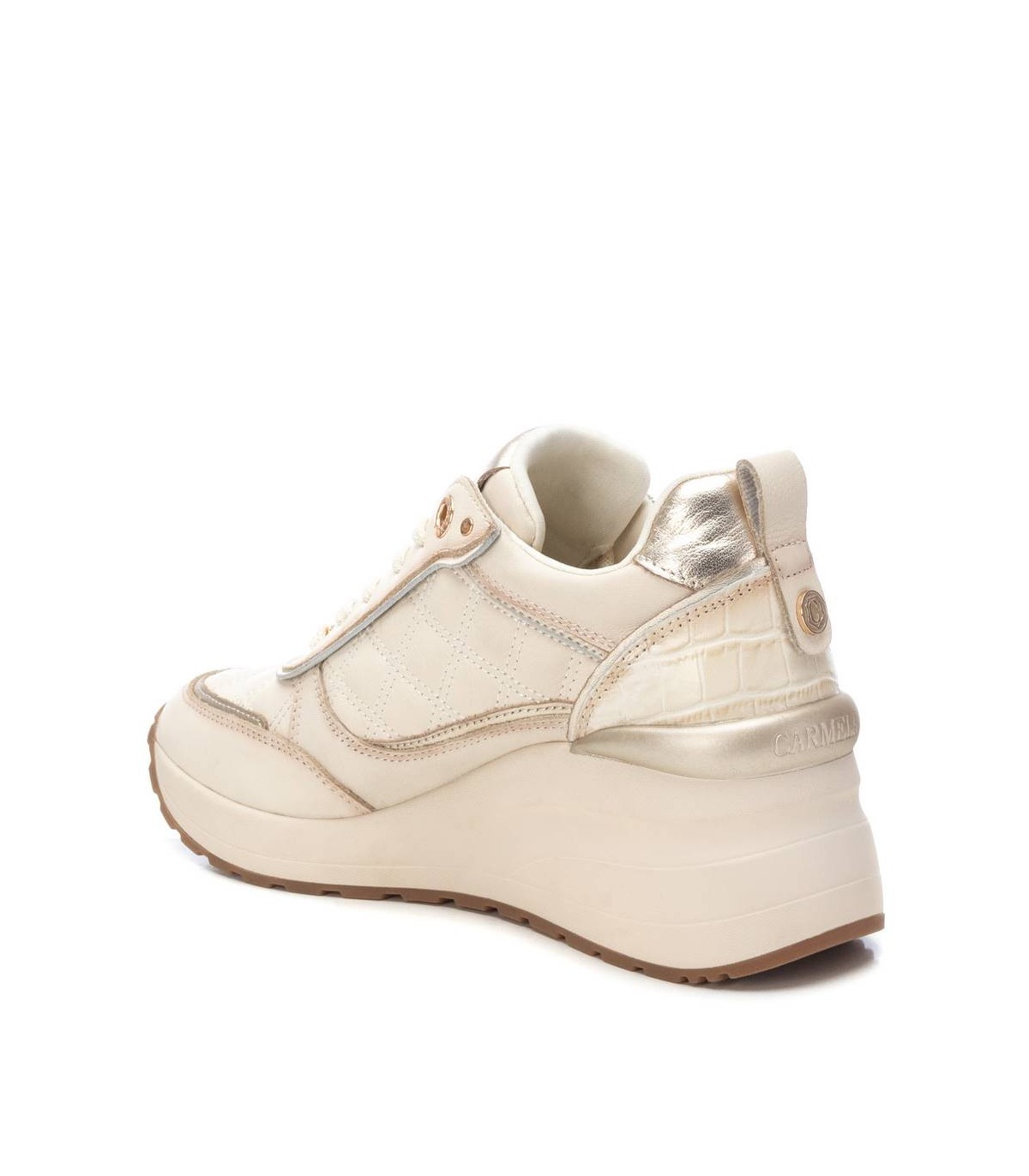 Zapatilla de mujer, de la marca de Carmela. Fabricado en piel de alta calidad. Cierre mediante cordones ajustables. Detalles metalizados. Cuña de 6 cm. Suela de goma antideslizante. Con plantilla extraíble.