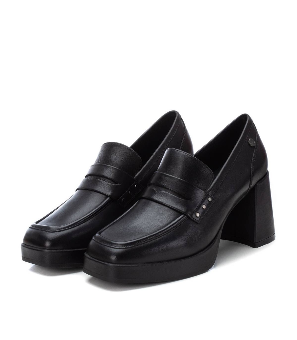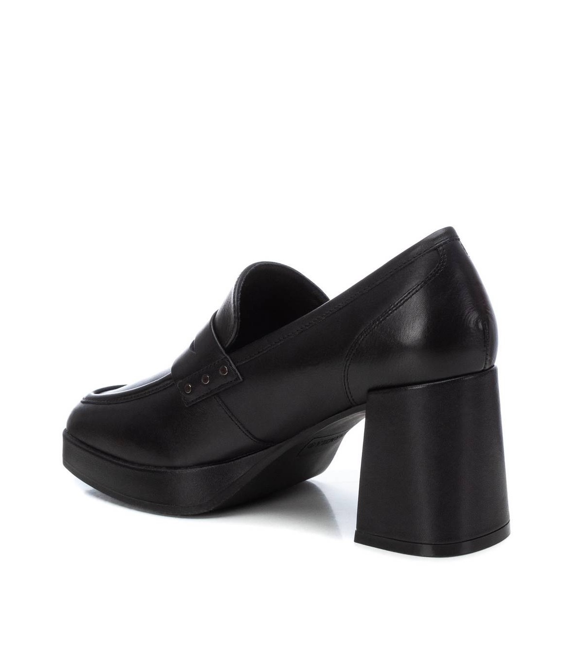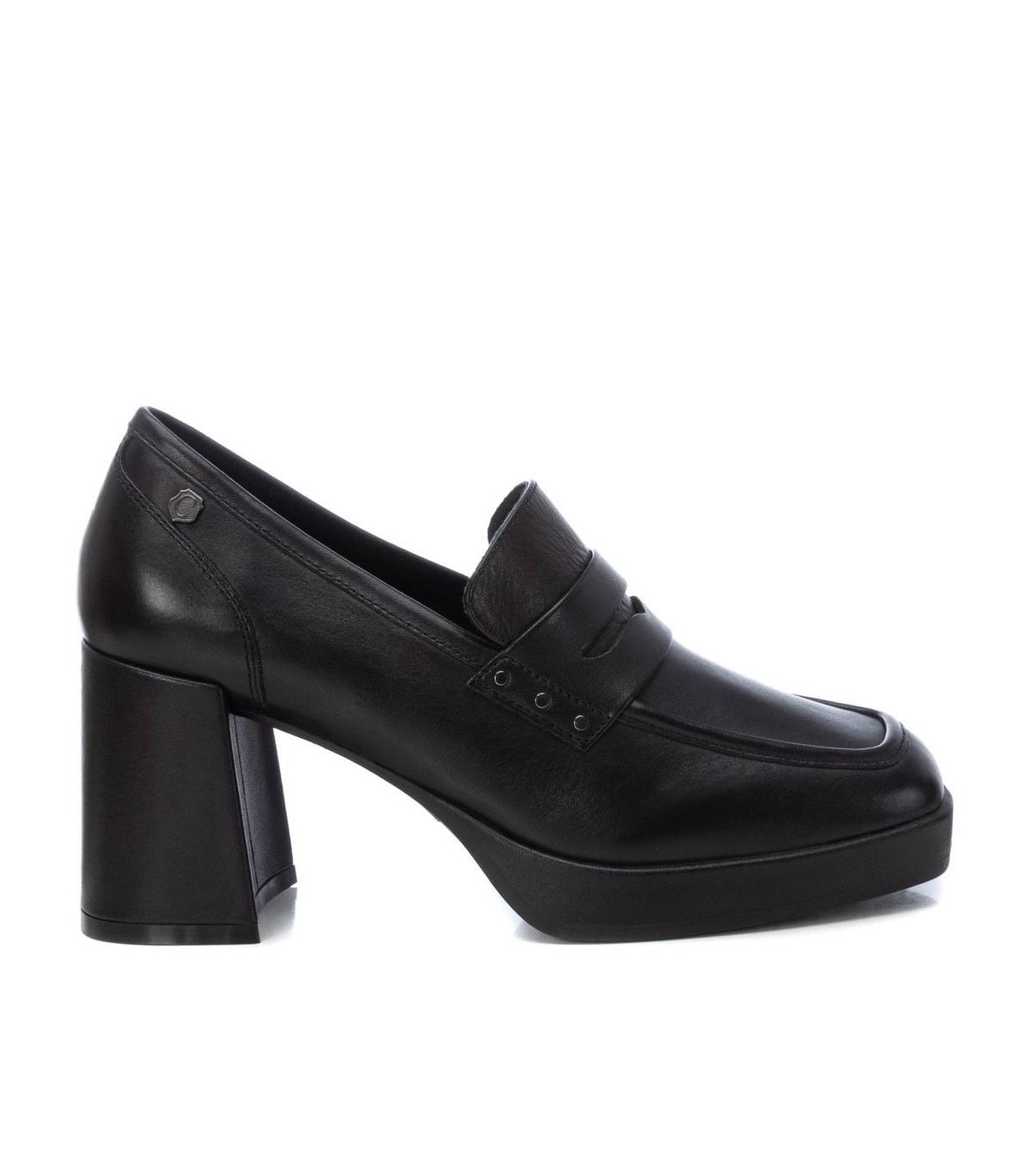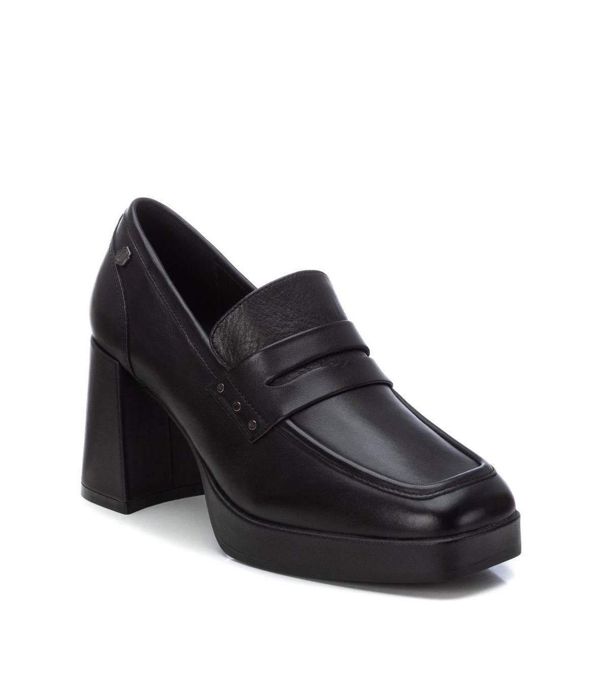 Mocasín de mujer, de la marca Carmela. Fabricado en piel de alta calidad. Con antifaz decorativo. Estiloso. Tacón al tono, suela de goma antideslizante.