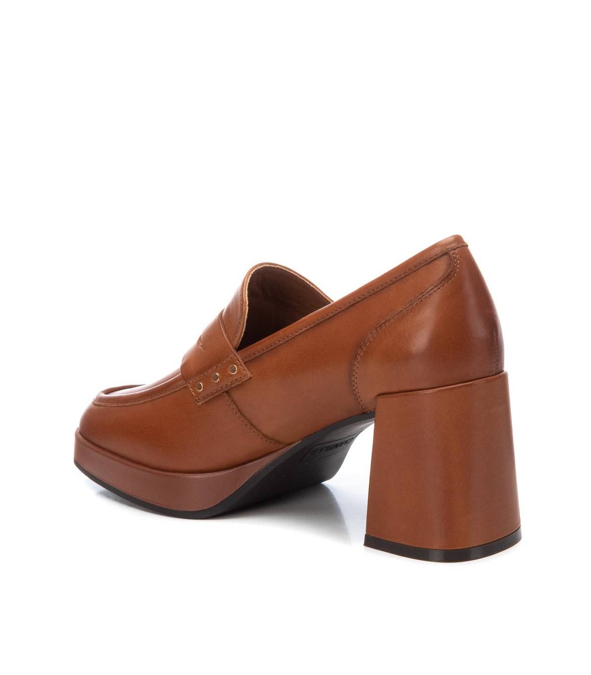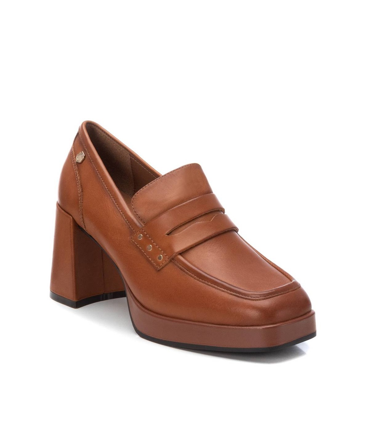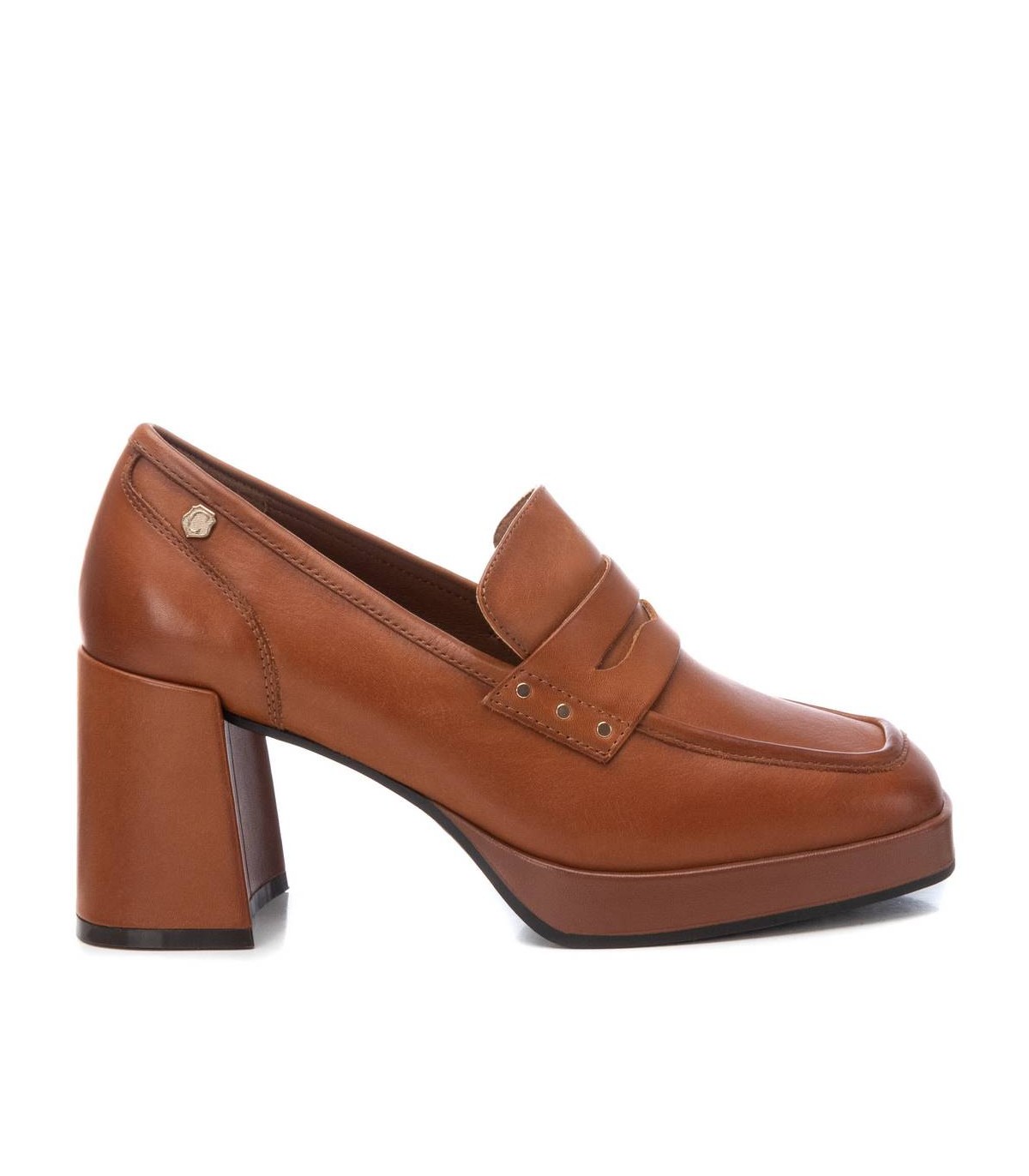 Mocasín de mujer, de la marca Carmela. Fabricado en piel de alta calidad. Con antifaz decorativo. Estiloso. Tacón al tono, suela de goma antideslizante.