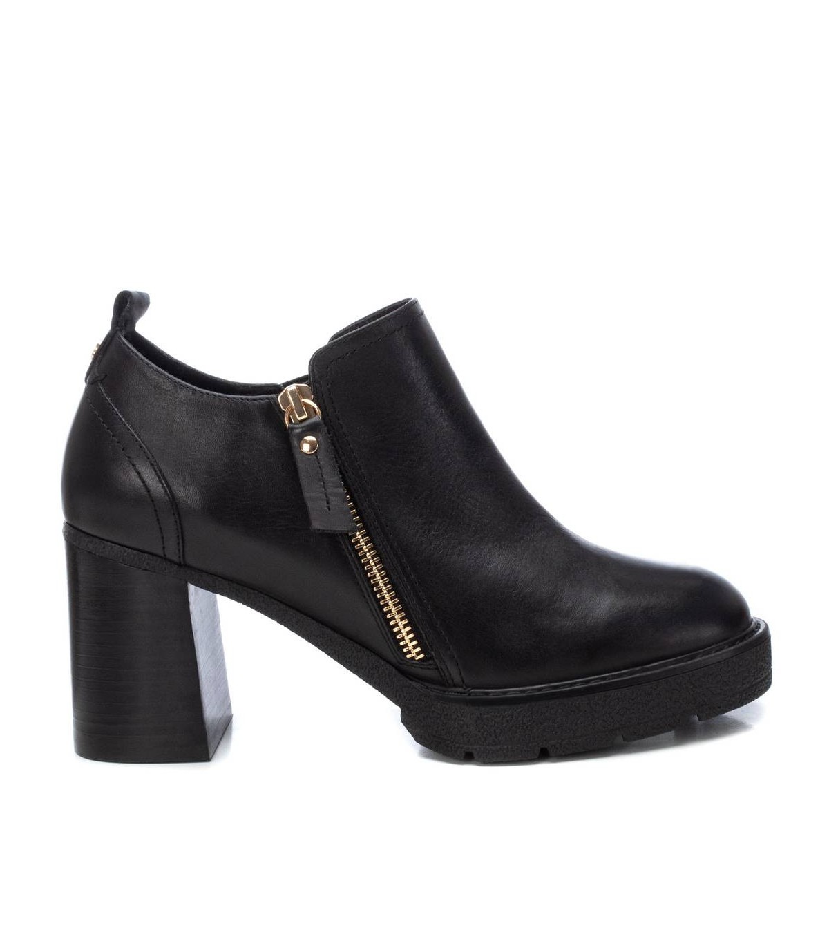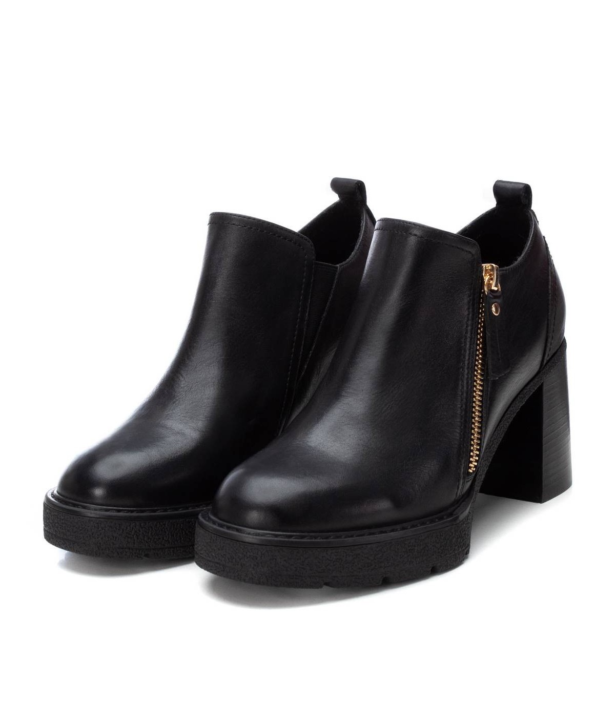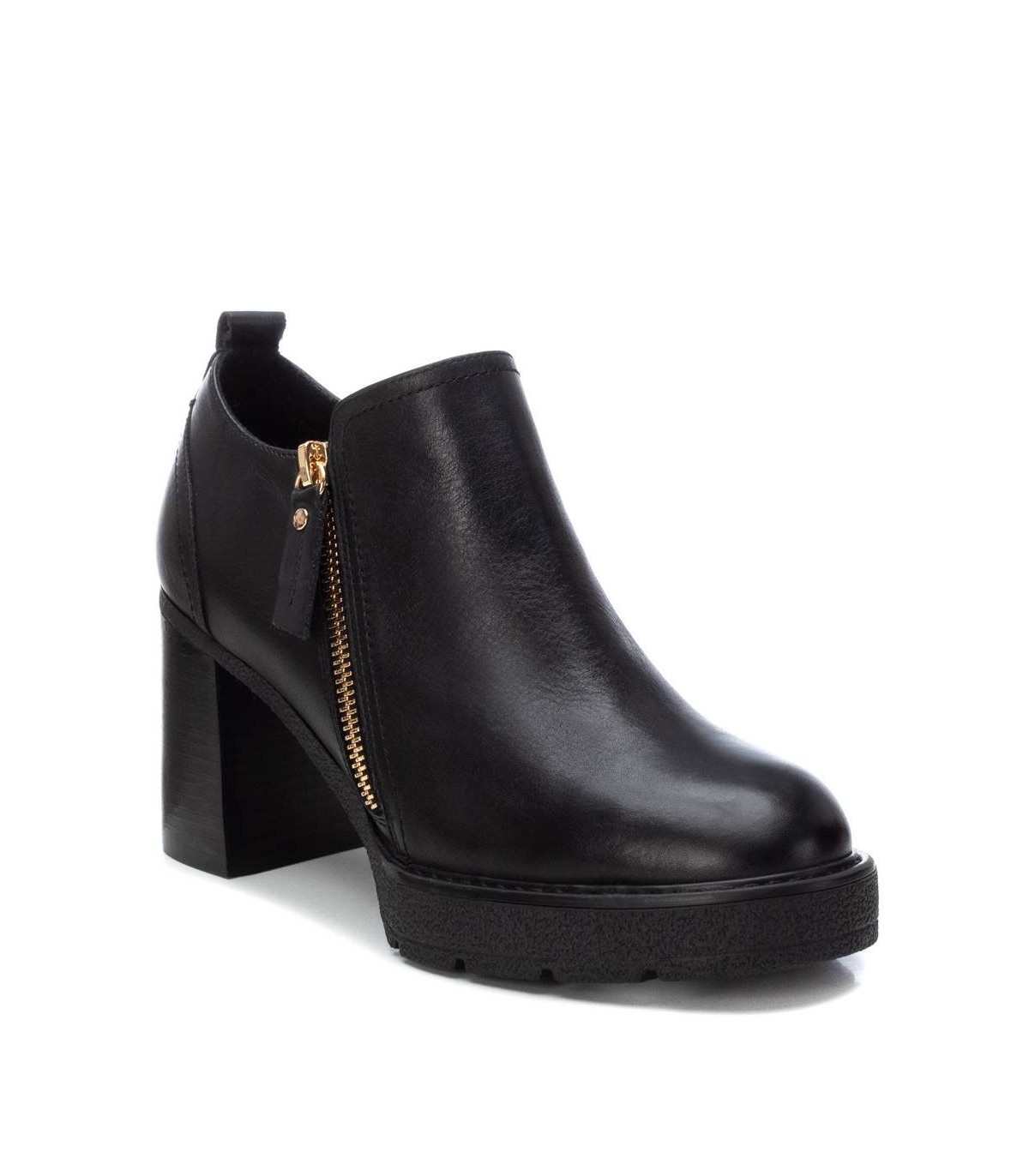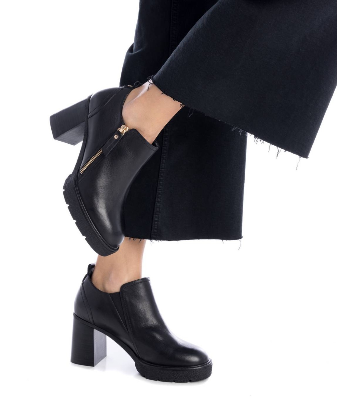 Botín de mujer, de la marca Carmela. Fabricado en piel de alta calidad. Cierre mediante cremallera lateral. Tacón ancho de 8 cm y plataforma para mayor comodidad. Suela antideslizante.