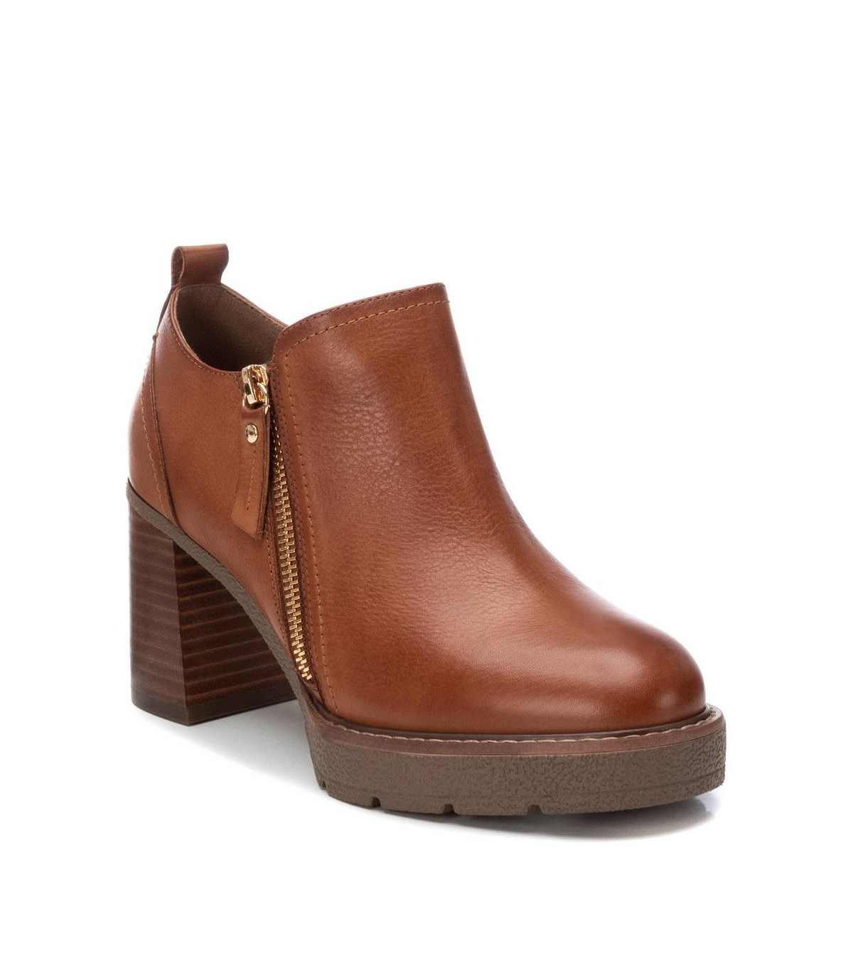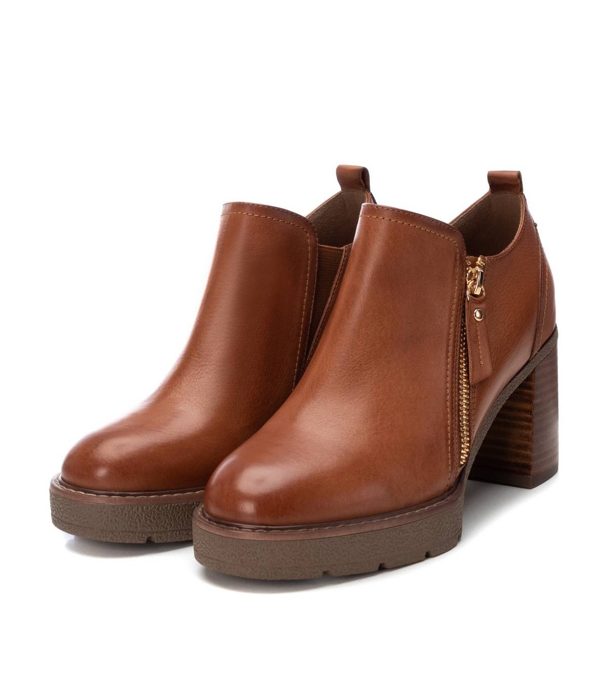 Botín de mujer, de la marca Carmela. Fabricado en piel de alta calidad. Cierre mediante cremallera lateral. Tacón ancho de 8 cm y plataforma para mayor comodidad. Suela antideslizante.