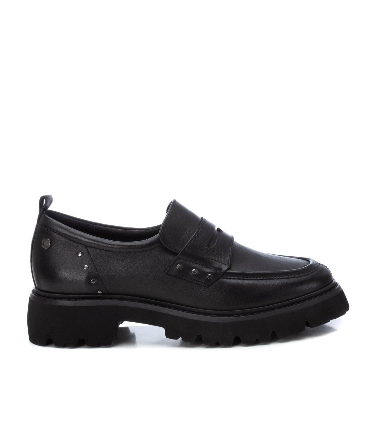 Mocasín de mujer, de la marca Carmela. Fabricado en piel de alta calidad. Detalle antifaz en el frente. Suela gruesa antideslizante y cómoda planta.