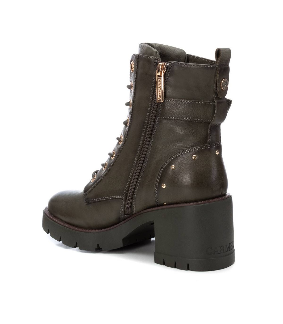 Botín de mujer, de la marca Carmela. Fabricado en piel de alta calidad. Cierre mediante cremallera lateral, cordones ajustables para mayor comodidad. Tirador trasero para mayor calce. Tirador trasero. Suela gruesa y antideslizante y tacón de 7 cm.