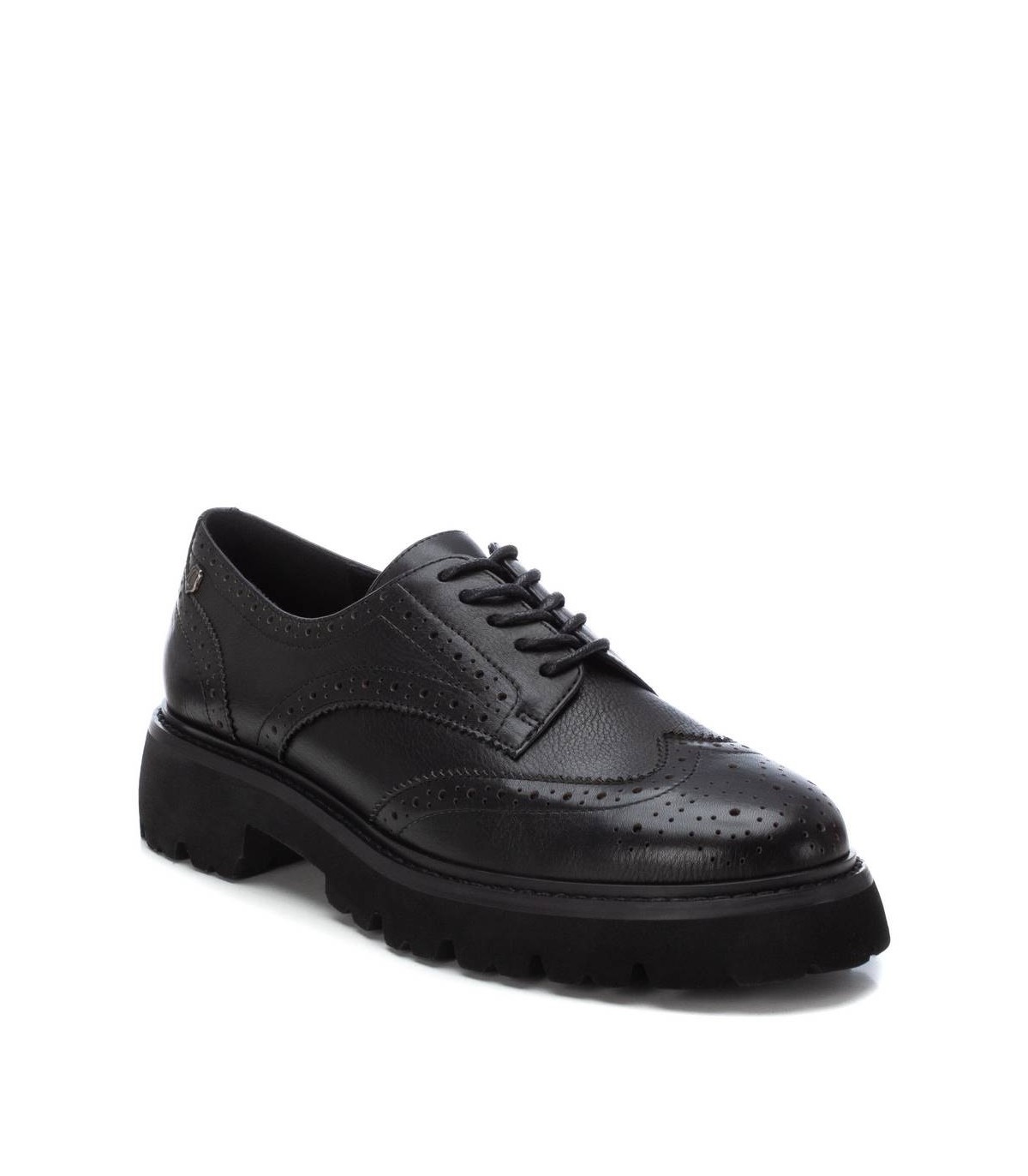 Mocasín de mujer, de la marca Carmela. Fabricado en piel de alta calidad. Calados decorativos. Suela gruesa y dentada antideslizante. Cordones ajustables. Un básico de invierno.