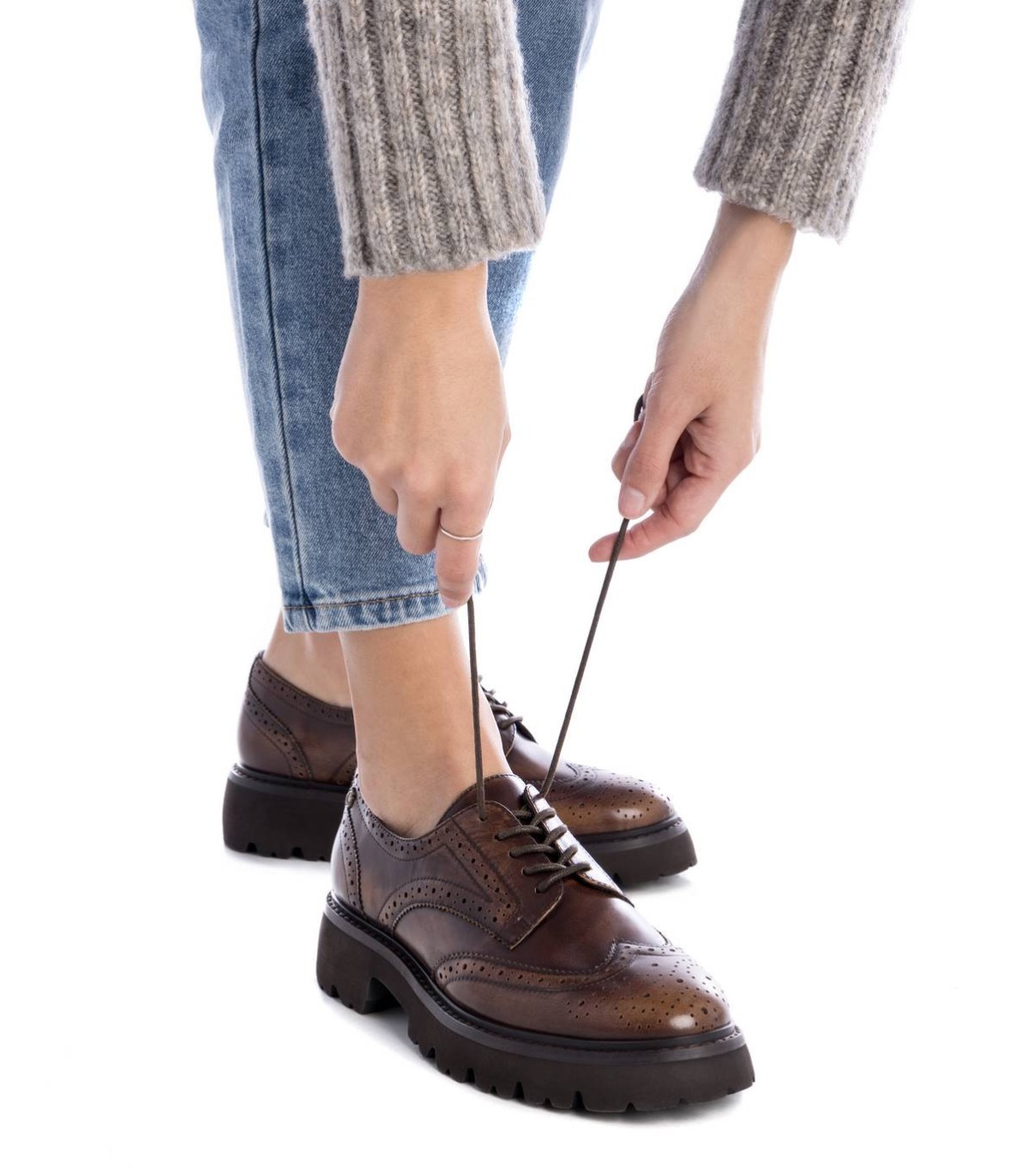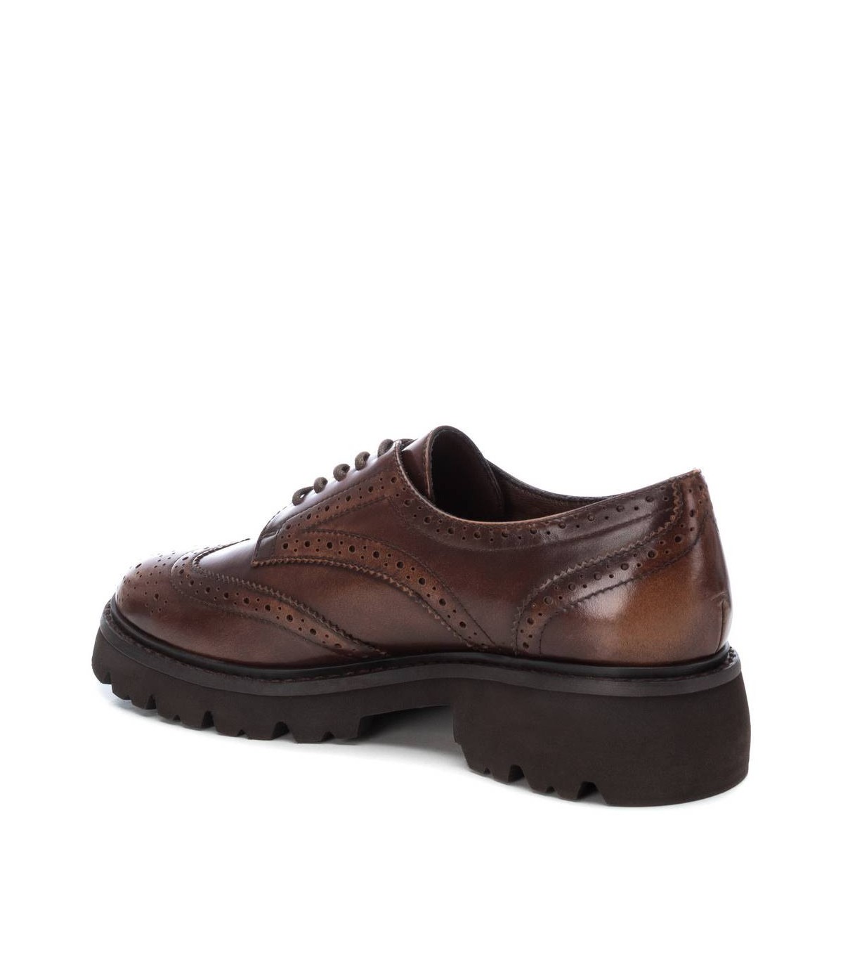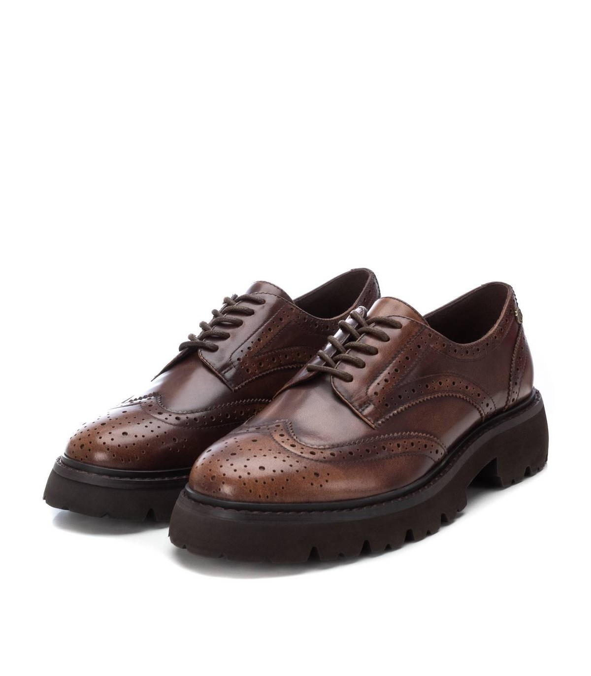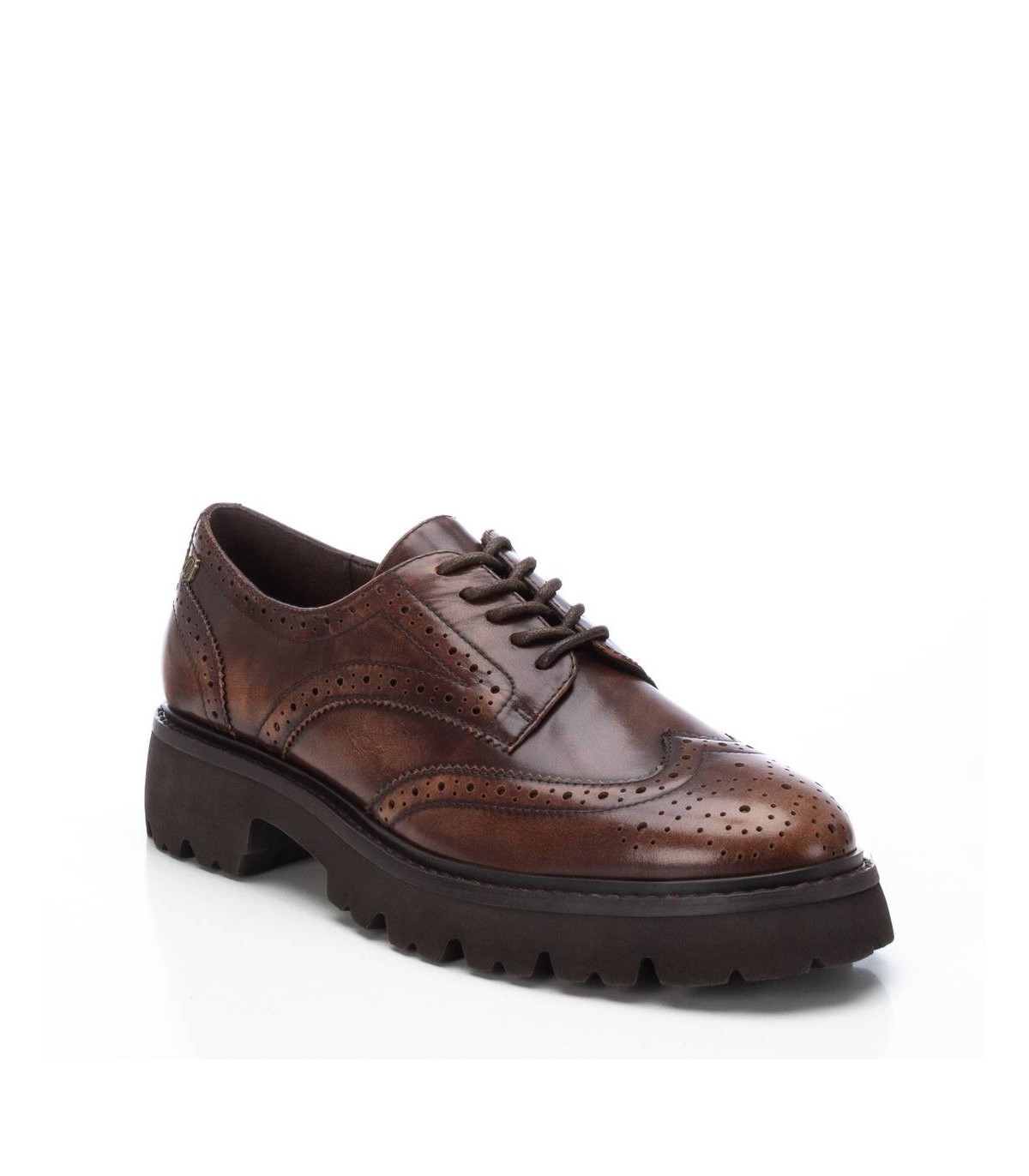 Mocasín de mujer, de la marca Carmela. Fabricado en piel de alta calidad. Calados decorativos. Suela gruesa y dentada antideslizante. Cordones ajustables. Un básico de invierno.