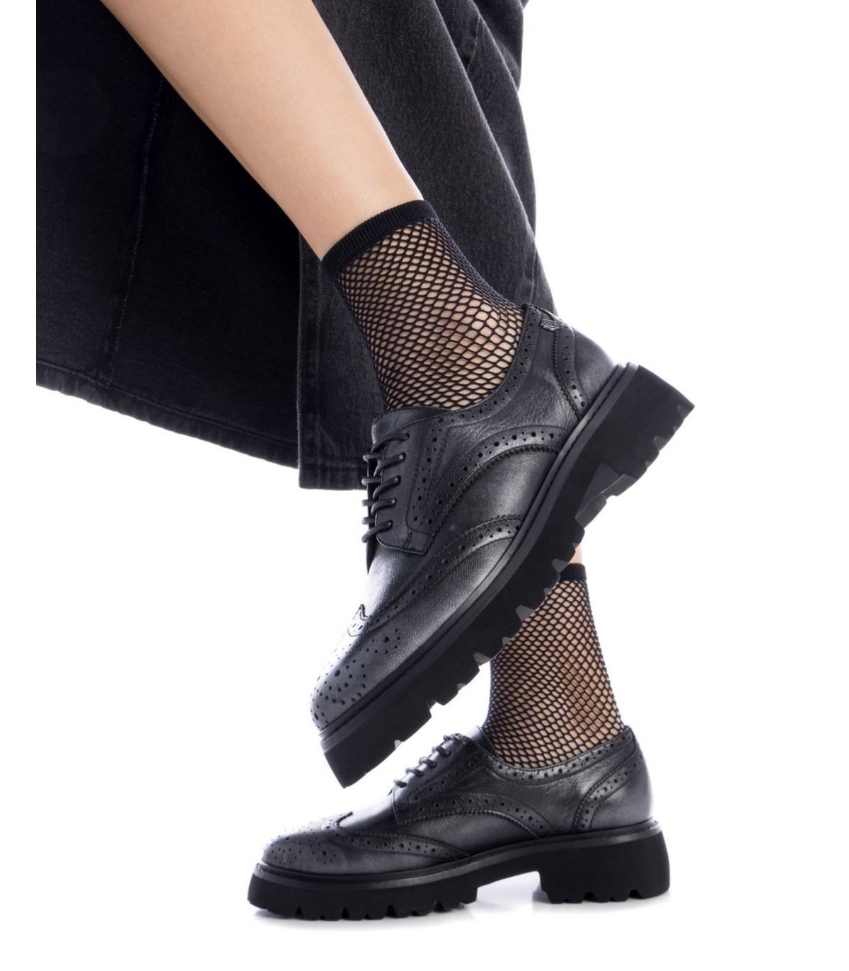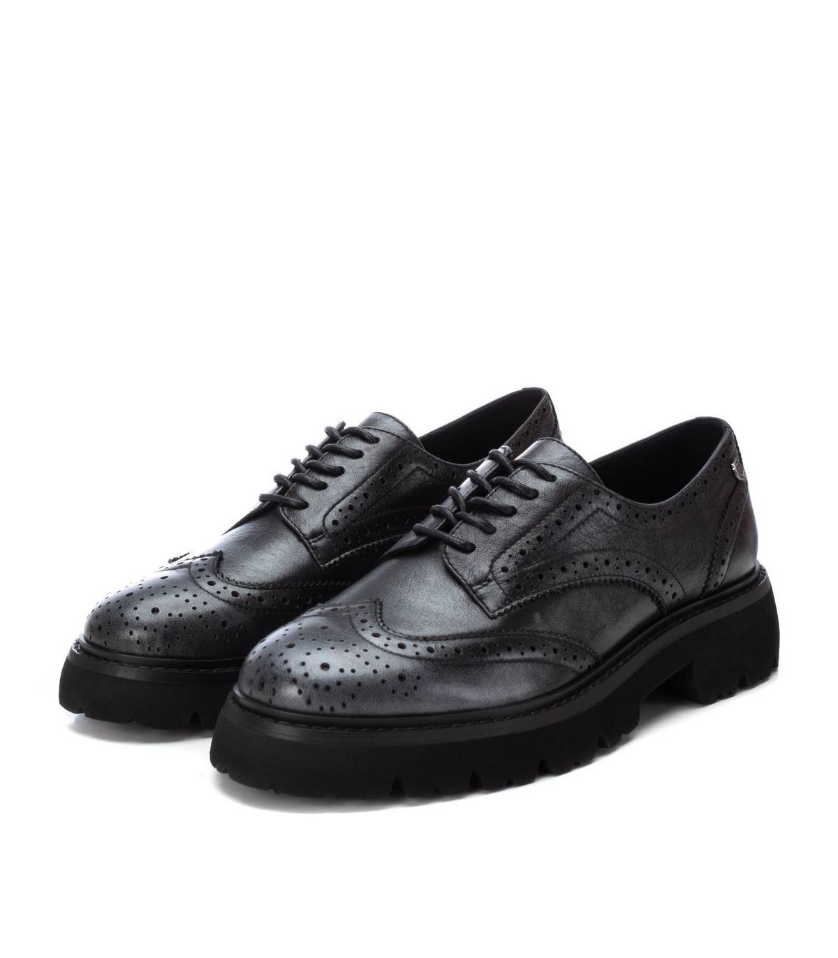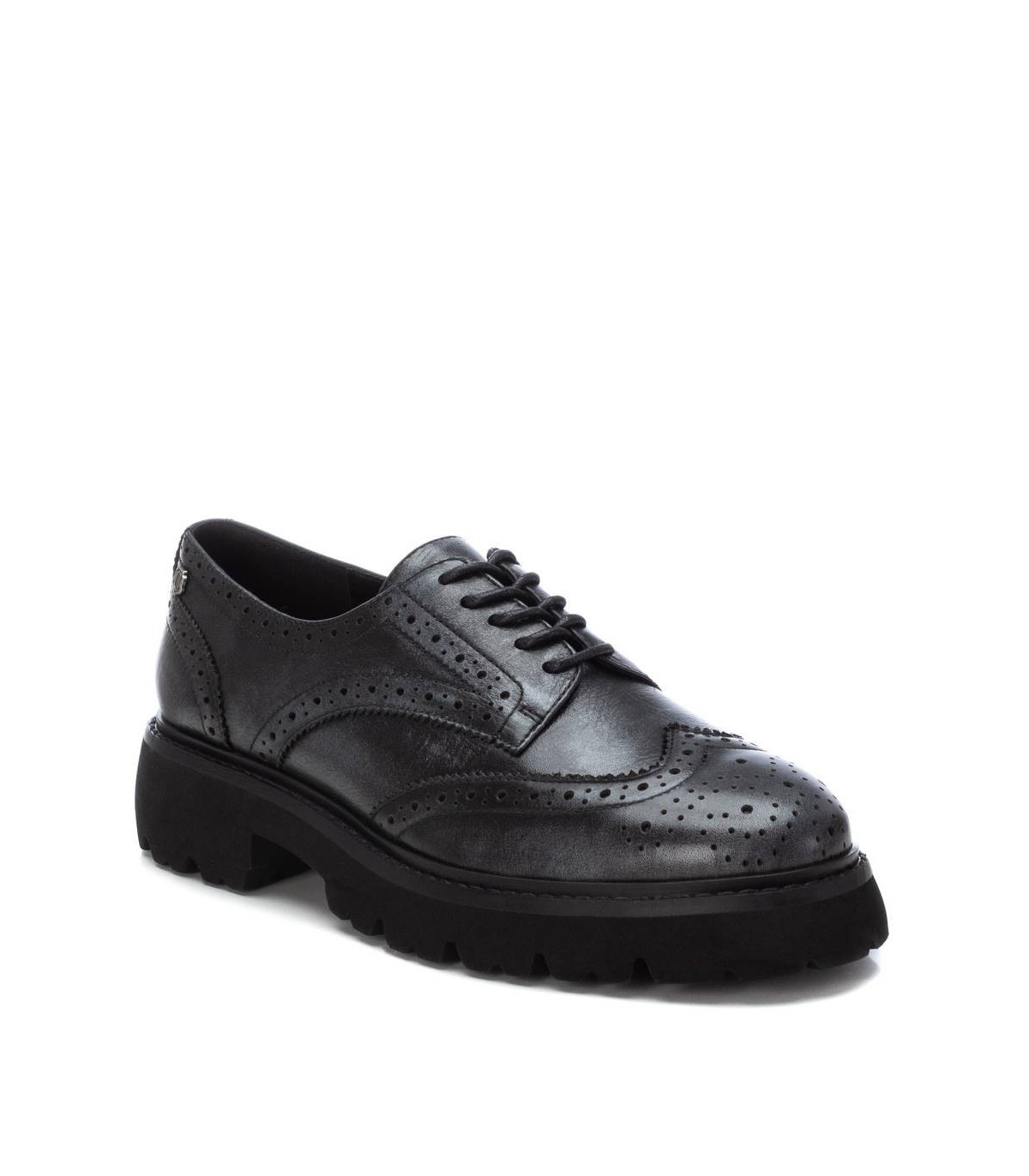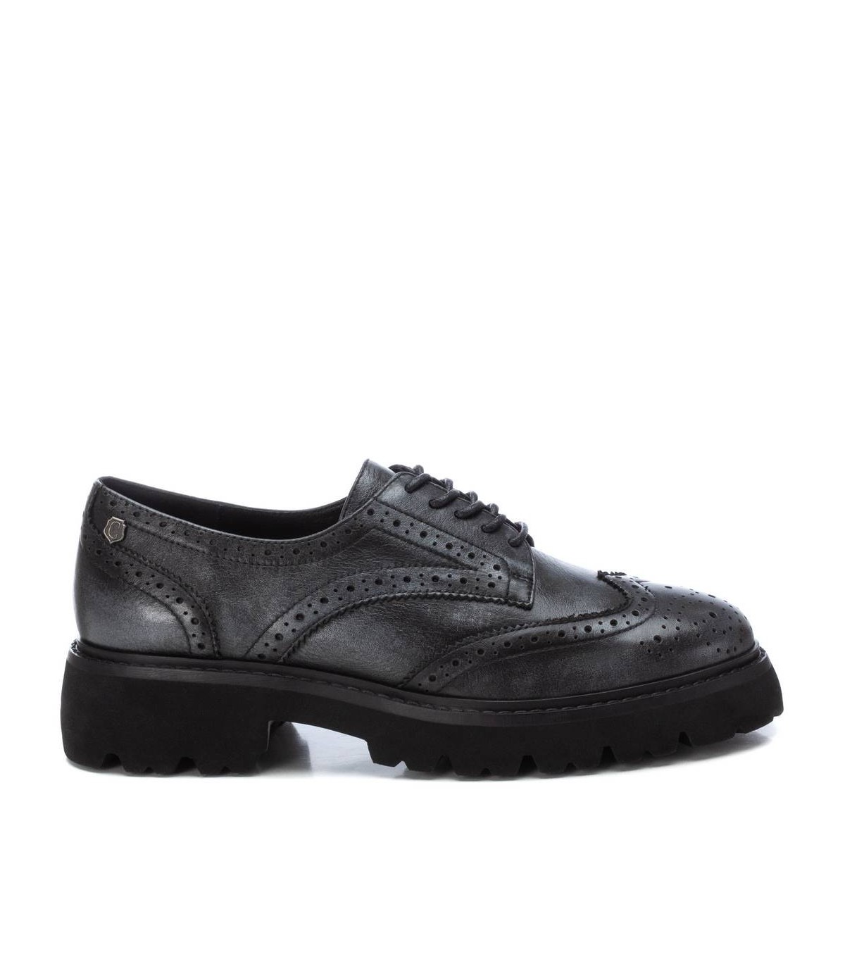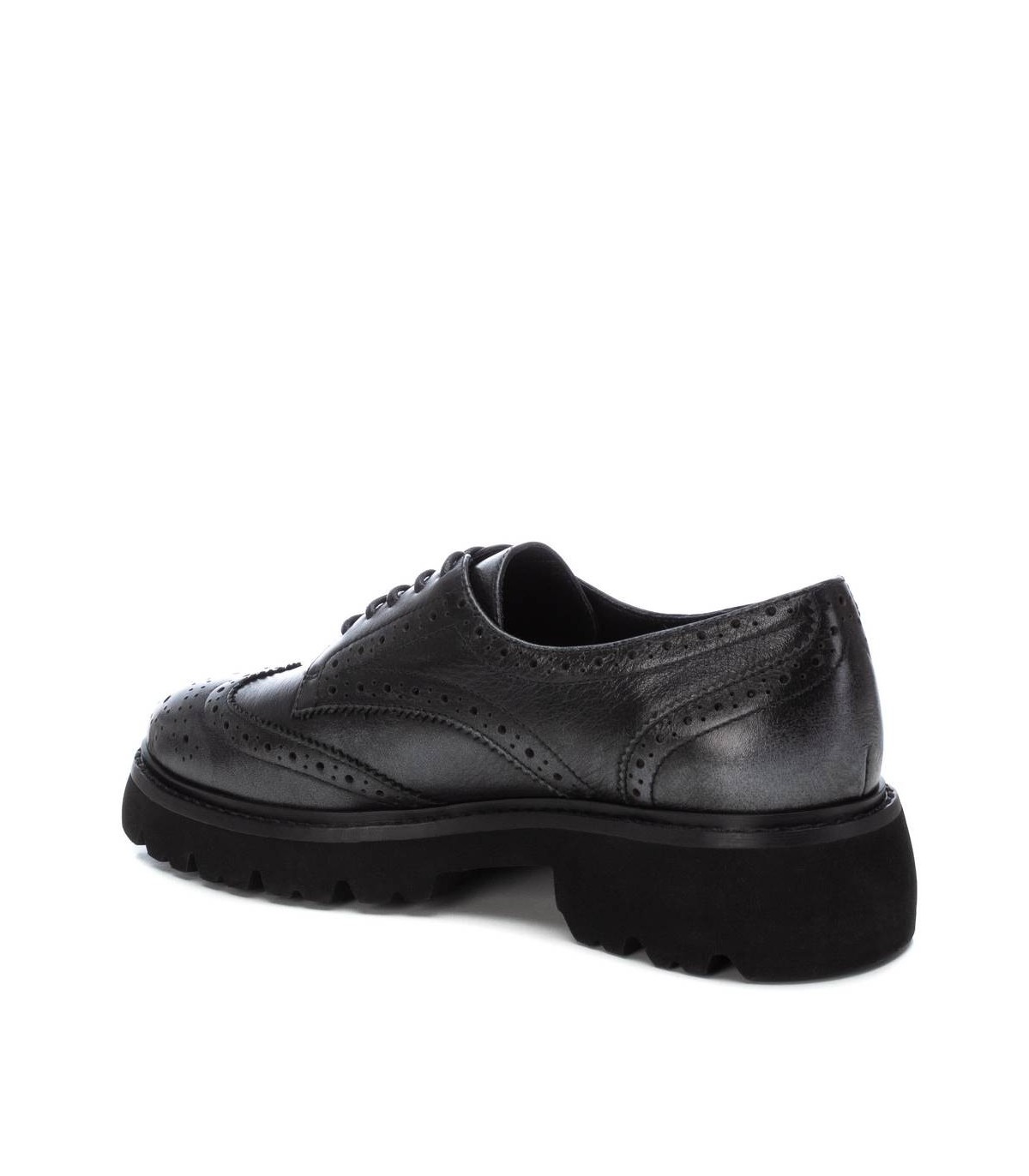 Mocasín de mujer, de la marca Carmela. Fabricado en piel de alta calidad. Calados decorativos. Suela gruesa y dentada antideslizante. Cordones ajustables. Un básico de invierno.