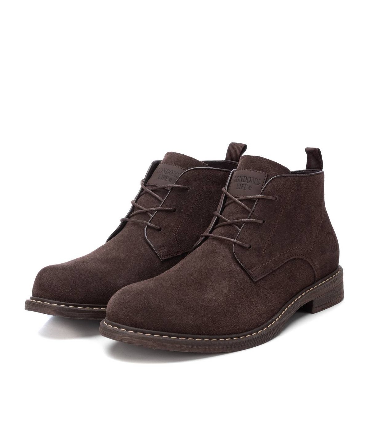 Botín de caballero, de la marca Londons Life. Fabricado en serraje de alta calidad. Cordones ajustables. Tirador trasero para facilitar la puesta. Suela antideslizante.