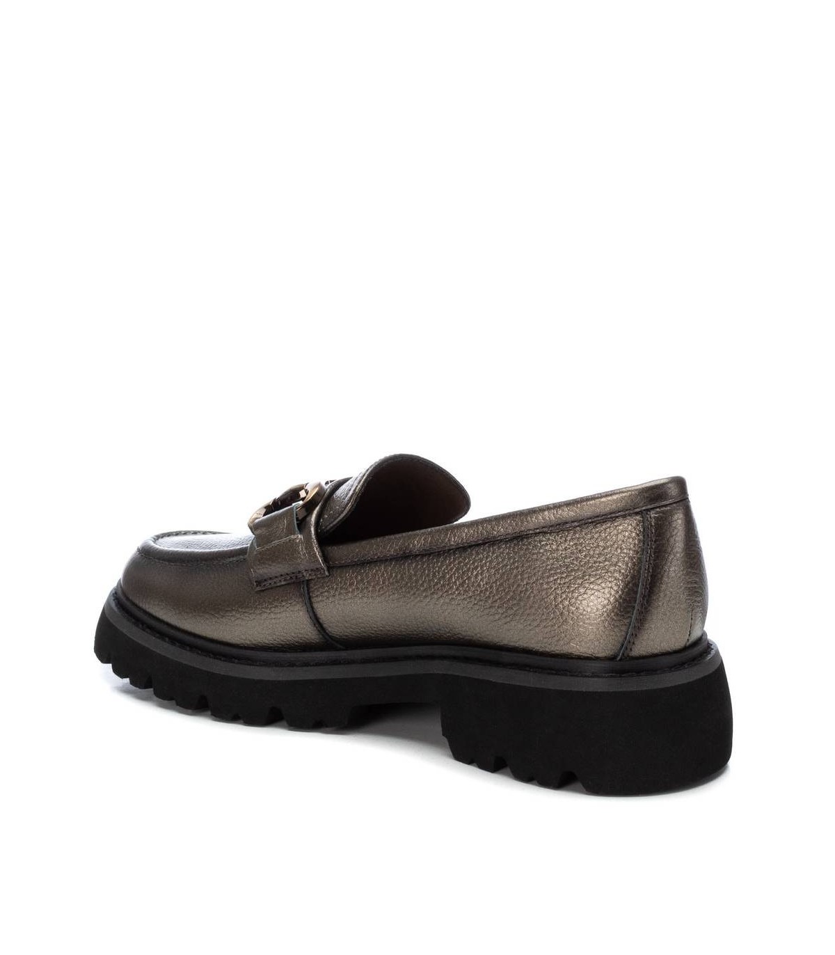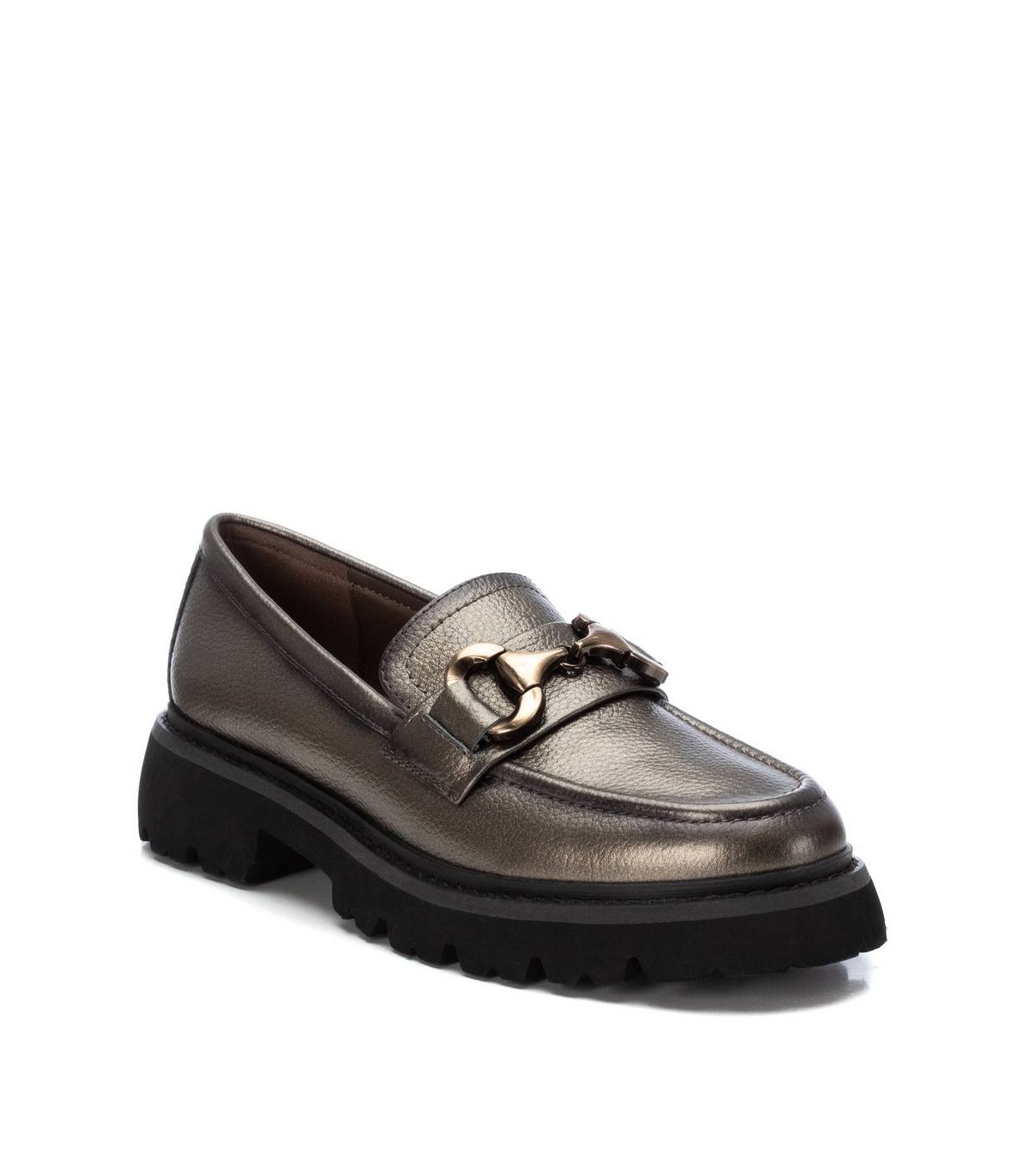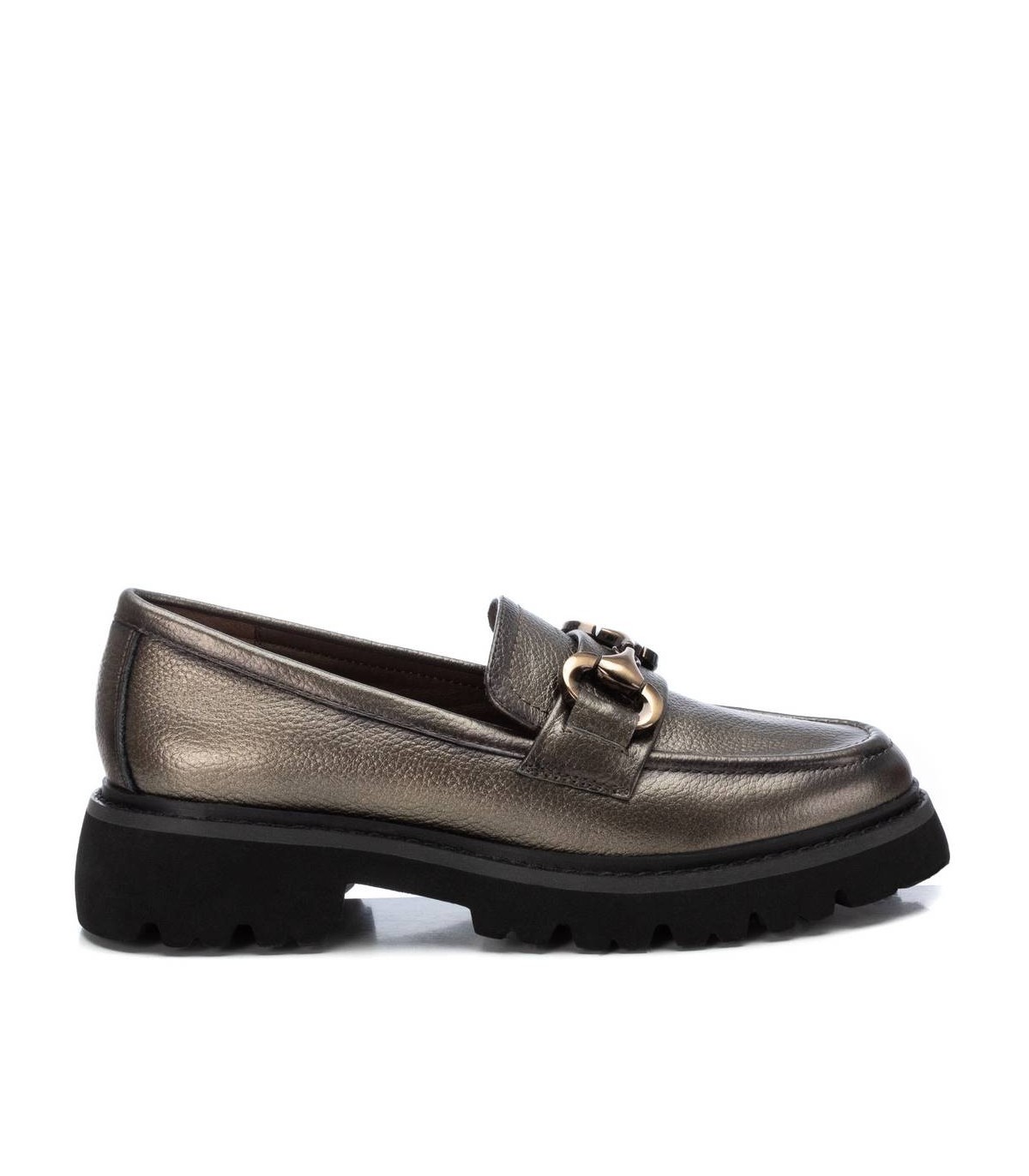 Mocasín de mujer, de la marca Carmela. Fabricado en piel de alta calidad. Antifaz en el frente con cadena decorativa. Suela volumen de goma antideslizante.