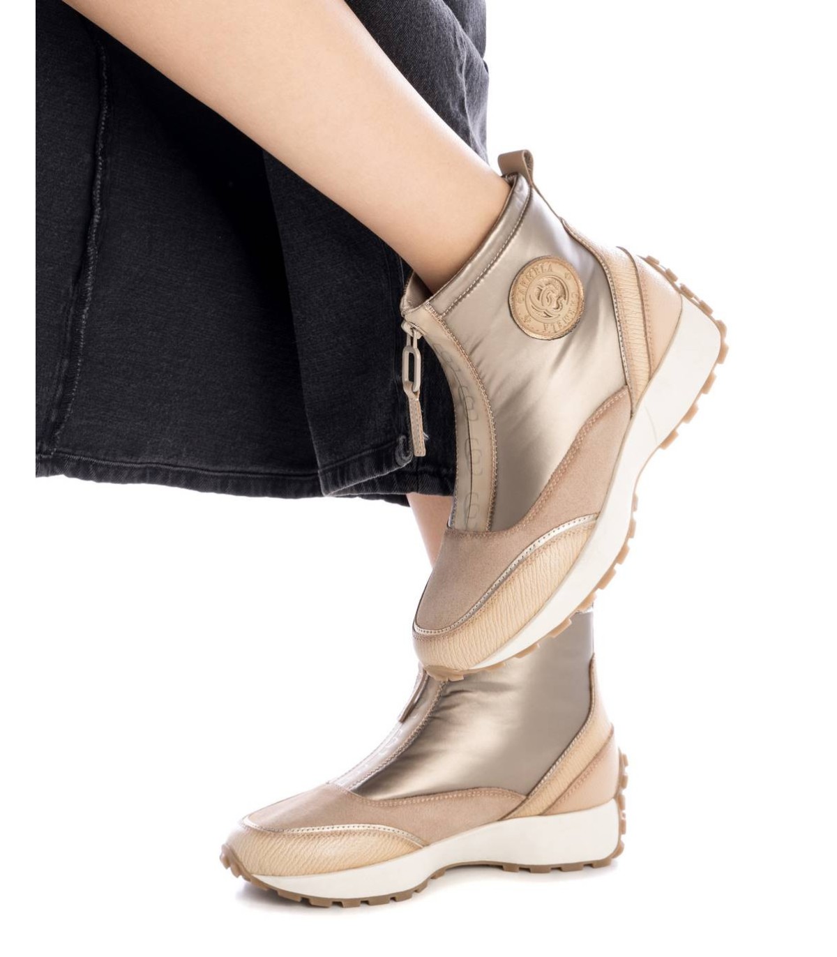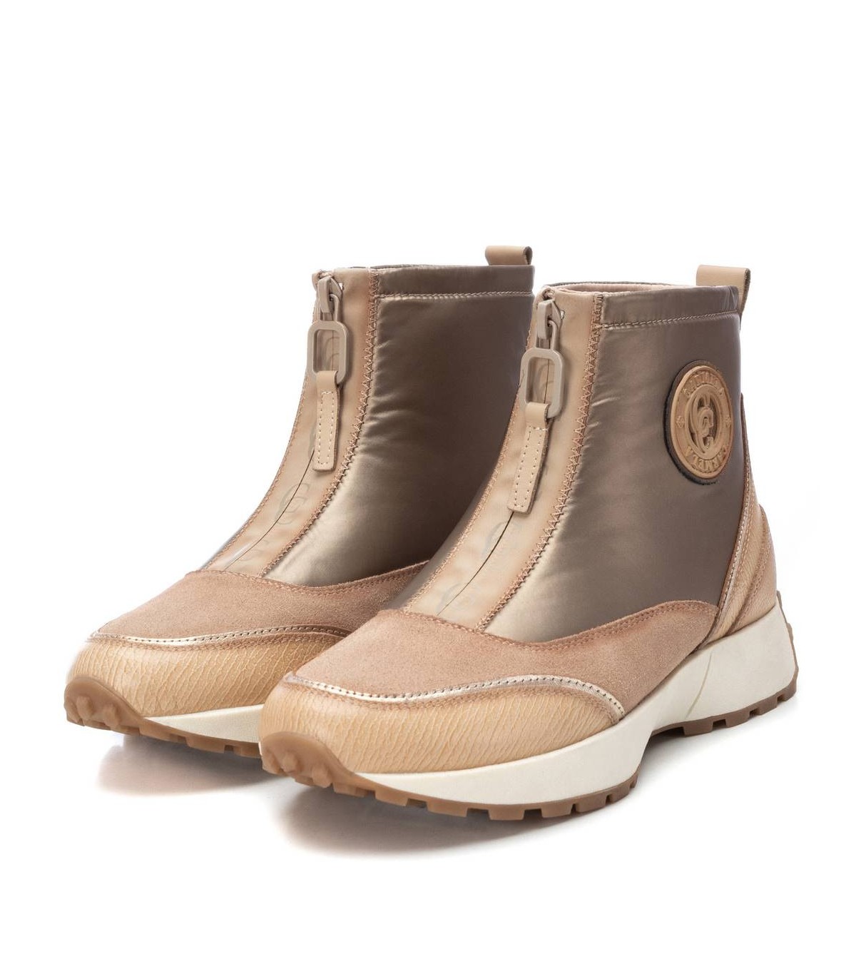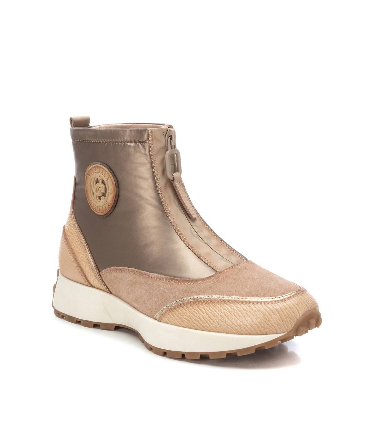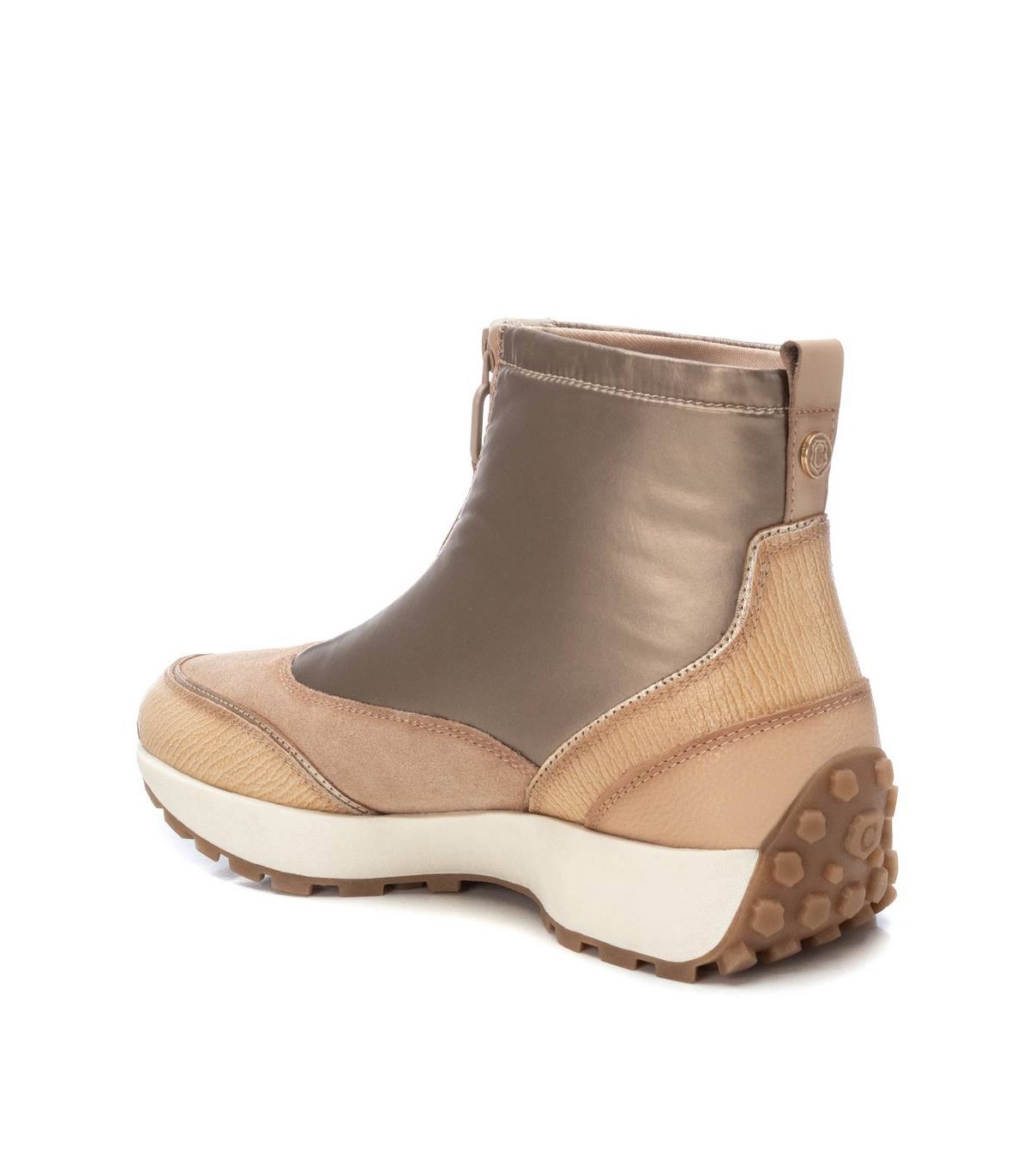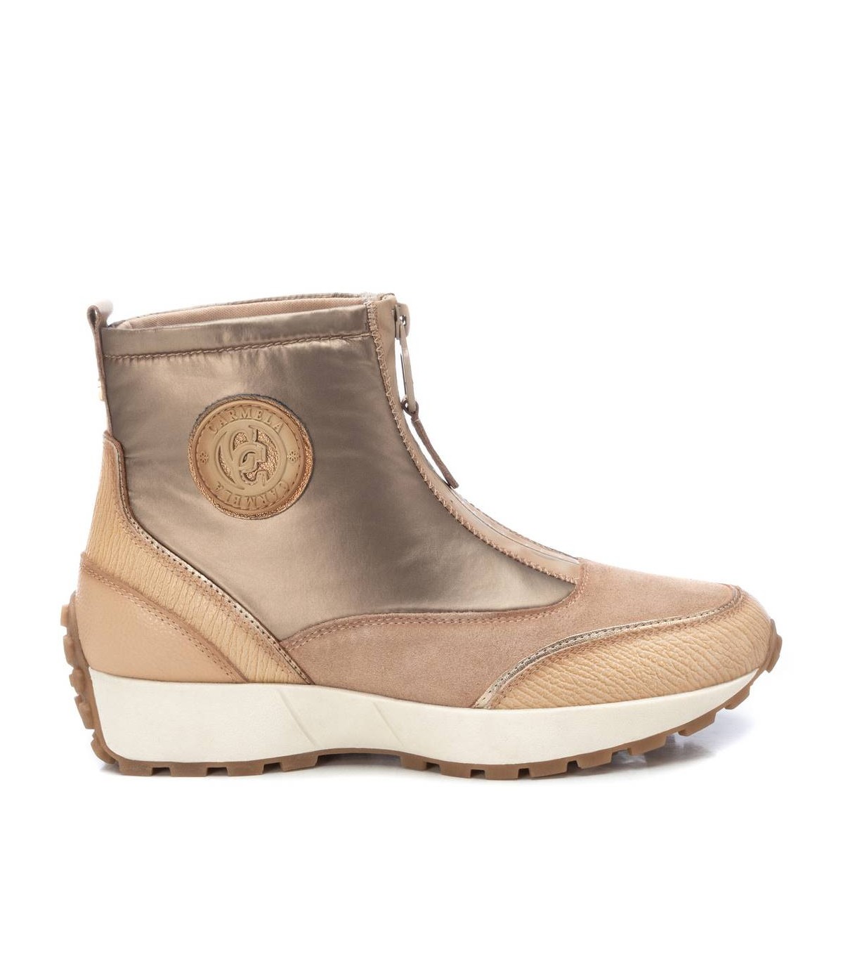 Botín de mujer, de la marca Carmela. Fabricado en piel de alta calidad combinada con otros materiales. Cierre mediante cremallera frontal. Tirador trasero para facilitar la puesta. Con plantilla extraíble.
