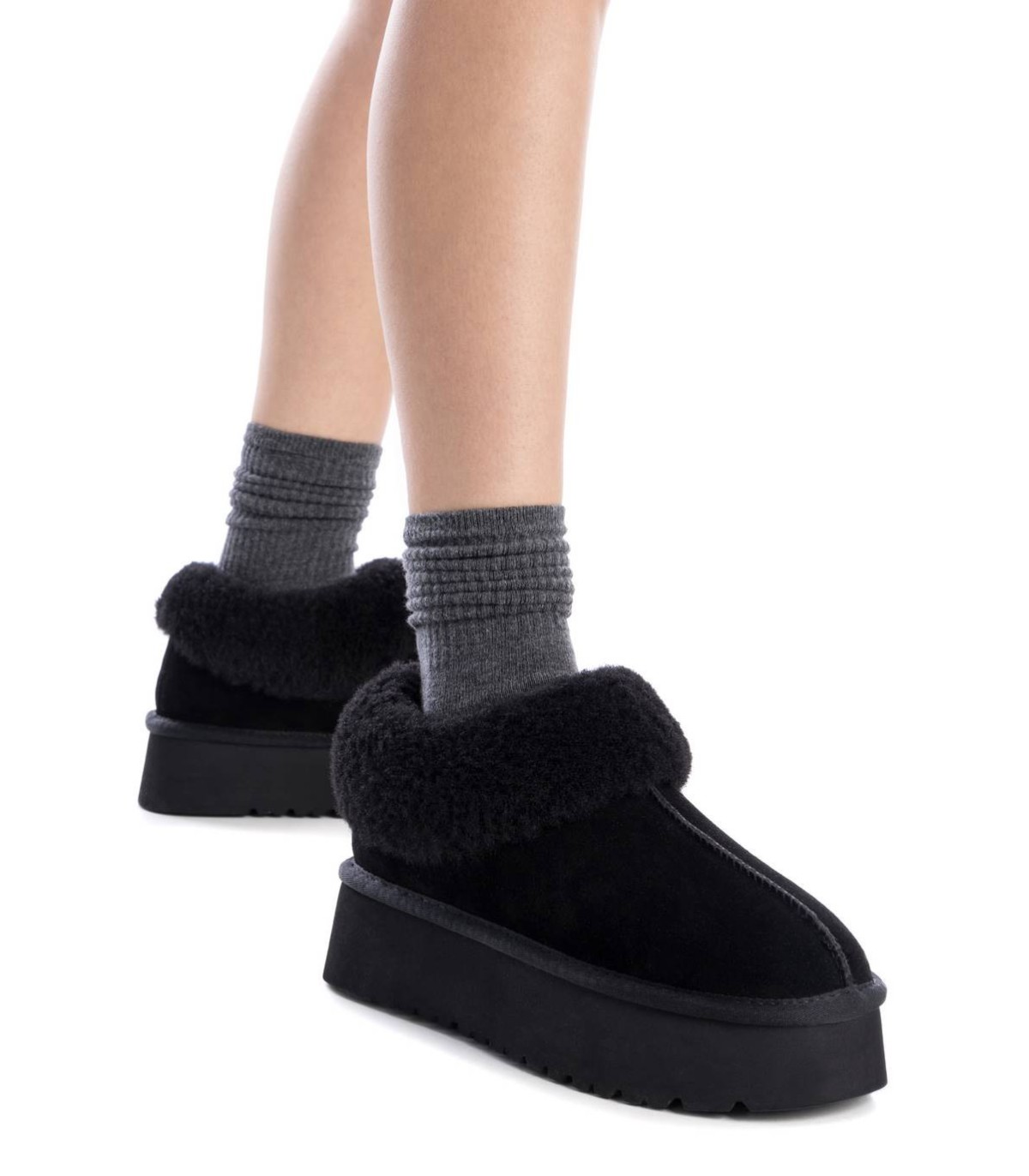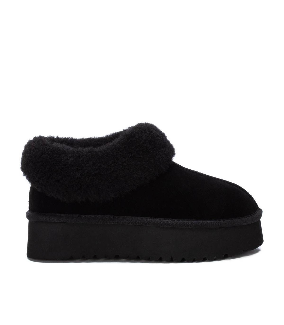 Botín de mujer, de la marca Carmela. Fabricado en un suave serraje. Supercalentito con pelo en el interior. Estilo bota australiana, un básico de cada invierno. No querrás quitártela. Suela gruesa de goma antideslizante.