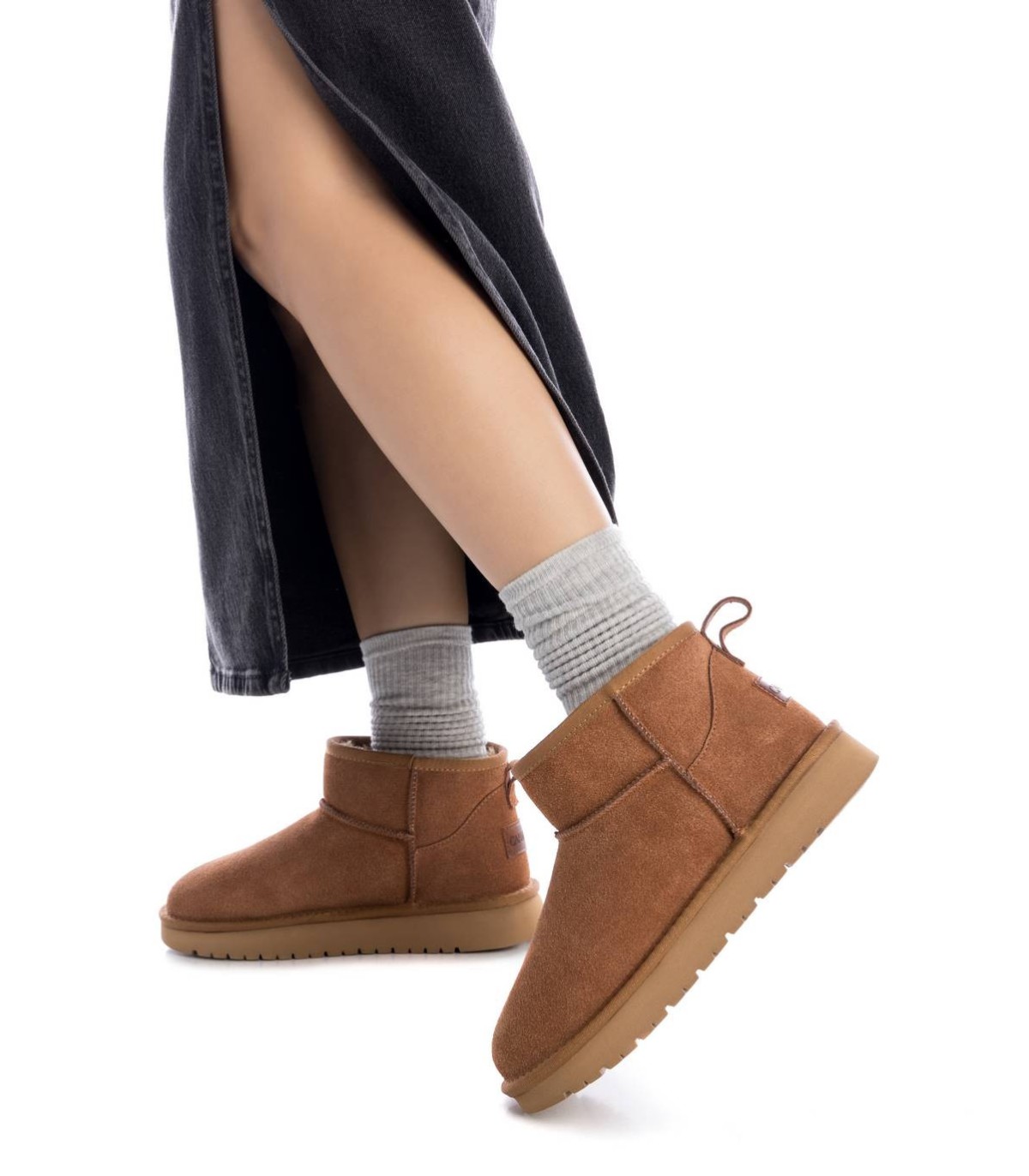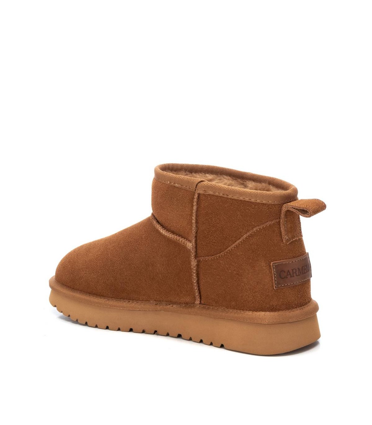 Botín de mujer, de la marca Carmela. Fabricado en un suave serraje. Supercalentito con pelo en el interior. Estilo bota australiana, un básico de cada invierno. No querrás quitártela. Suela gruesa de goma antideslizante.