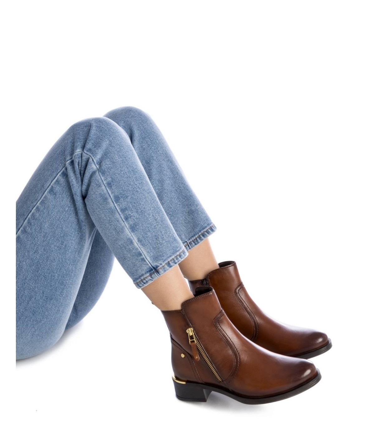 Botín de mujer, de la marca Carmela. Fabricado en piel de alta calidad. Cierre mediante cremallera lateral. Tirador trasero para facilitar la puesta. Suela antideslizante y tacón de 4 cm. Un básico para el invierno.