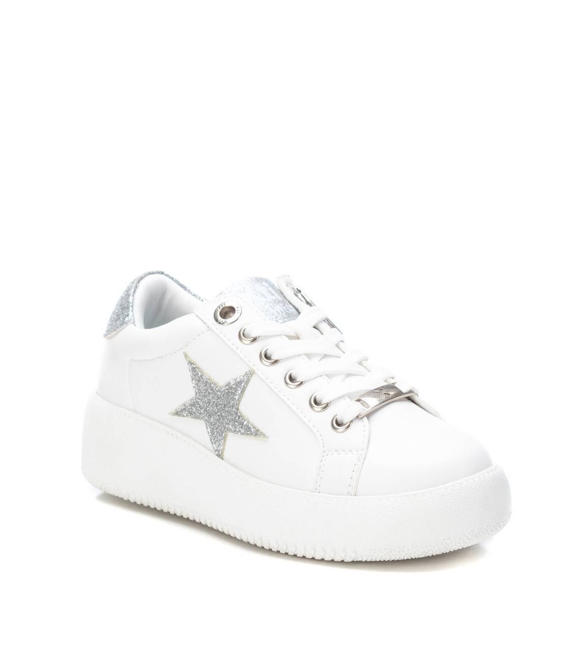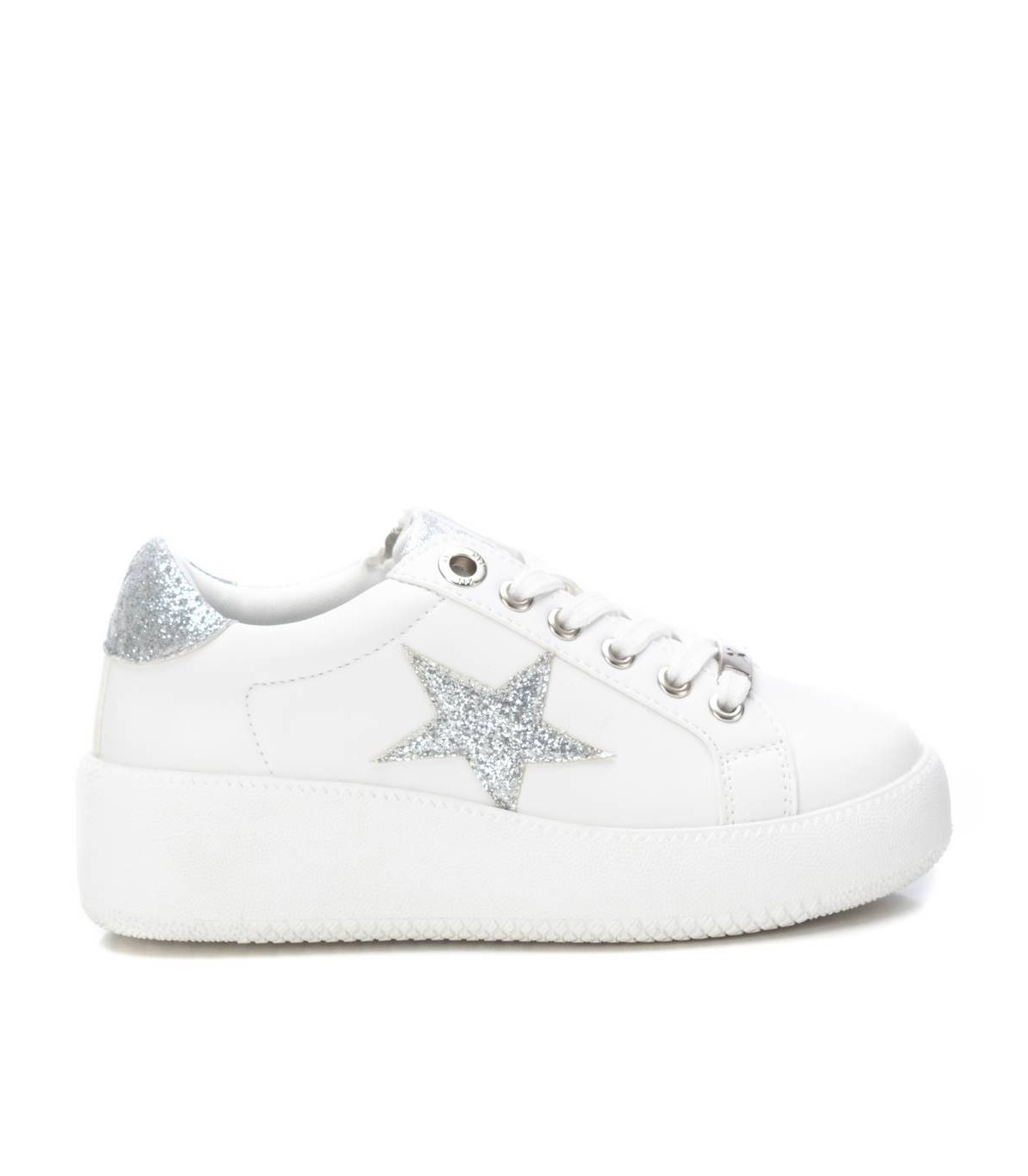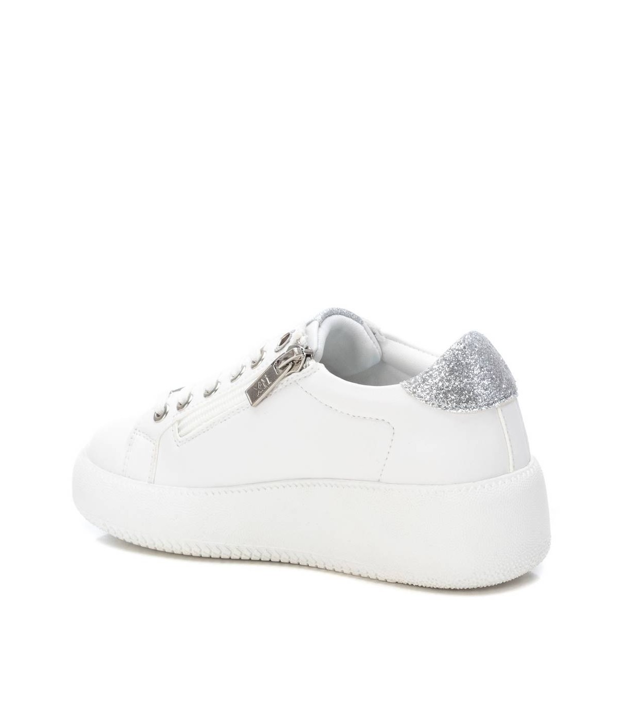 Zapatilla de niña, de la marca Xti Kids. Fabricada en material que imita a la piel con detalles en glitter. Cierre mediante cordón regulable. Con doble suela de goma antideslizante. Un básico que no puede faltar para completar todos los looks de tu pequeña. Con plantilla extraíble. Este modelo ha obtenido el certificado vegano por la organización mundial PETA (Organización de los derechos de los animales).